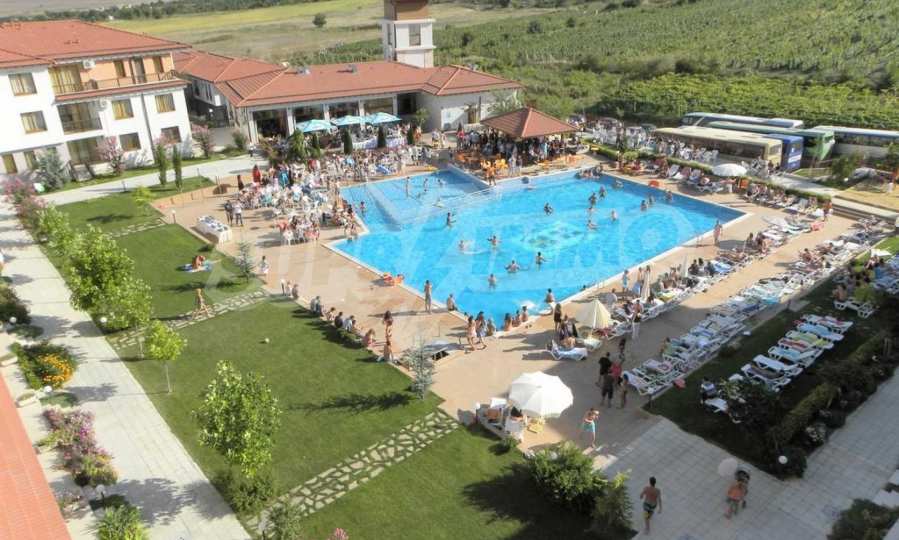 This Studio Apartment is situated on the third floor of Harmony Hills Complex with a South-West aspect. Harmony Hills is one of the most elegant apartment and villa developments in Bulgaria.The complex is located in the charming village of village of Rogachevo, about 38 km to the north of Varna City, and just 35 km from the Airport. It is not far from the commercial area at the centre of the village, but away from all the noise and the traffic.This third-floor apartment for sale has 37.86 sq. m. of living space and is fully furnished, with a dishwasher, washing machine, tables, chairs and more. It is in a very good condition and has had only a few occupancies. So it is still as good as new. This studio apartment is large enough to fit a sitting room, a dining area, a well-equipped kitchen, one bedroom and a modern bathroom. A family of four can reside in this apartment comfortably. Also, the apartment offers a great view and overlooks the pool and the vineyard.About the Village of Rogachevo:Rogachevo is a charming little village which is both traditional and modern, with access to all essential modern amenities such as fast internet broadband, public transport, shops, boutiques, restaurants, bars and more.Harmony Hills is at the heart of Rogachevo, at a short distance from the village centre and borders the natural reserves and hunting areas.It is at a 5-minute drive from three professional golf courses and at a distance of 4 km from the beach. What more, there is a daily shuttle bus that takes you from the complex to the beach, whenever you want to go.About the Facilities Available at Harmony Hills:Harmony Hills is one of the best designed apartment complexes you will find on the Black Sea Coast. It is clear that a lot of thought has gone into the development of this magnificent complex. The facilities available here include: