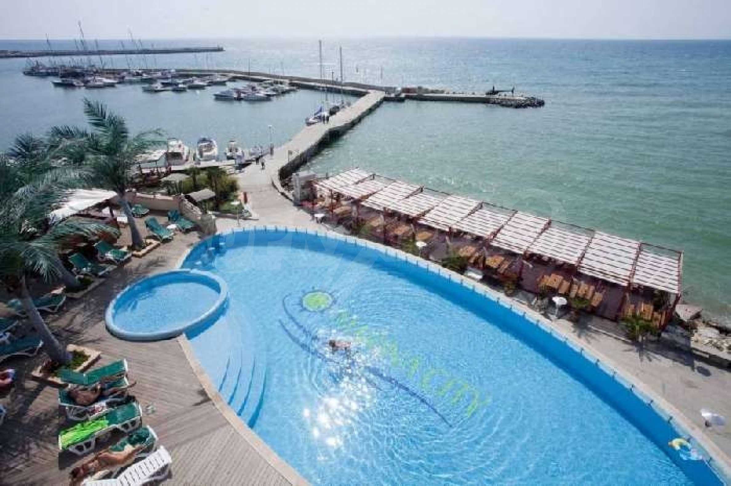 Marina City is a luxury aparthotel located in the town of Balchik on the Black Sea Coast. This modern complex has 135 apartments and is built to a very high standard with excellent facilities for all owners. Marina City has its own yacht port just in front of the complex attracting yacht owners from all over the world.The apartment on offer is on the third floor and comprises a spacious lounge with dining area, a large kitchen, 2 bedrooms and 2 bathrooms. This was originally 2 apartments that were knocked into 1 making it one of the largest in the complex. The second bedroom has enough room for three beds and there is also a double pull down bed in the lounge which means the apartment could sleep up to 7 people comfortably. There are 2 balconies both with sea and pool views, perfect for relaxing in the evening.Marina City offers fabulous facilities including:Reception & 24 hr securityElevatorsModern commercial centreRestaurants offering traditional, international and seafood cuisineSwimming poolPool barFitness centreTennis courtThe yacht port has been built to International standards and welcomes yachts and boats up to 30 meters long.  The port also offers watersports for the more active holiday maker including surfing and diving.  There are 3 world class golf courses 10 mins drive from the complex attracting lovers of the sport and increasing the rental potential in the area.Marina City is within walking distance to the town centre and its facilities including shops, supermarkets, bars and restaurants and it is only 40 mins drive north of Varna City and the international airport. There is also the possibility of day trips to other countries picking up a coach close to the complex, excellent family outing.The climate in this area offers sunny summers with a refreshing breeze at night which lasts from May right through to mid-October. A great investment opportunity with good potential for holiday rentals!!