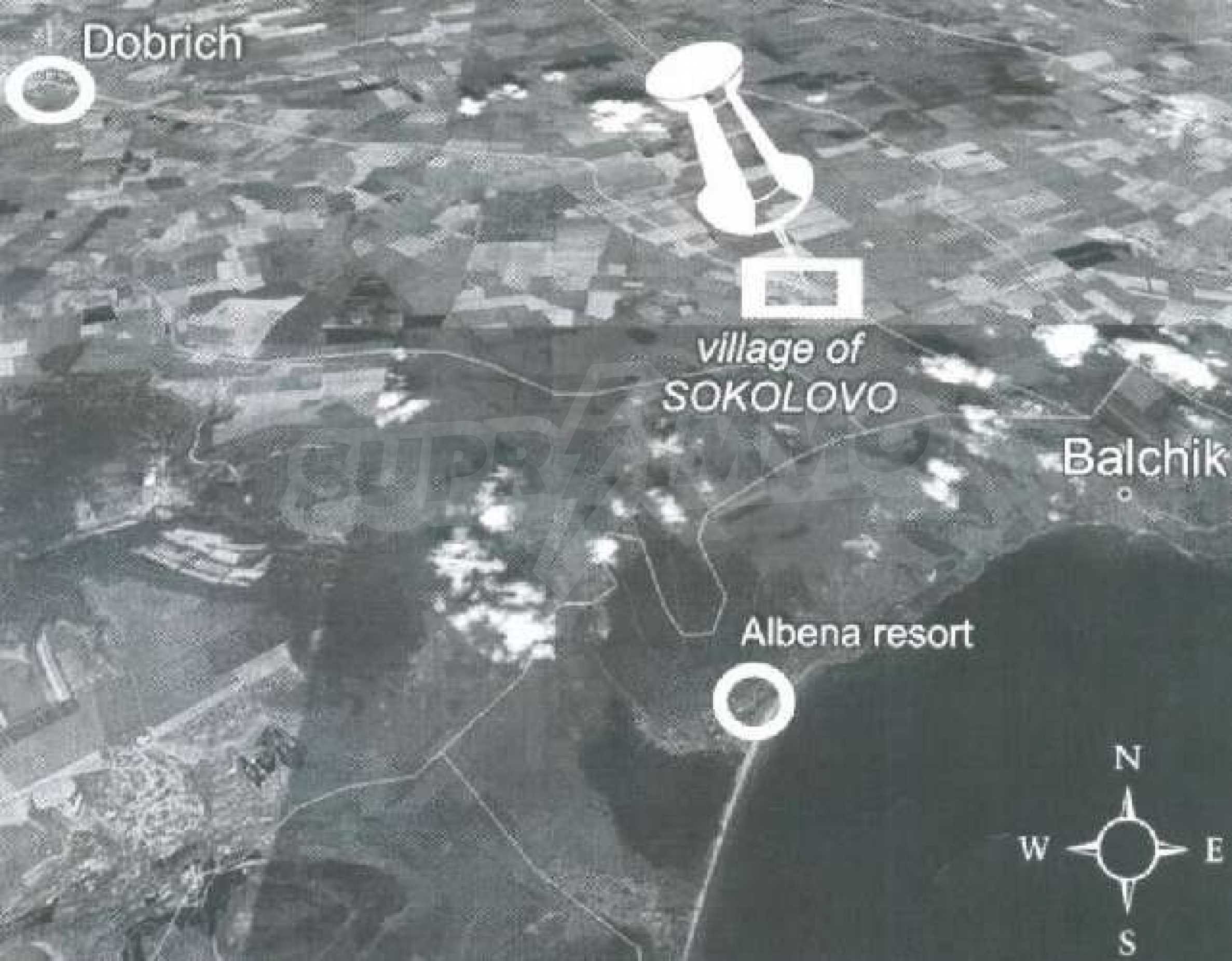 Famous village of sokolovo This is a one storey property located in the village of Sokolovo, Albena in the Balchik region of Bulgaria. The bungalow is in need of renovation and has great potential as a permanent or holiday home.The main house consists of four premises suitable for bedrooms and an extended building next to the house comprises a kitchen and utility room with ample storage. All water and electricity are already connected.Close to the property, there are many restaurants, bars, cafes, shopping facilities, post office, police station and a medical station. Â A regular bus service goes to Varna, Albena beach resort and Balchik.This picturesque village has lots of villas, already upgraded and brought by many for holiday homes. This is a huge plot and is ideal for renovation and development. , Famous village of sokolovo