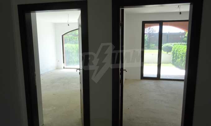 The apartment has a total area of 70 m2. consists of an entrance hall, a living room with a kitchenette and a direct access to the yard of the complex, one bedroom and a bathroom.