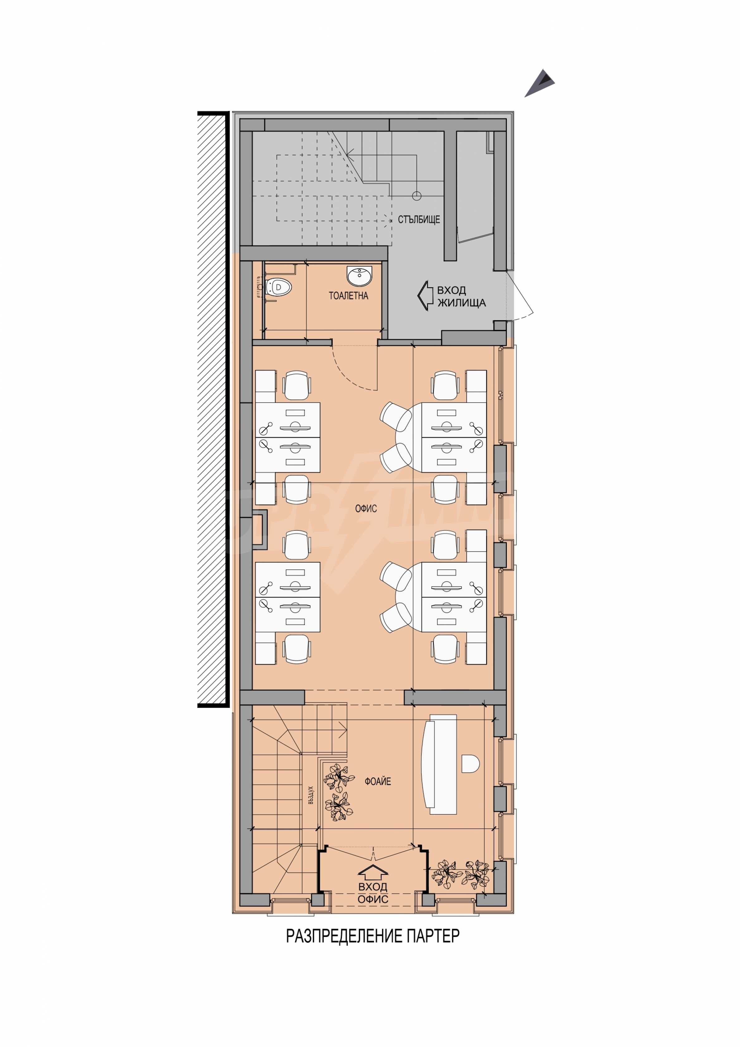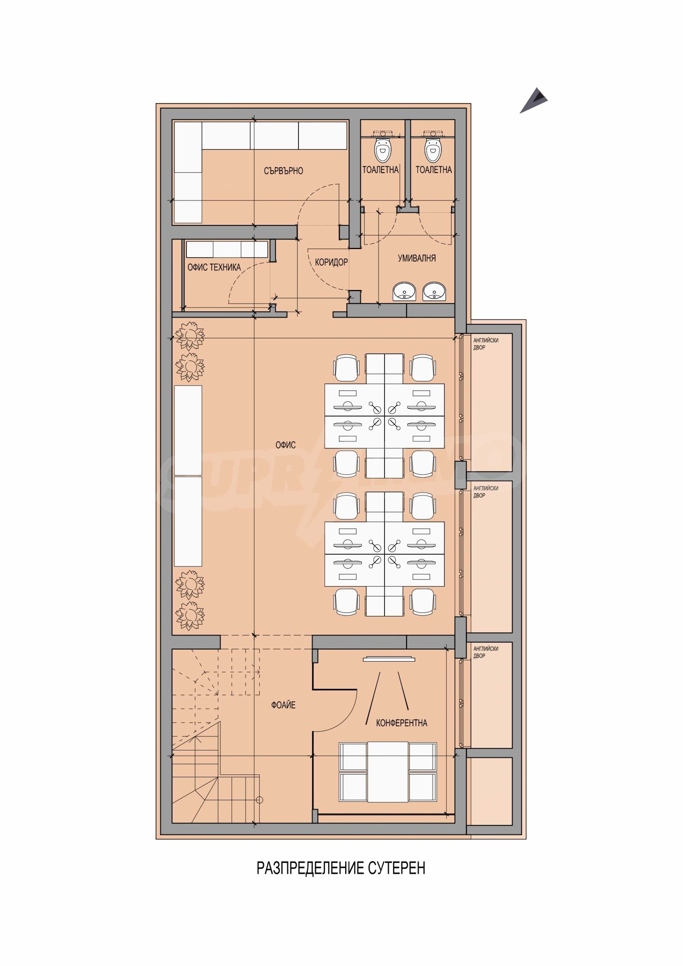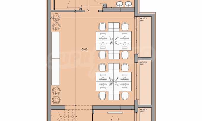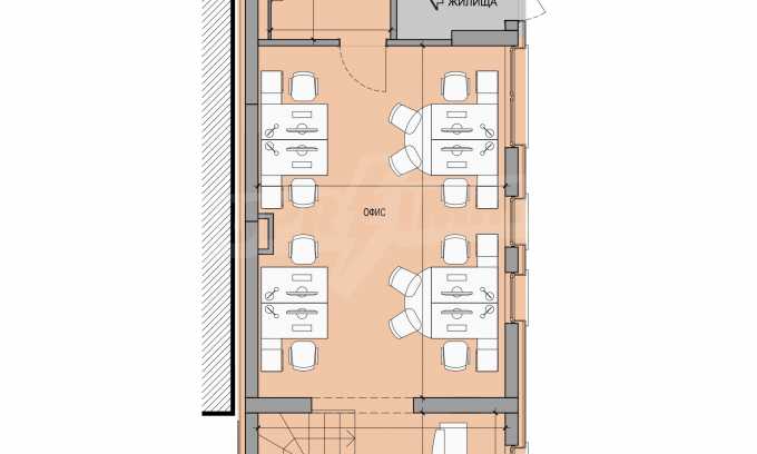The office is on the ground and basement floor, with private entrance directly from the street. The room is suitable for an office, an accounting company, a doctor's office, a medical center, an IT company and many others. The net area of 186.56m2. is distributed: