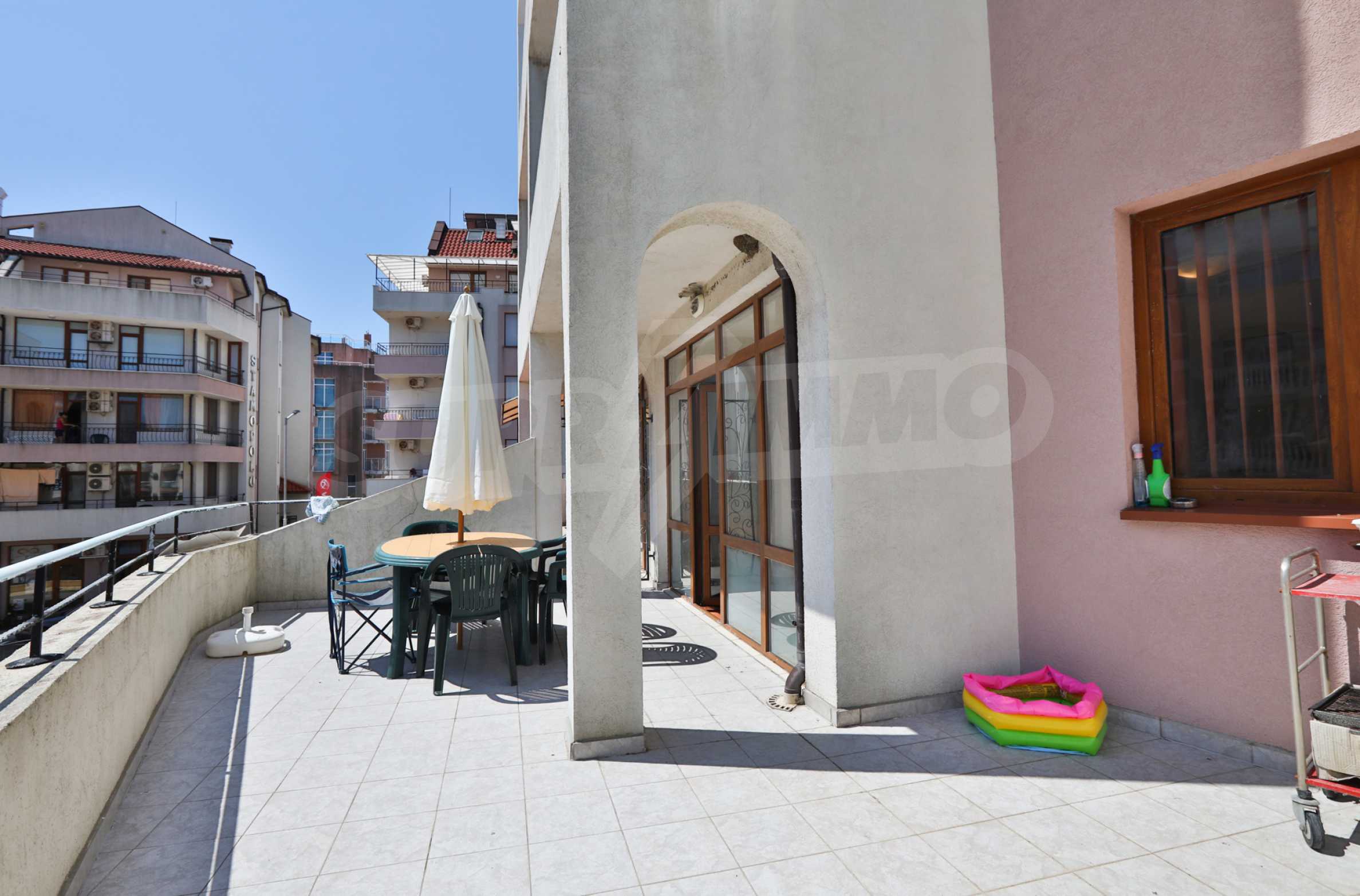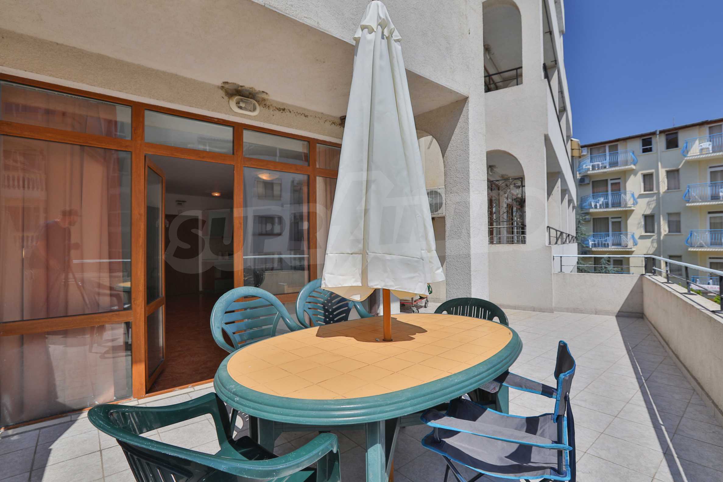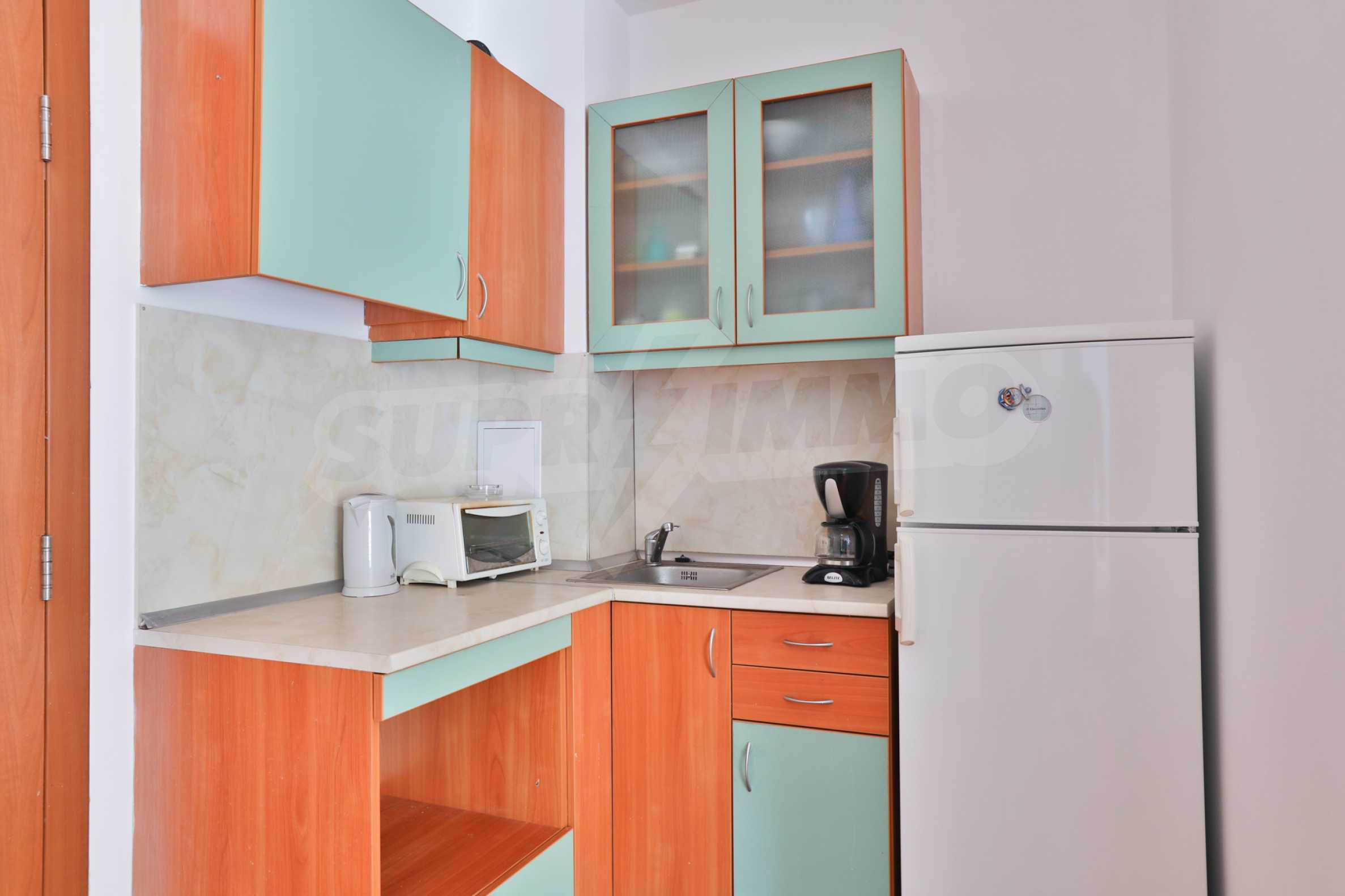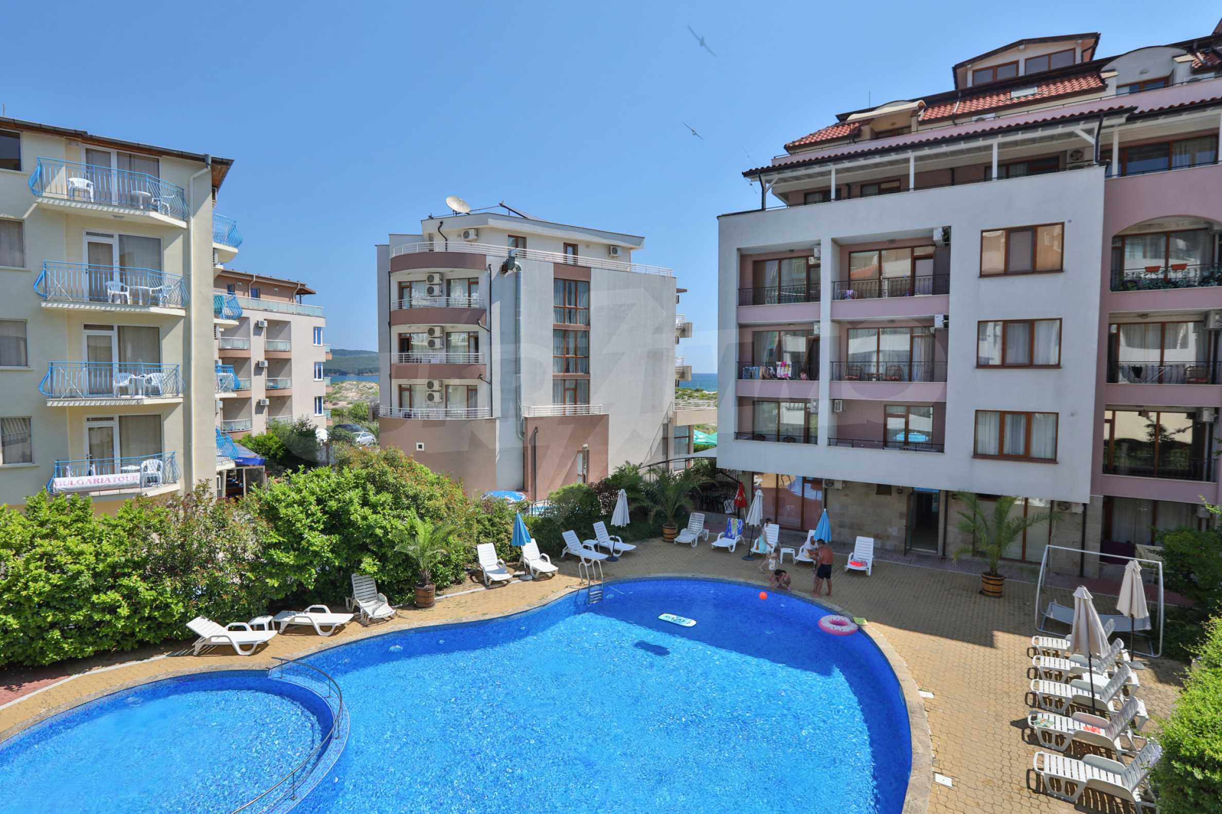 Excellent holiday studio of 55 m2 for private use or investment, situated in an attractive, compact complex with pool and year round security, located about 50 meters from the North beach in Primorsko.