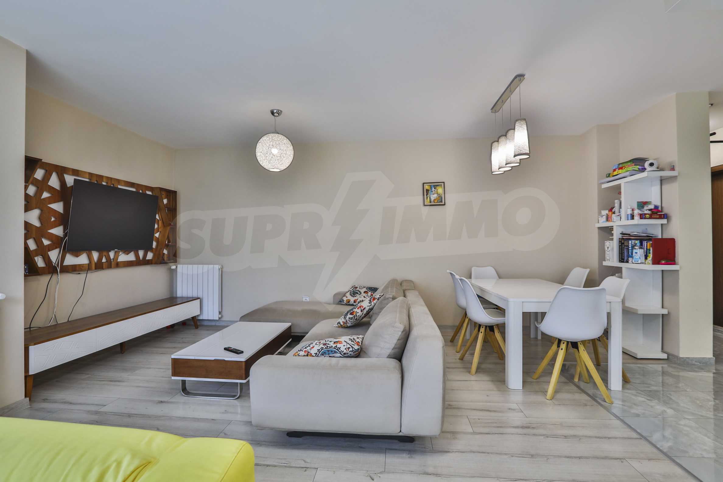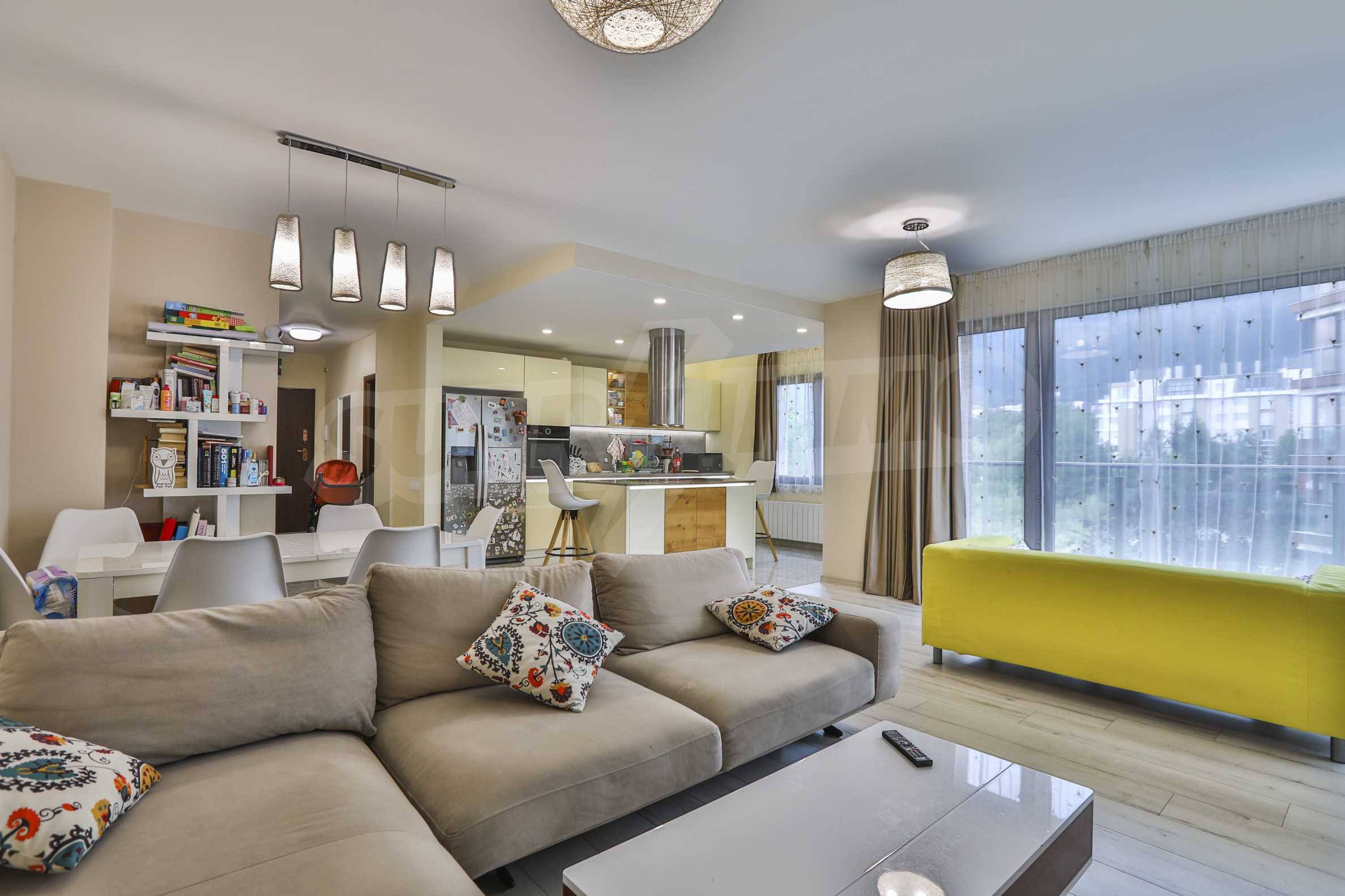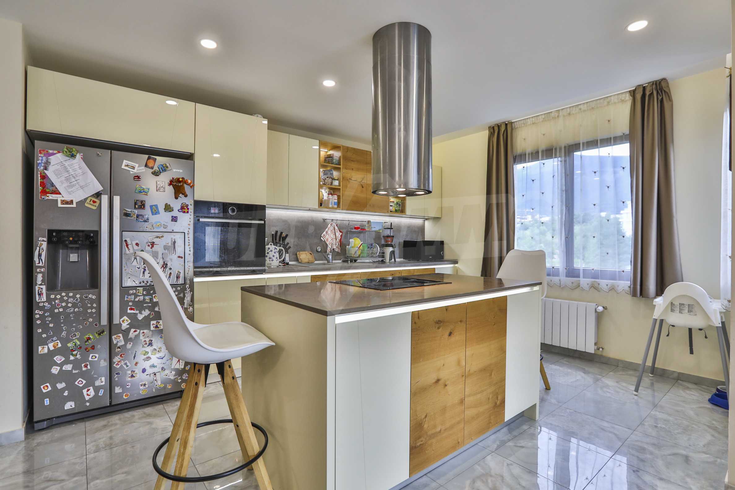 The kitchen has all the necessary appliances: Side by Side Gorenje refrigerator, Gorenje stove and hot plates, Hotspot Ariston dishwasher, microwave oven, extractor hood, and an island. Living room is quite spacious, a children's corner with a sofa.