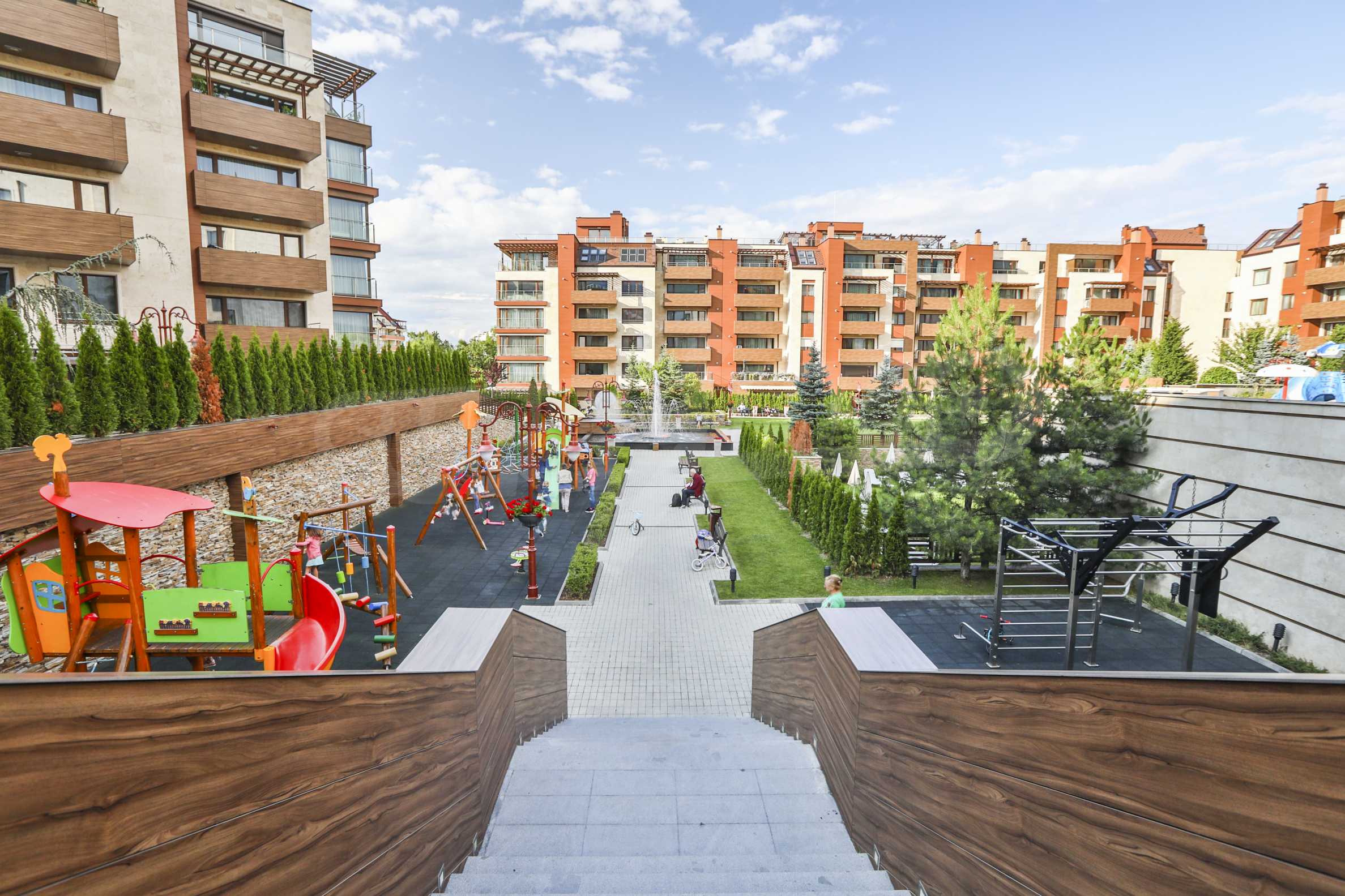 The Flora Park complex is located in the southern part of Sofia, with direct access to Bulgaria Blvd and Todor Kableshkov Blvd. Flora Park has several playgrounds, fountains, extensive parkland, spa center, children's pool with slide, pool, cafe, 24-hour security.