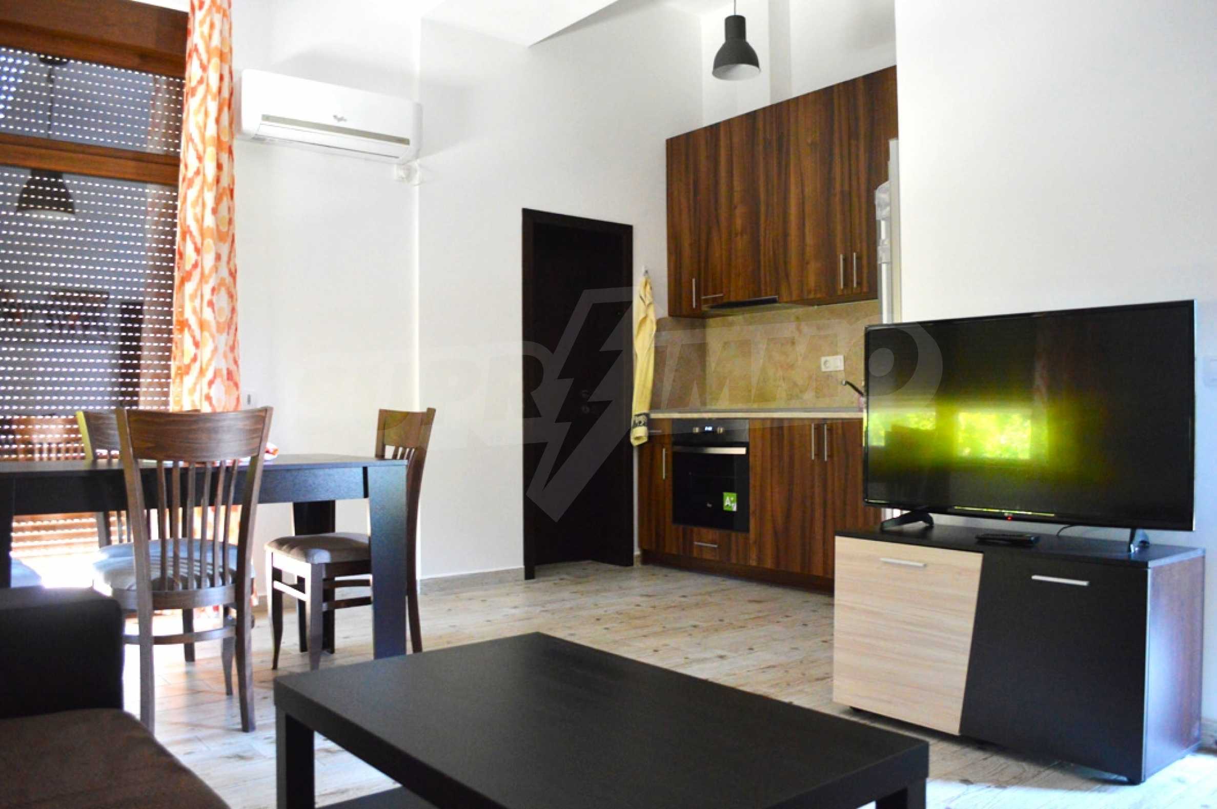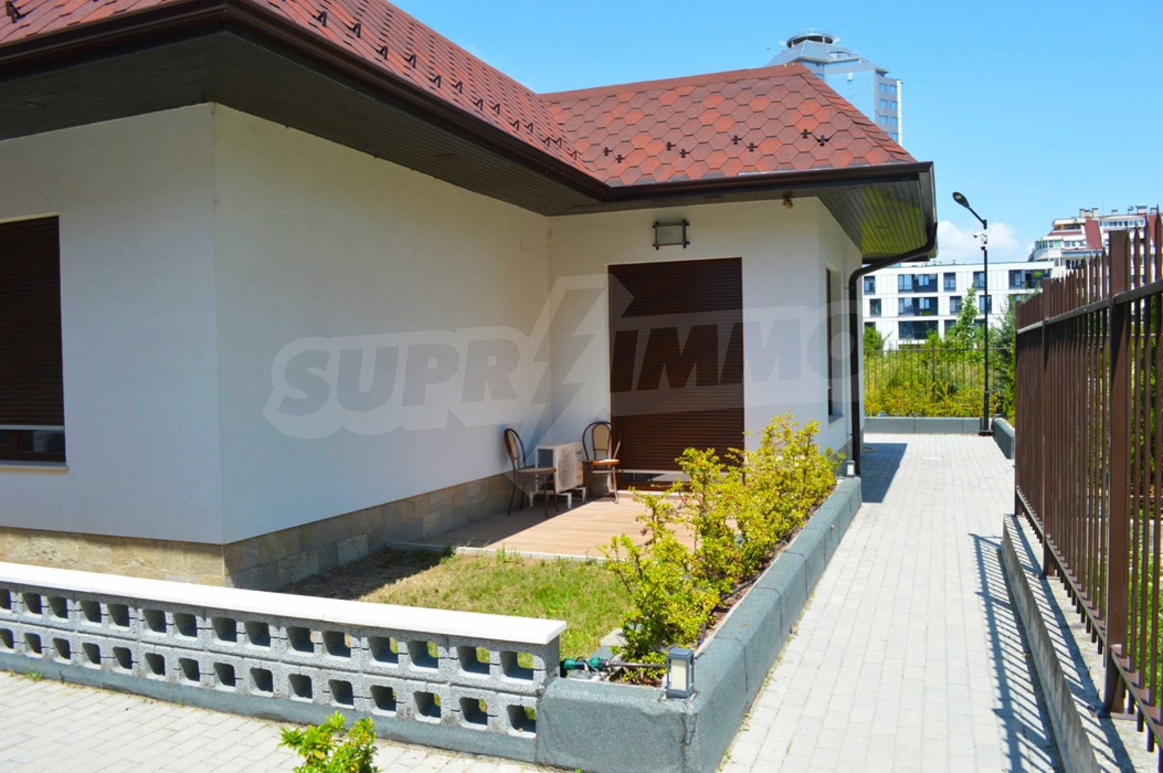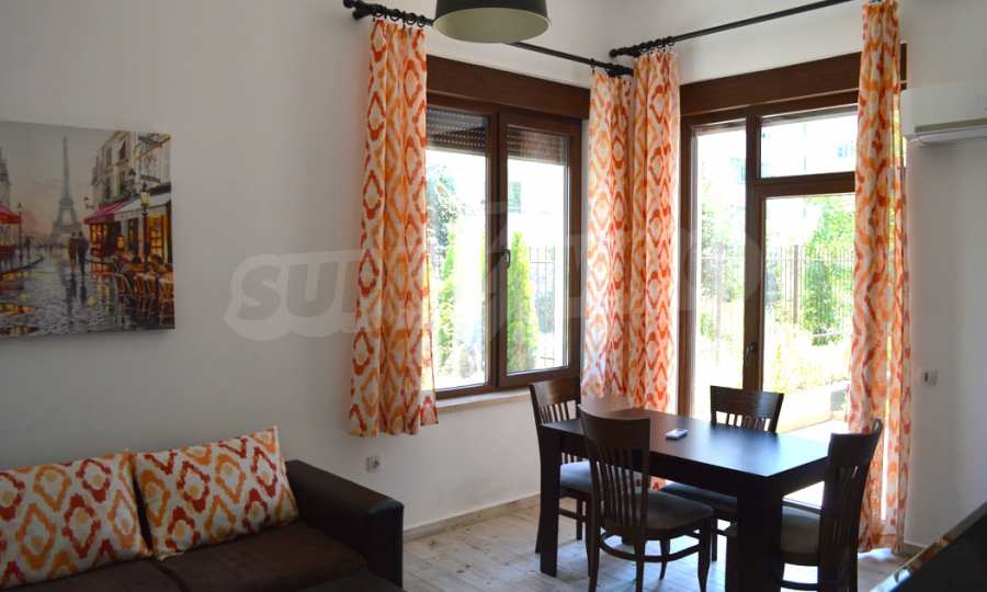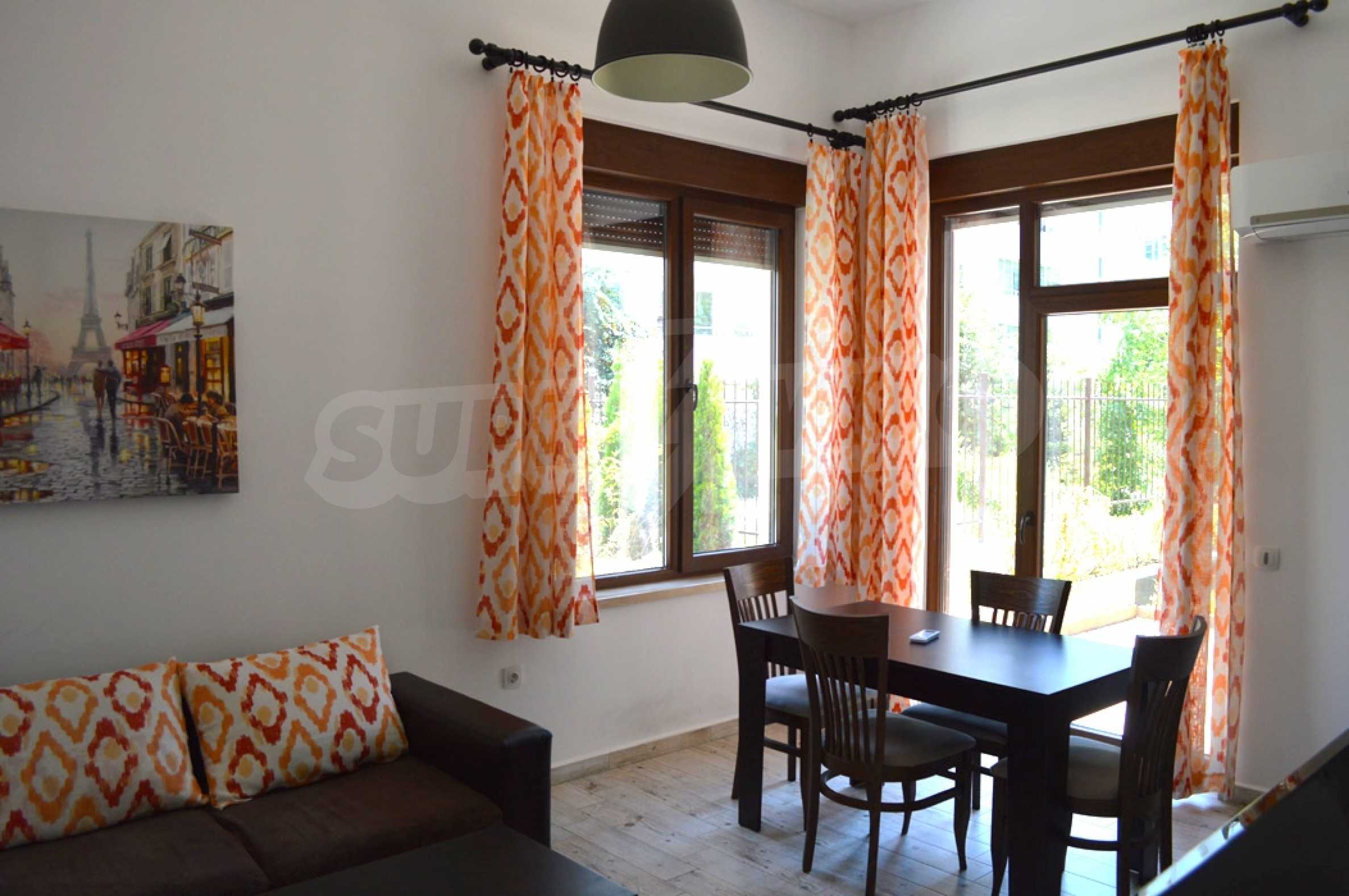The apartment of 59sq. m. - terrace and garden of 28sq. m., common garden and alleys of 1372 square meters in the complex. Possible parking spaces in the underground part, an elevator providing a warm connection between garages and apartments.
