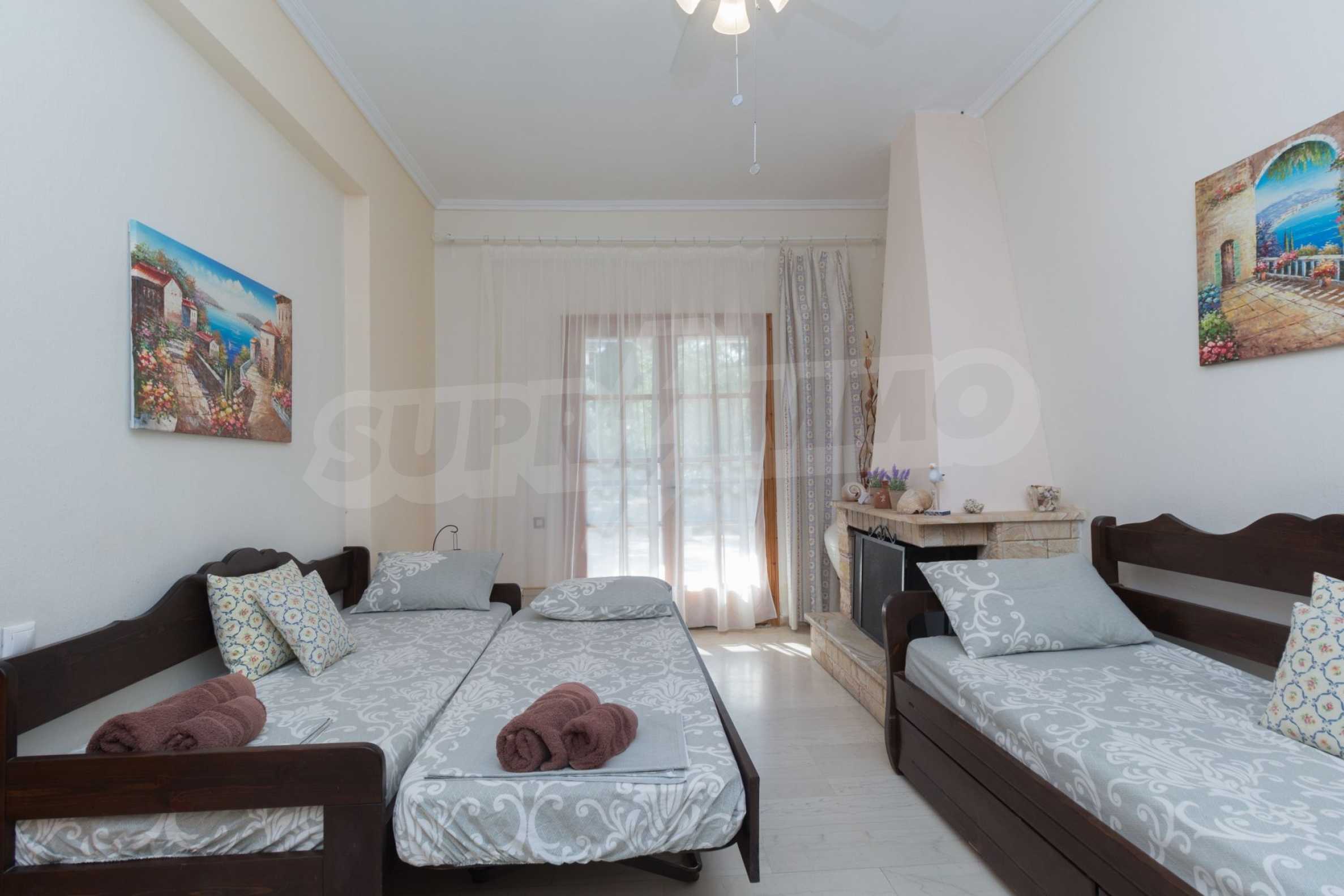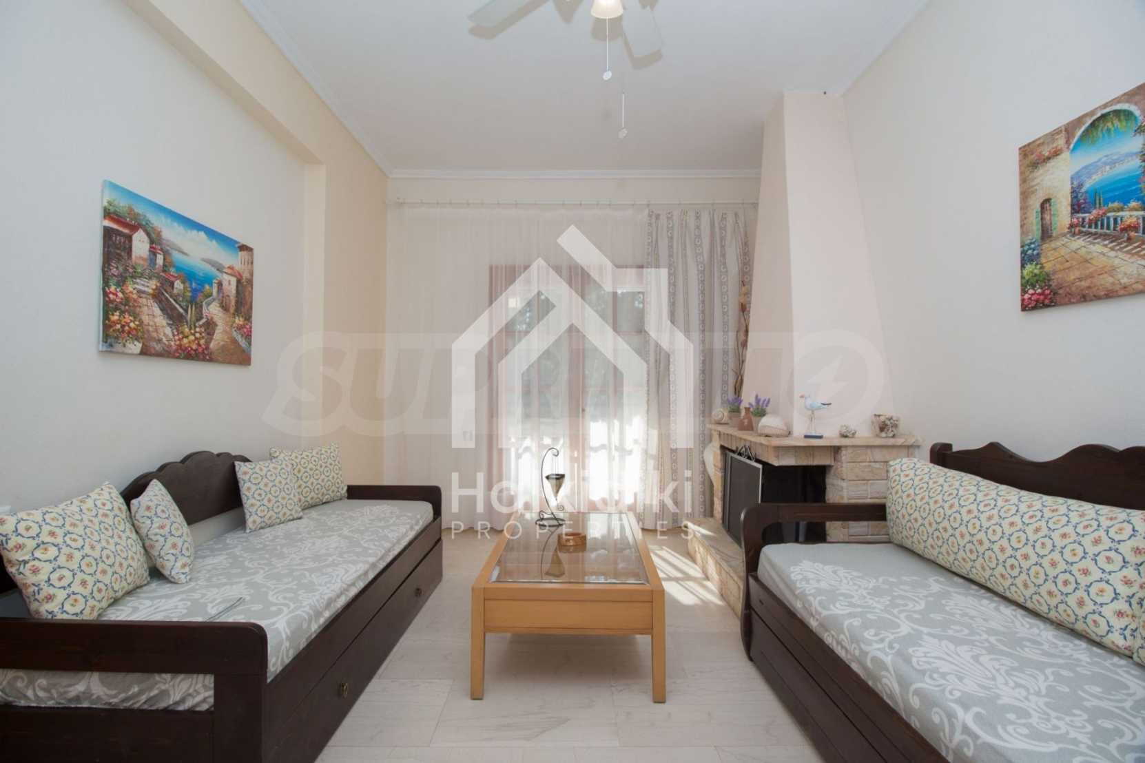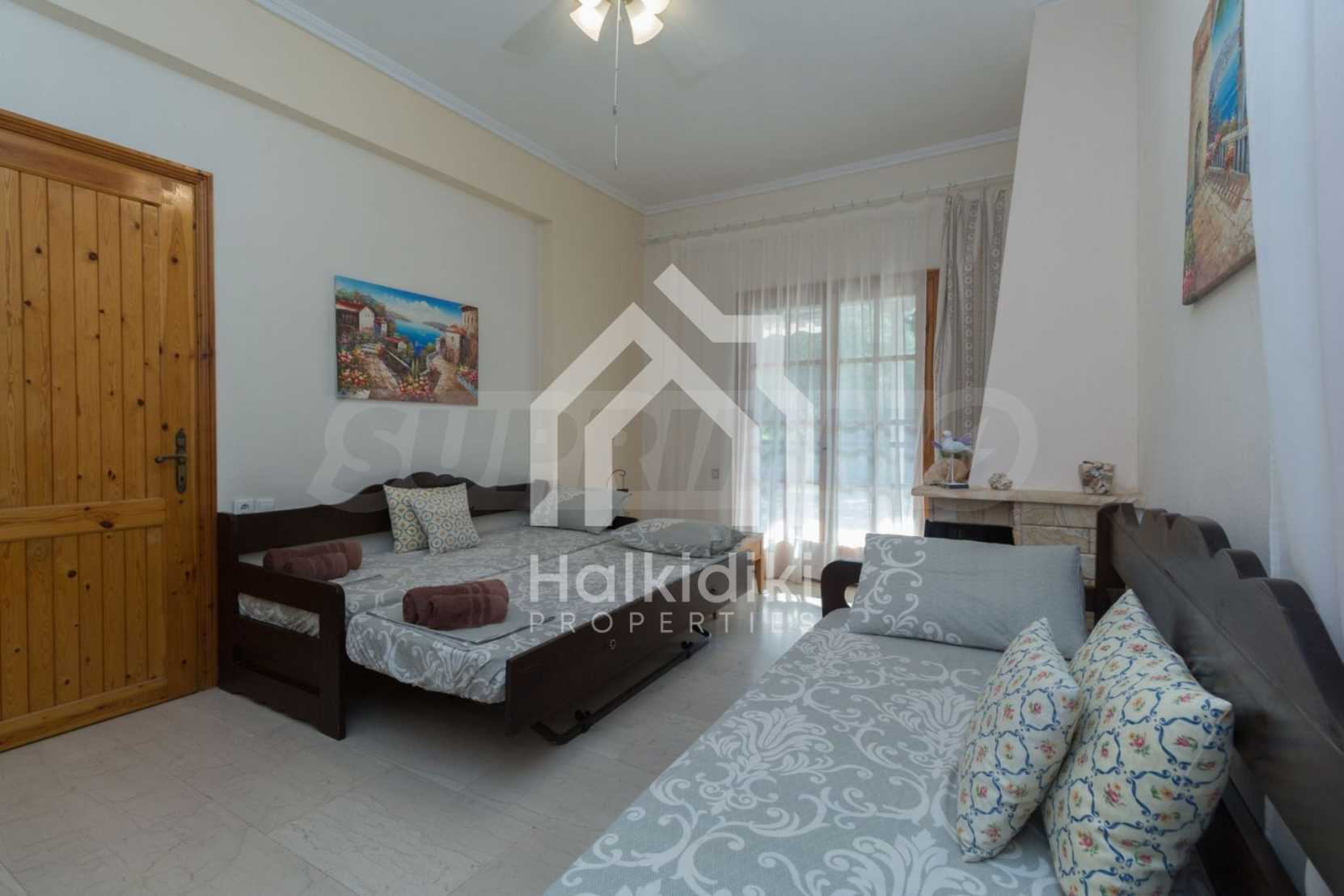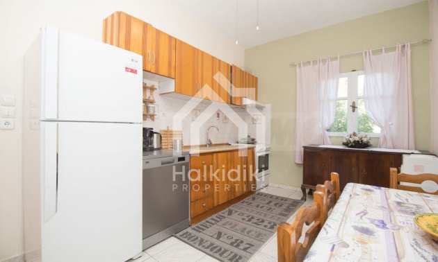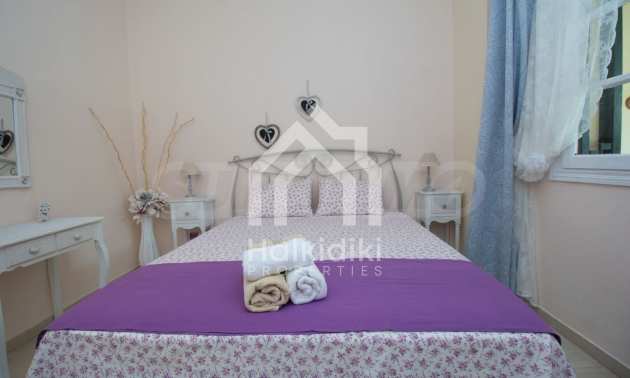 Beautiful maisonette, 90 m², In Sithonia, Halkidiki with a western orientation and with unobstructed permanent view.The property is only 250 m. away from the beach and is surrounded by a 1.000 m² plot.The maisonette is consisted of a living room connected with the kitchen, four bedrooms, one bathroom and a WC.The property also has marble floors, kiosk, barbecue, outdoor shower, an attic, wooden joinery and a parking spot.The maisonette is fully equipped and furnished.
