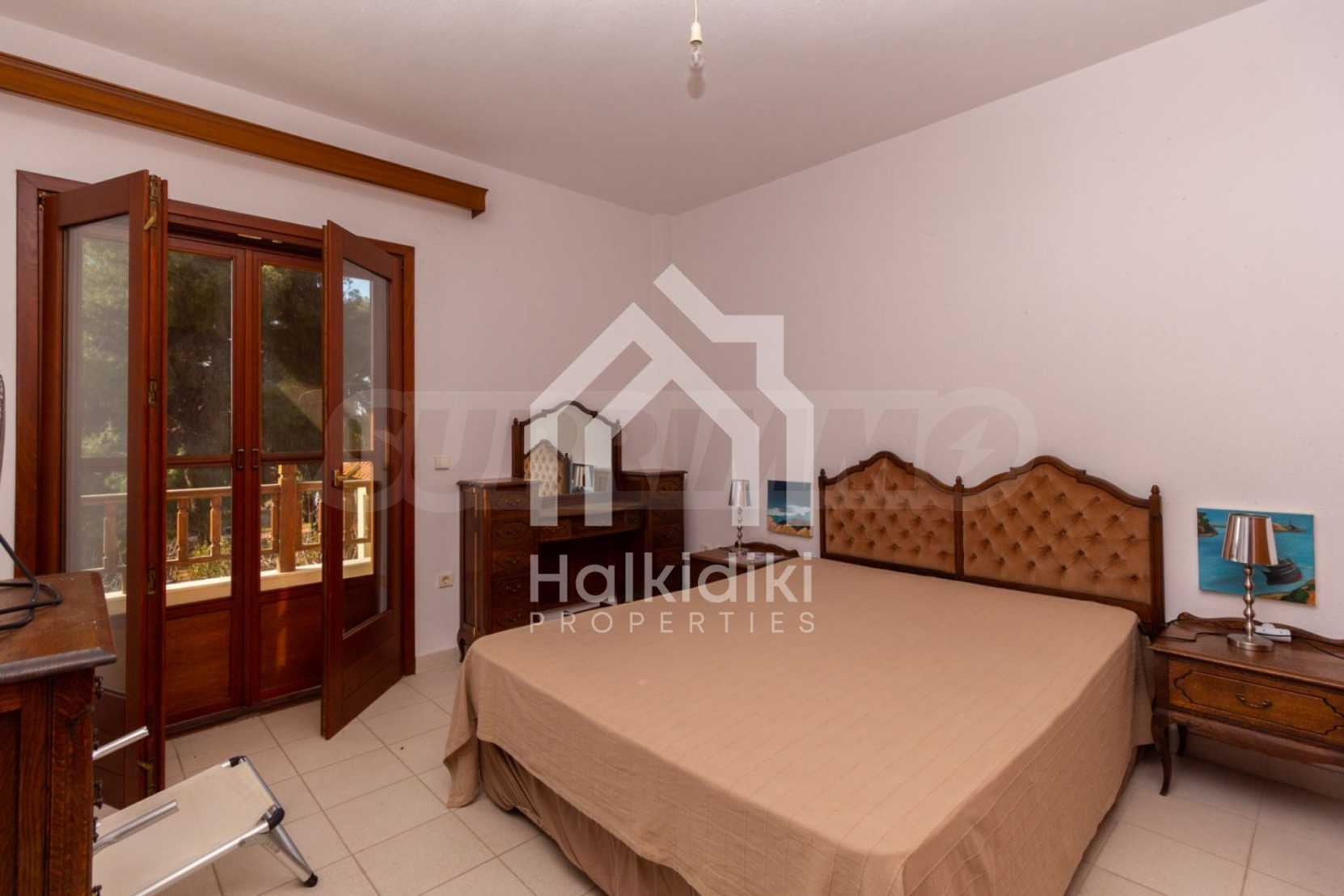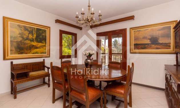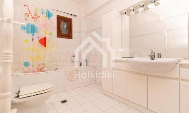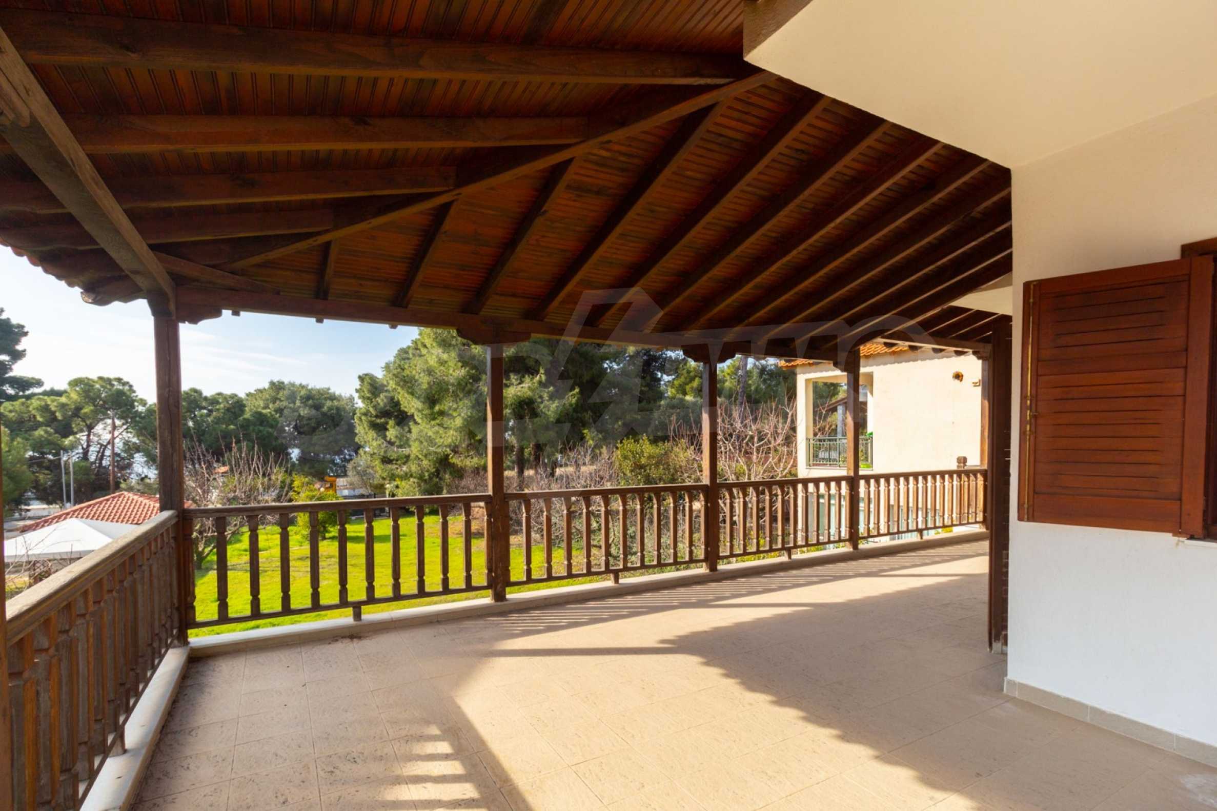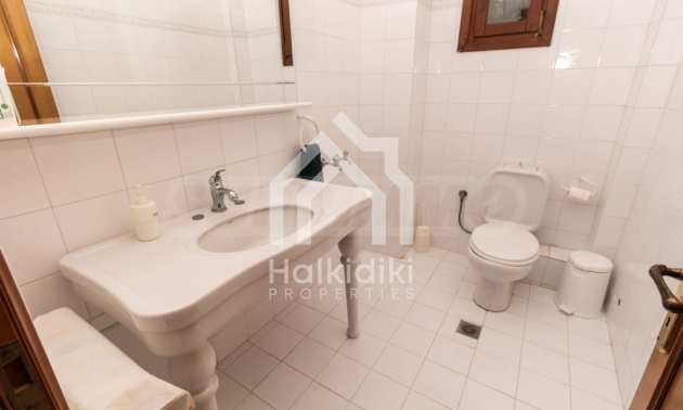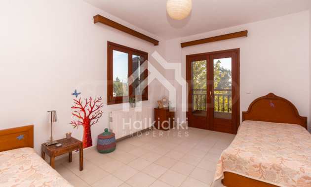 Two storey detached house with a basement,378 m²,in Sithonia,Halkidiki with a western orientation and with unobstructed permanent view.The fenced property is surrounded by 1.710m² plot and it is only 100 m. away from the beach and the center of the village.The house is split in three levels, consisted of a living room connected with the kitchen,six bedrooms,a wc and four bathrooms.The basement is a single unfinished space,130m².The property,also,has wooden joinery.The house is fully equipped and furnished.