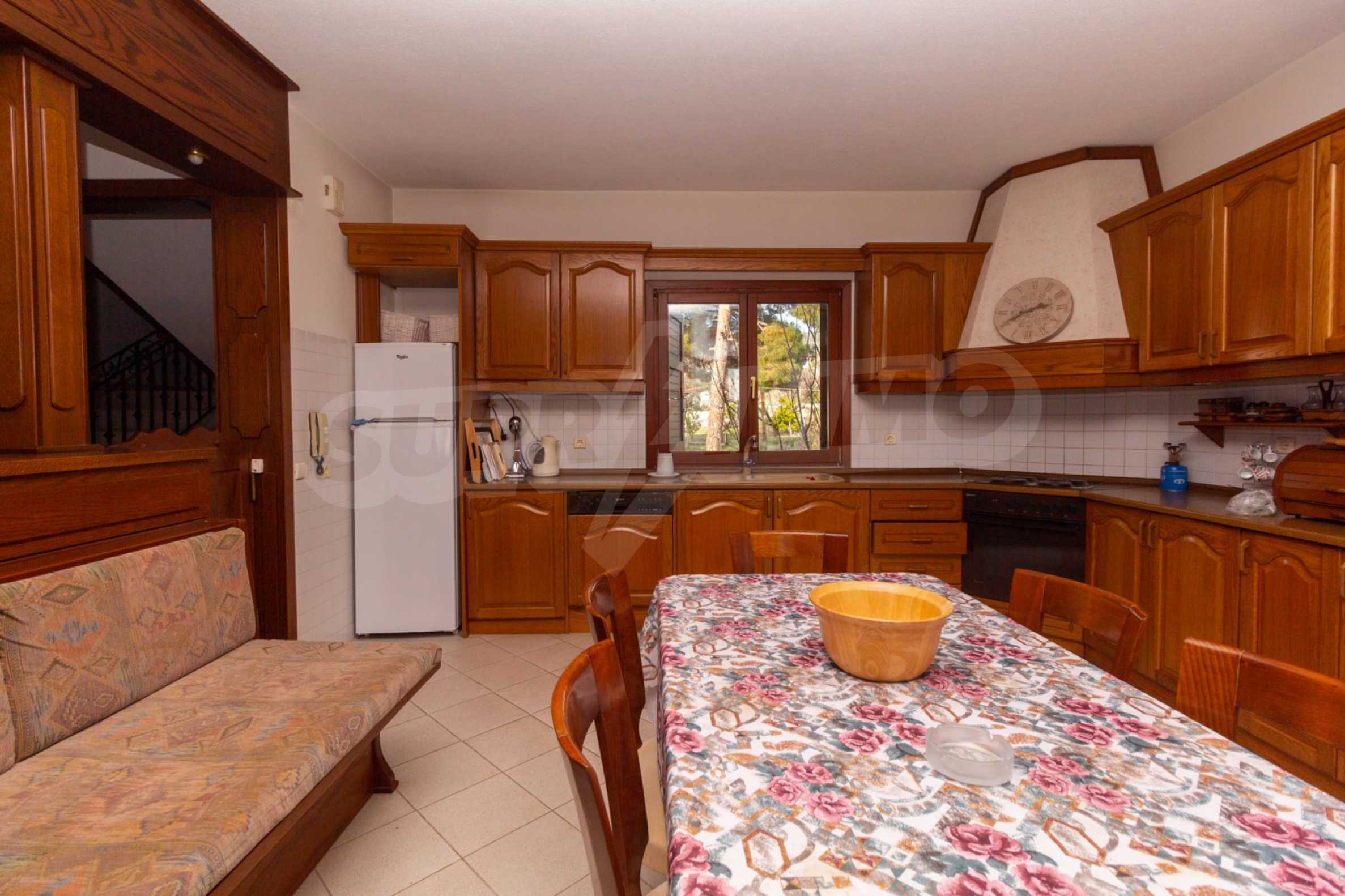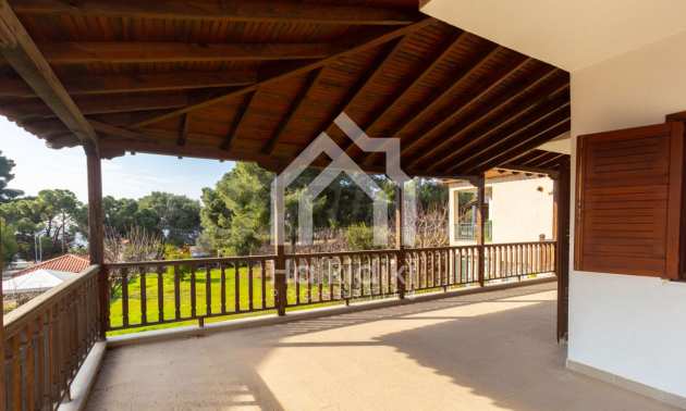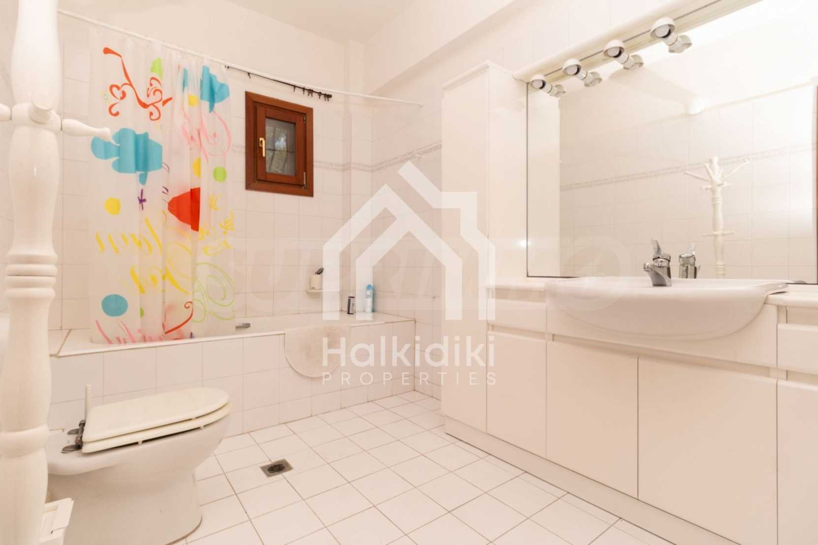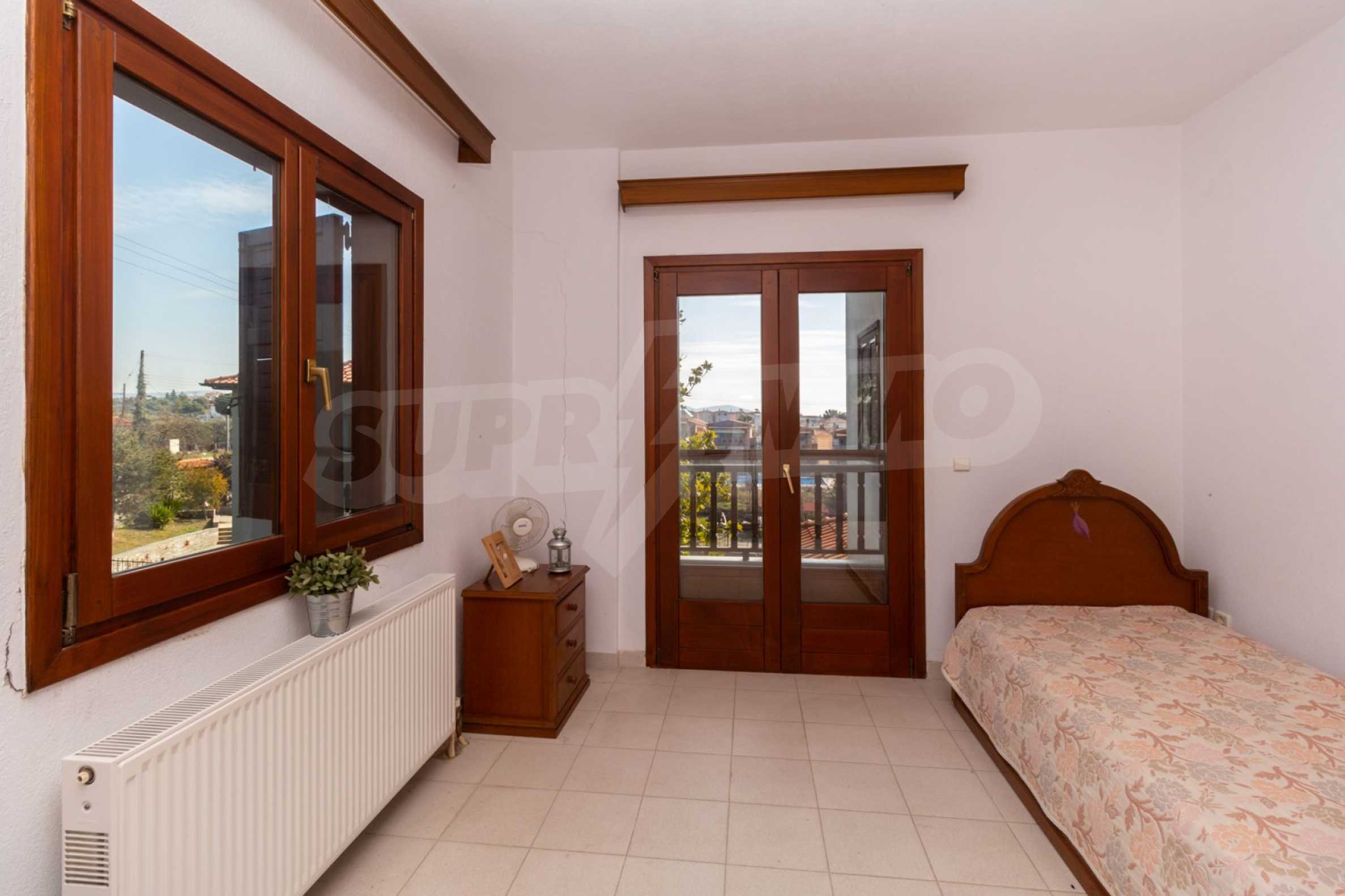 Two storey detached house with a basement,378 m²,in Sithonia,Halkidiki with a western orientation and with unobstructed permanent view.The fenced property is surrounded by 1.710m² plot and it is only 100 m. away from the beach and the center of the village.The house is split in three levels, consisted of a living room connected with the kitchen,six bedrooms,a wc and four bathrooms.The basement is a single unfinished space,130m².The property,also,has wooden joinery.The house is fully equipped and furnished.