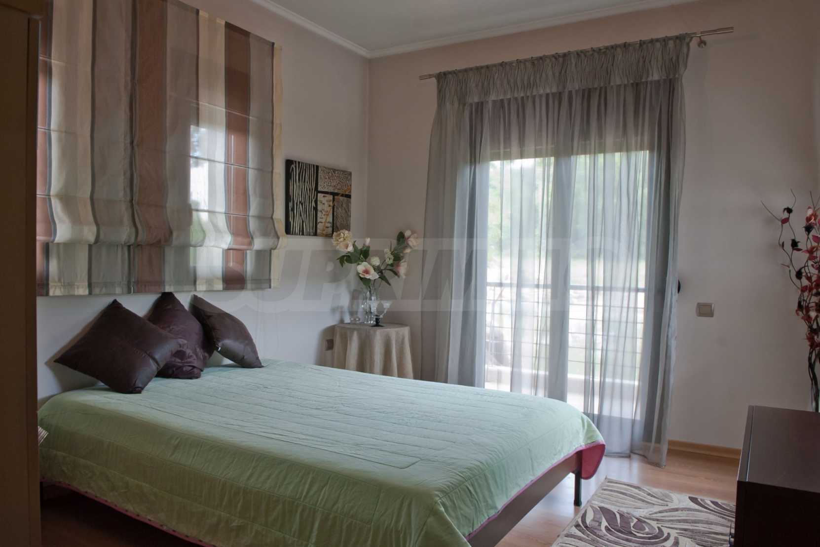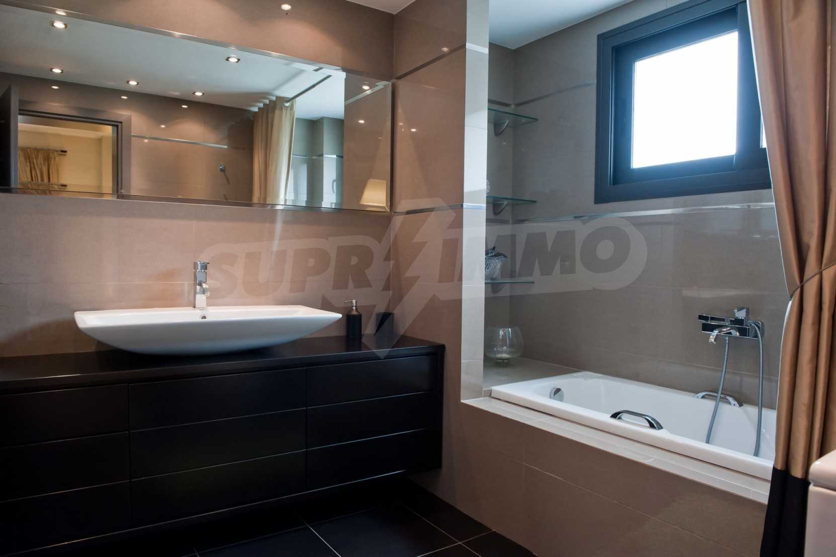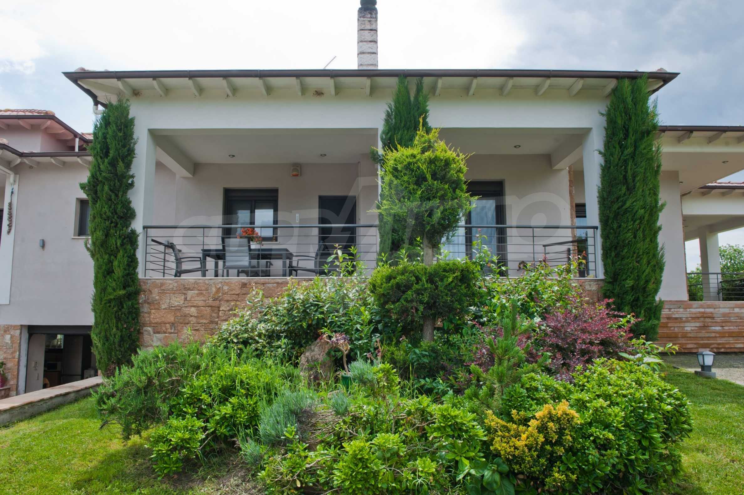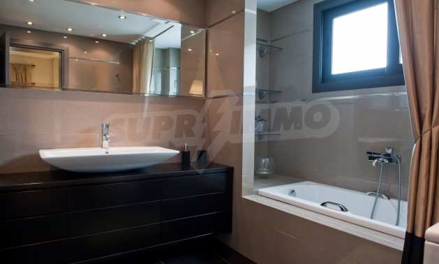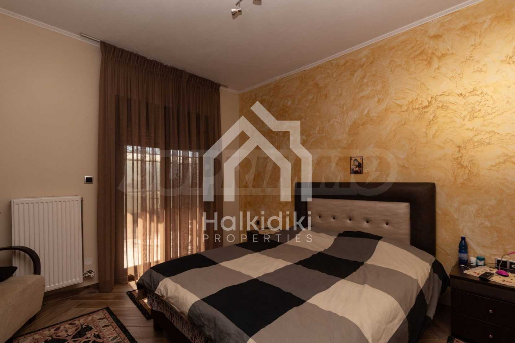 Beautiful,luxurious villa,600 m²,in Kassandra,Halkidiki with an eastern orientation and with unobstructed permanent view.The property is 700 m. away from the center of the village and it is surrounded by 1.300m² plot.The villa is split in three different apartments,consisted of two living rooms connected with the kitchens,six bedrooms,five bathrooms and three storage rooms.The property,also,has big balconies,aluminum joinery,security door,boiler,garage,jacuzzi,energy fireplace and alarm system pre-installation.The villa is fully equipped and furnished.