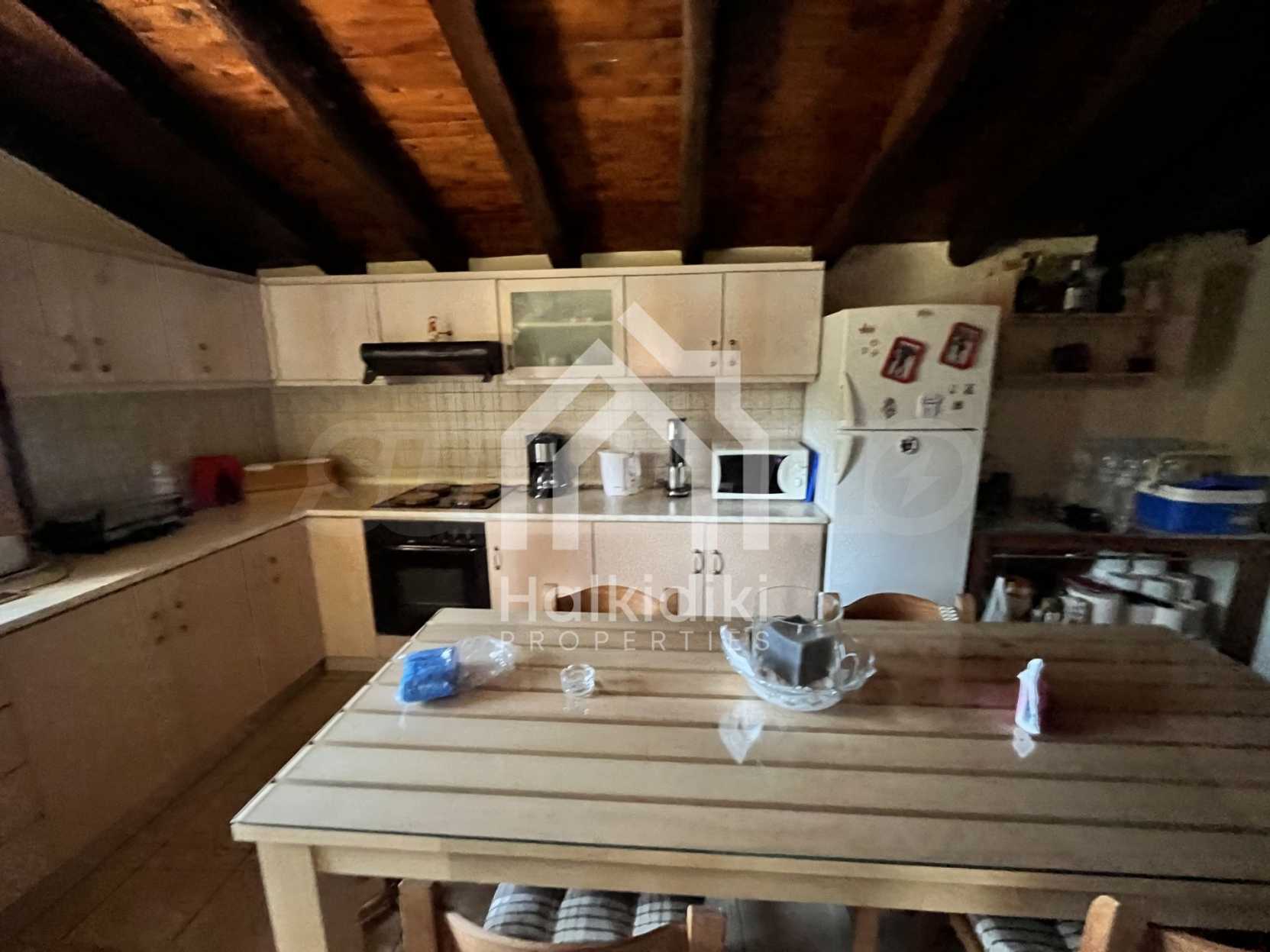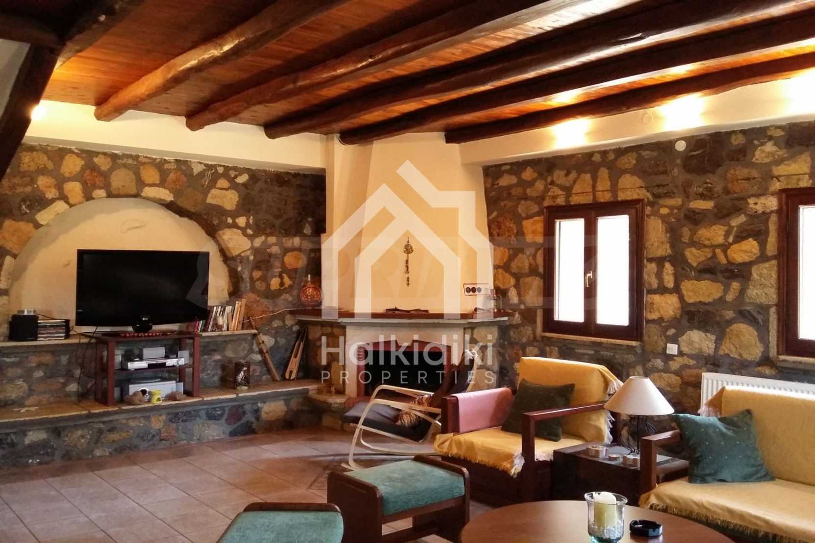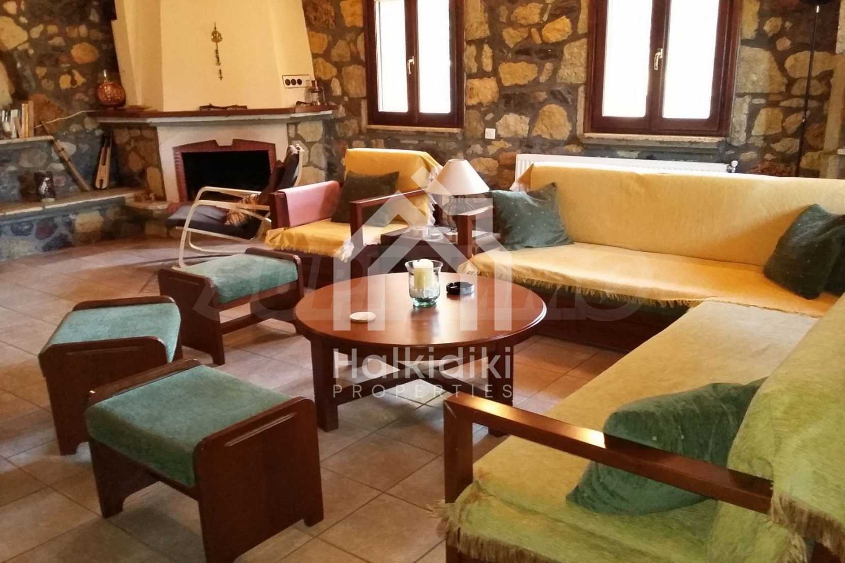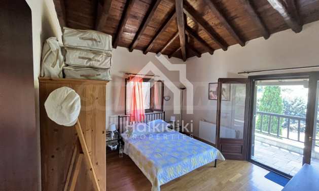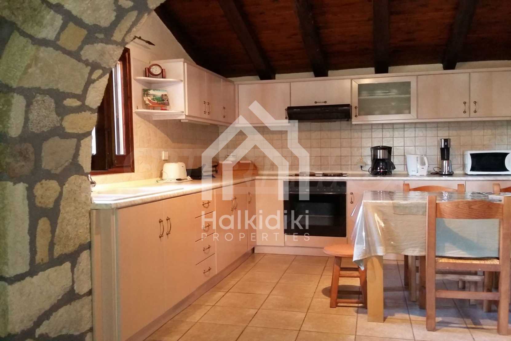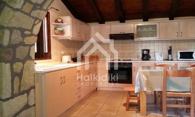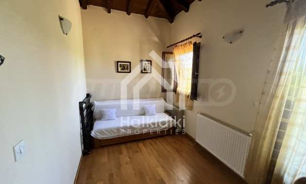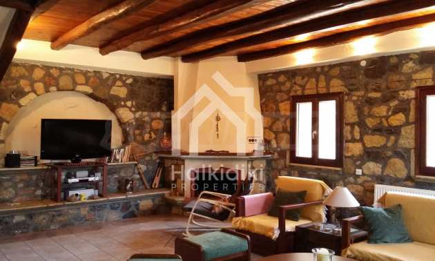 Renovated,stone-built detached house,162 m²,in Kassandra,Halkidiki with an eastern orientation and with unobstructed permanent view.The property is 200 m. away from the center of the village and is surrounded by 424m² plot.The house is split in two levels,consisted of a living room connected with the kitchen,three bedrooms,two bathrooms and two storage rooms.The property,also,has wooden floor in some rooms,kiosk,barbecue and boiler.The house is fully equipped and furnished.
