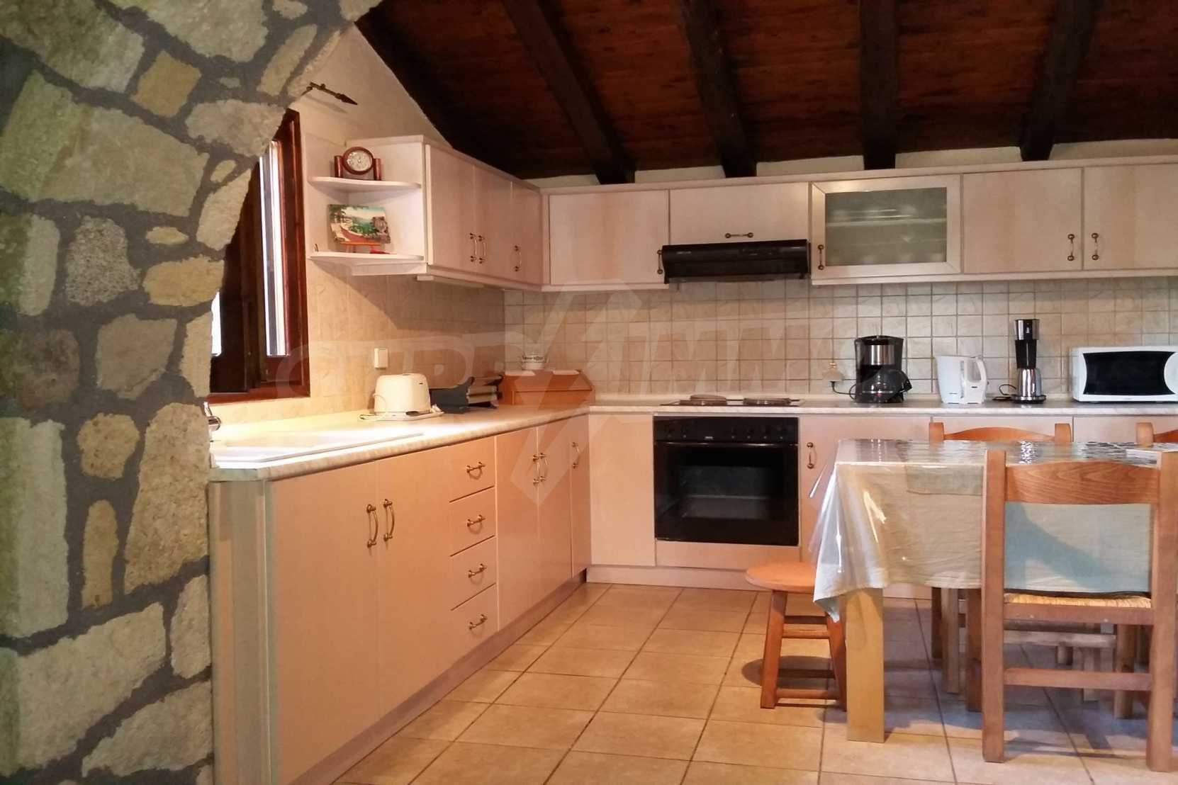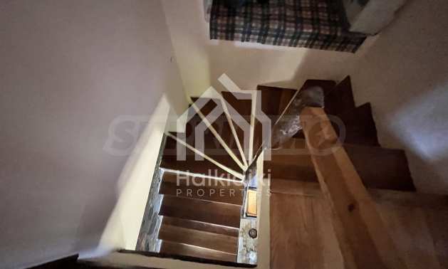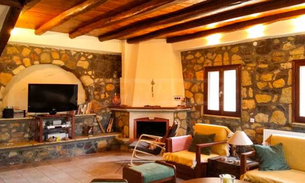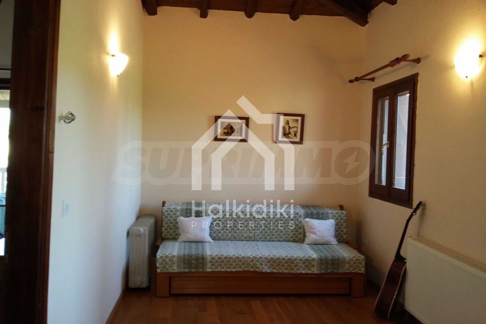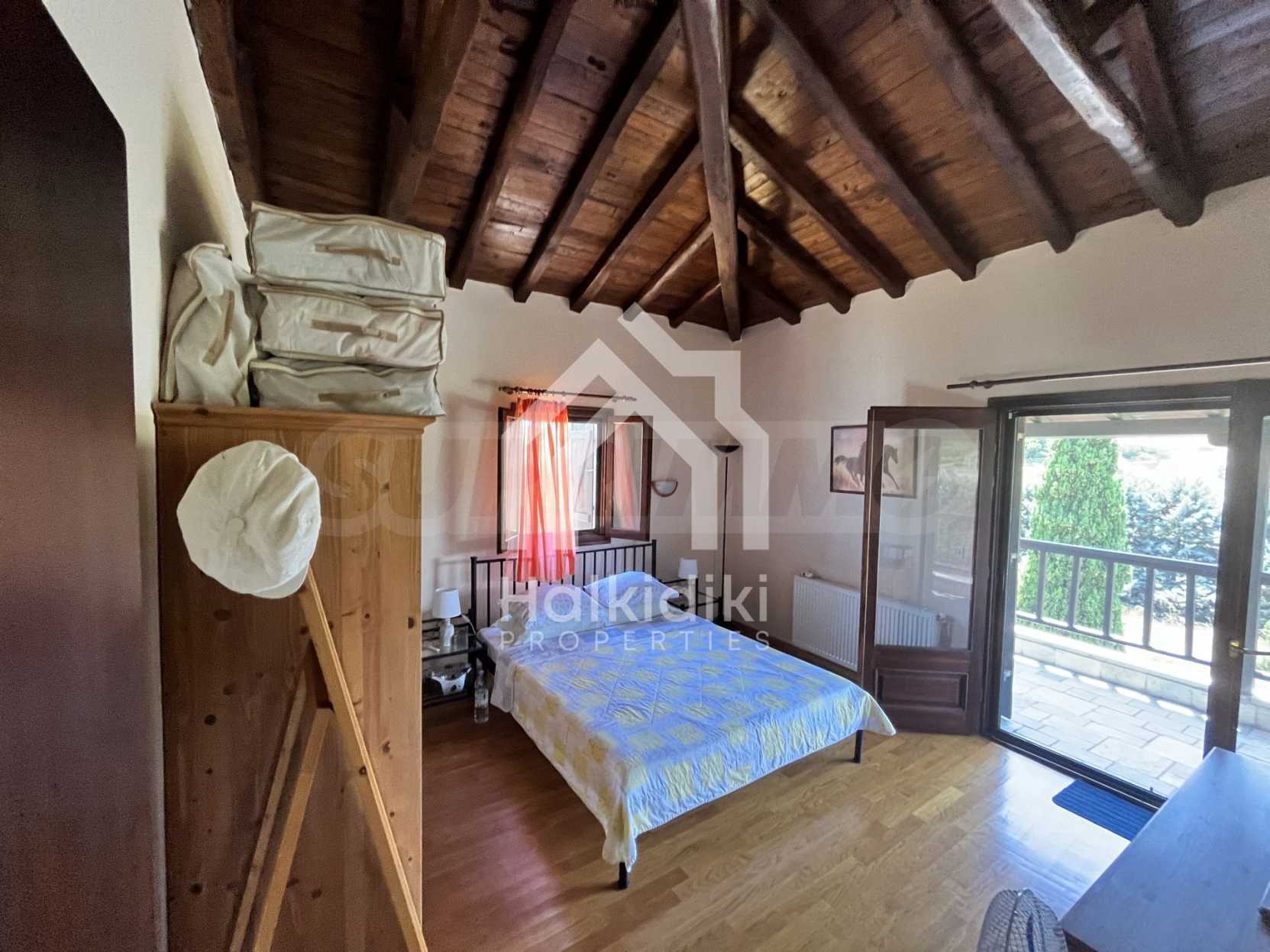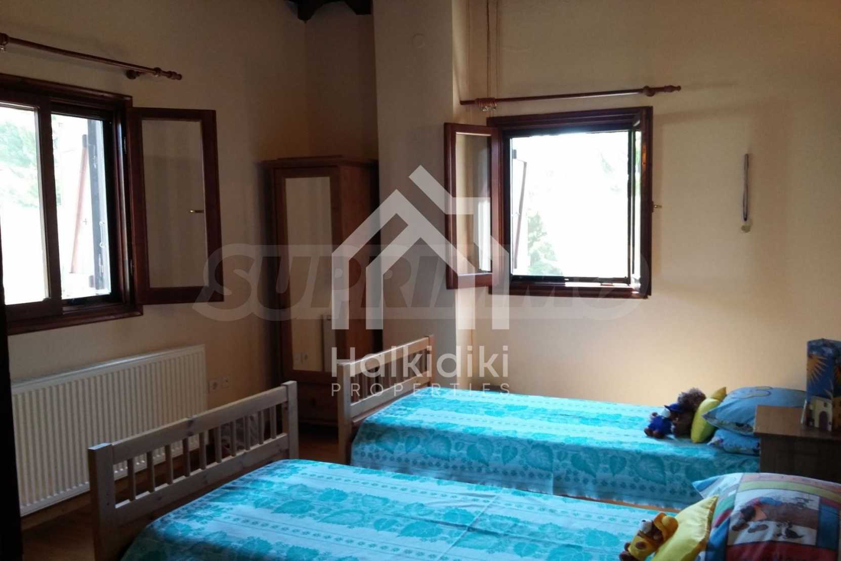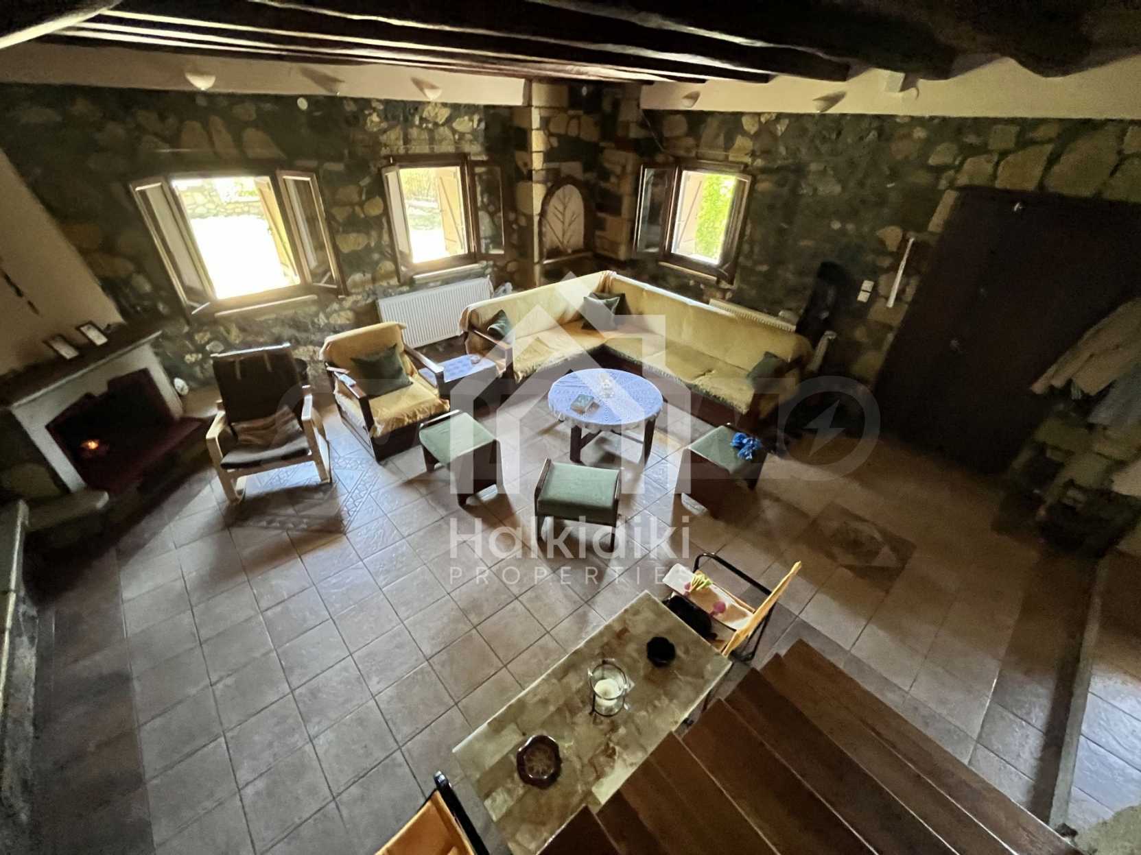 Renovated,stone-built detached house,162 m²,in Kassandra,Halkidiki with an eastern orientation and with unobstructed permanent view.The property is 200 m. away from the center of the village and is surrounded by 424m² plot.The house is split in two levels,consisted of a living room connected with the kitchen,three bedrooms,two bathrooms and two storage rooms.The property,also,has wooden floor in some rooms,kiosk,barbecue and boiler.The house is fully equipped and furnished.