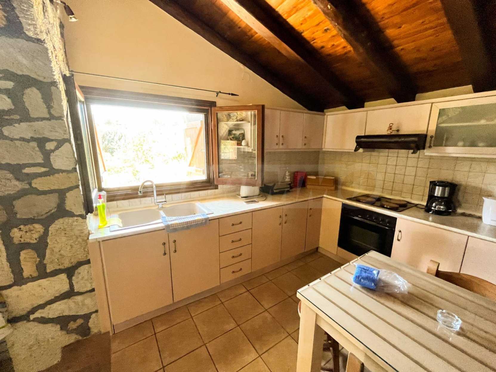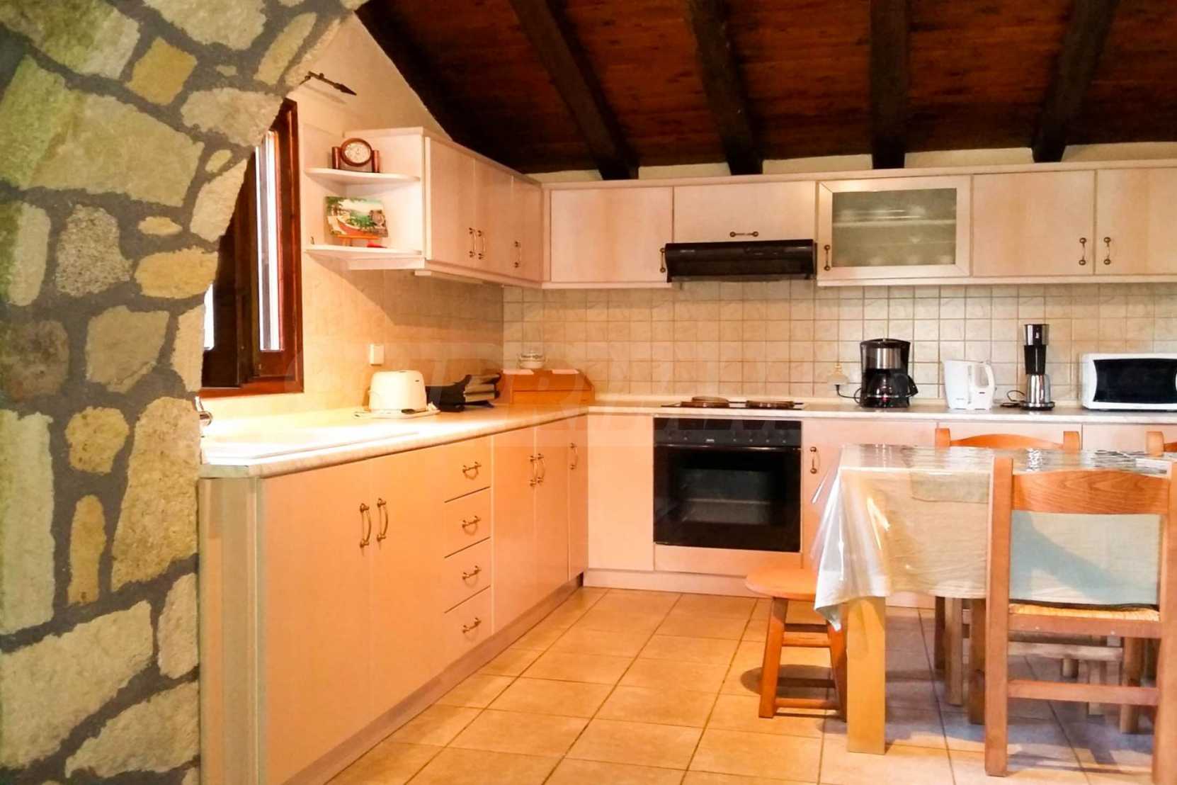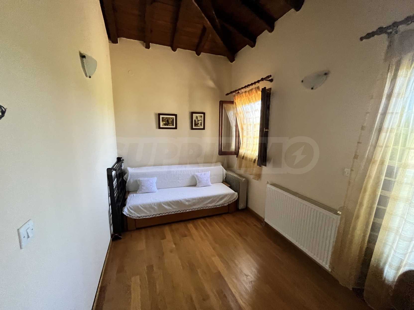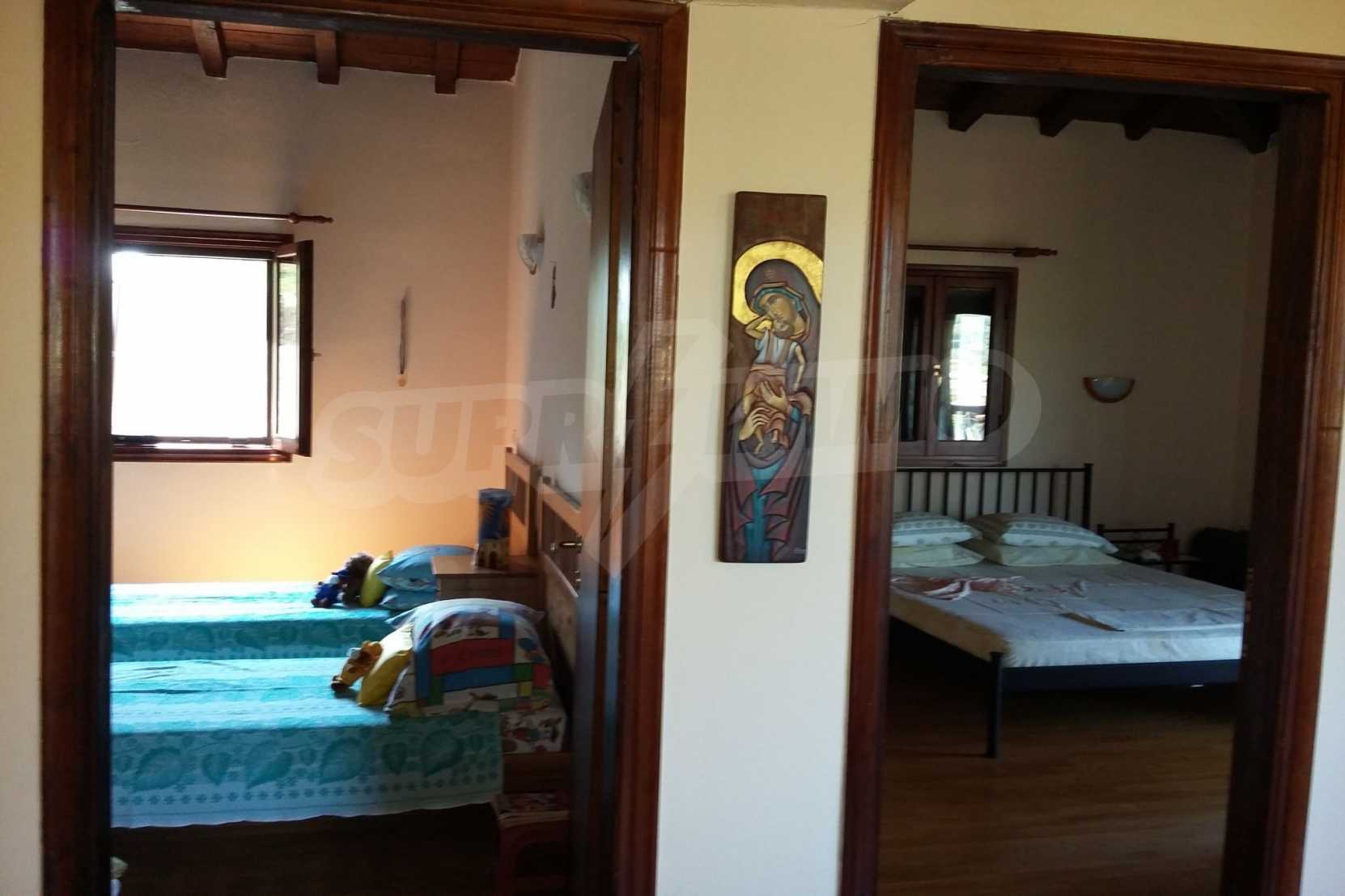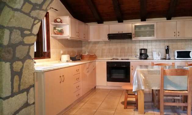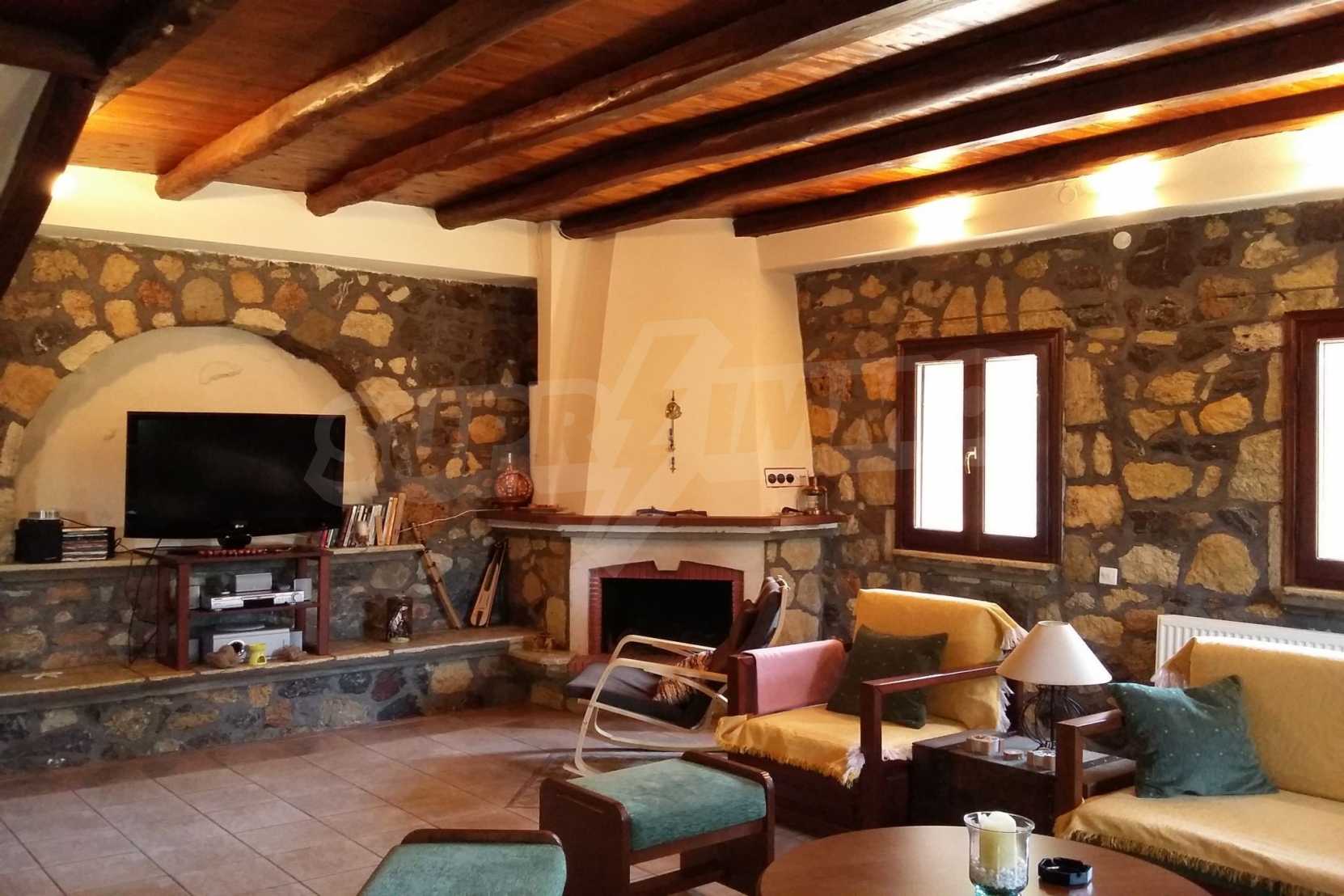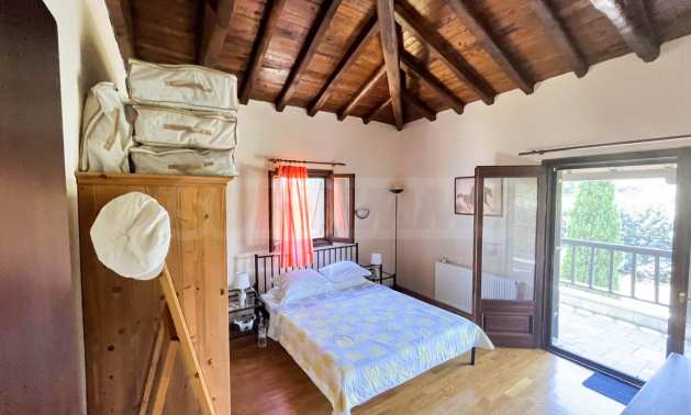 Renovated,stone-built detached house,162 m²,in Kassandra,Halkidiki with an eastern orientation and with unobstructed permanent view.The property is 200 m. away from the center of the village and is surrounded by 424m² plot.The house is split in two levels,consisted of a living room connected with the kitchen,three bedrooms,two bathrooms and two storage rooms.The property,also,has wooden floor in some rooms,kiosk,barbecue and boiler.The house is fully equipped and furnished.
