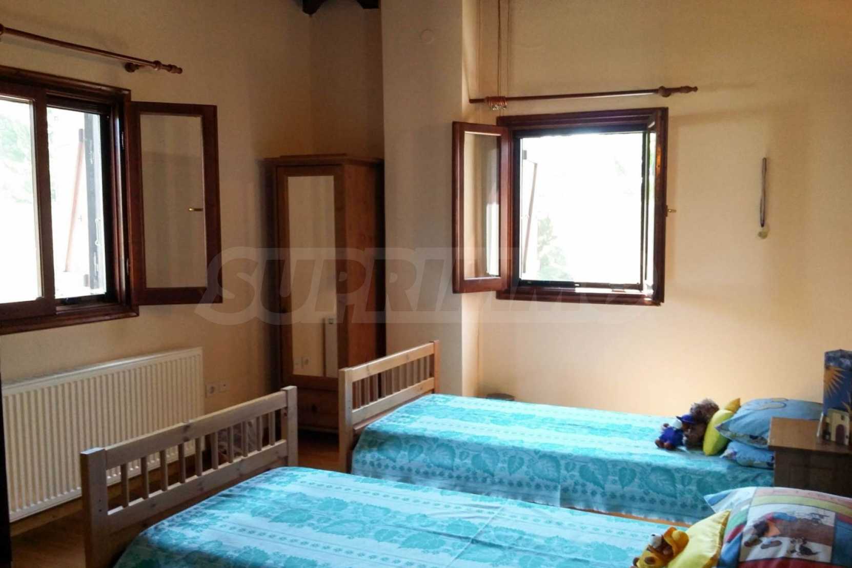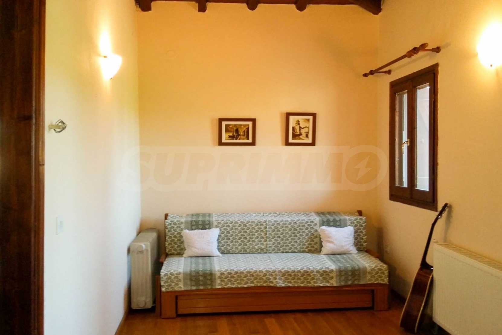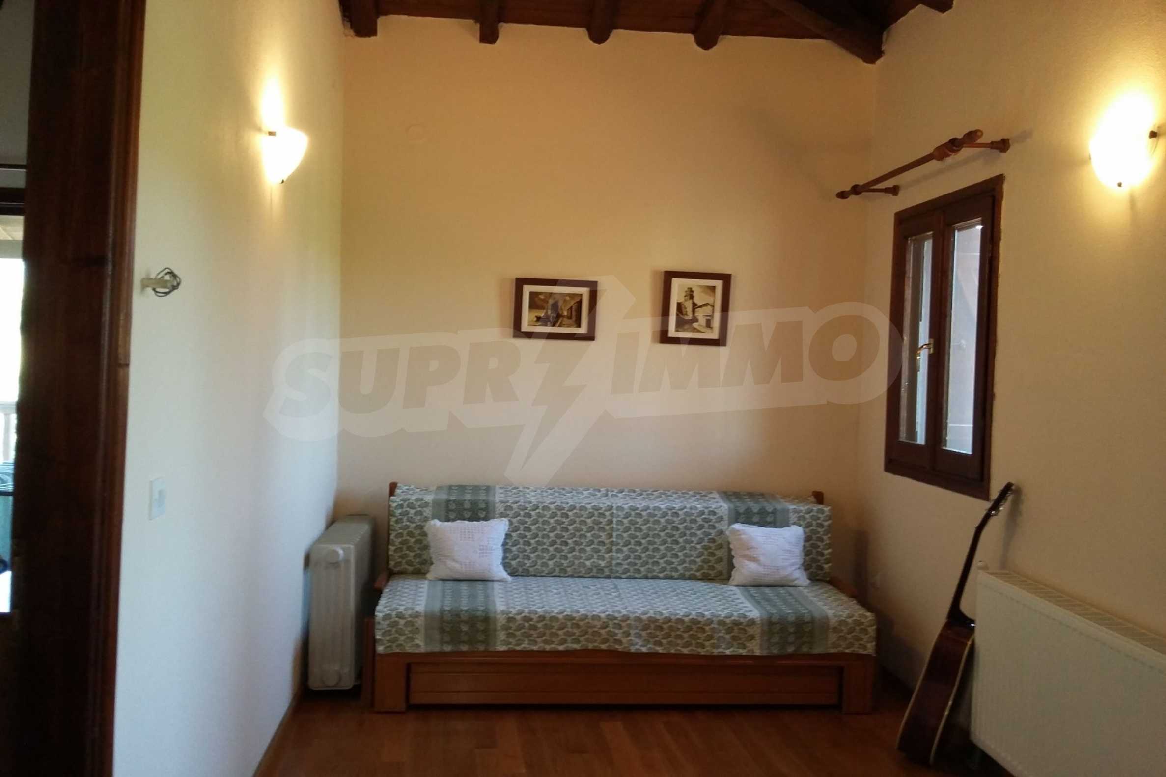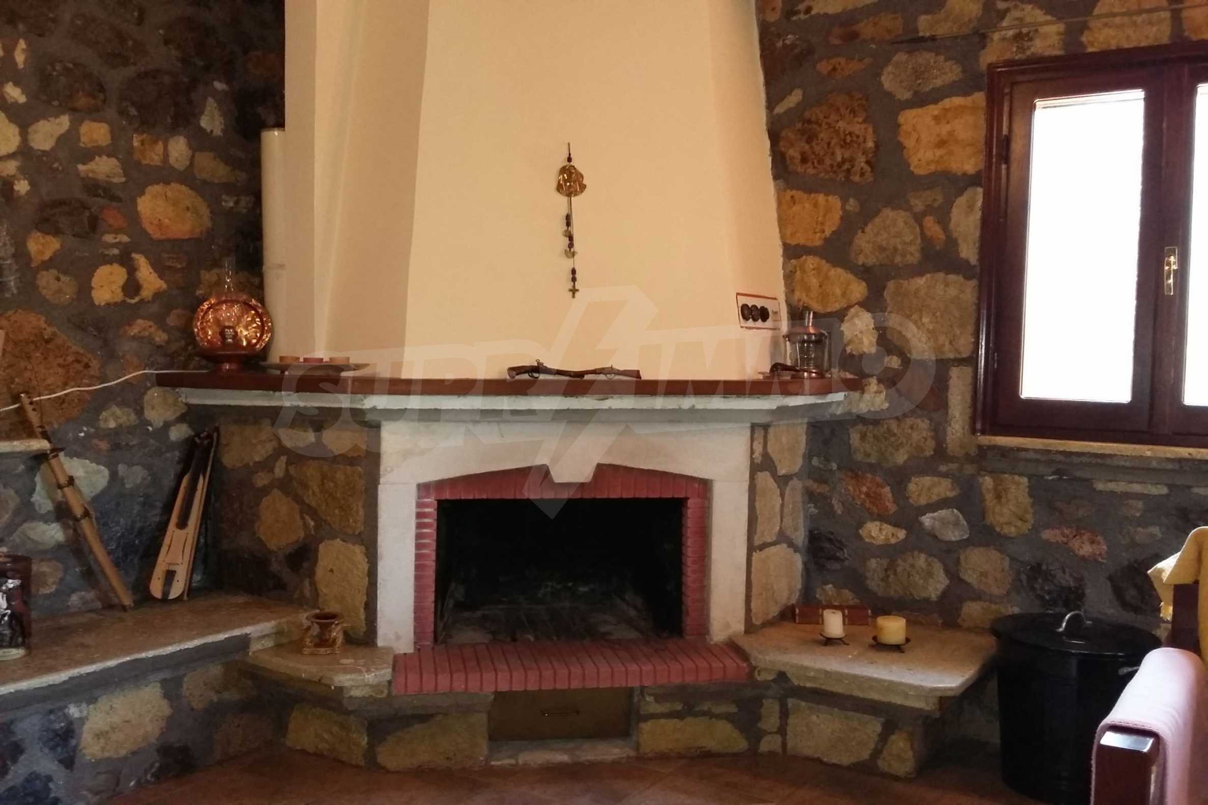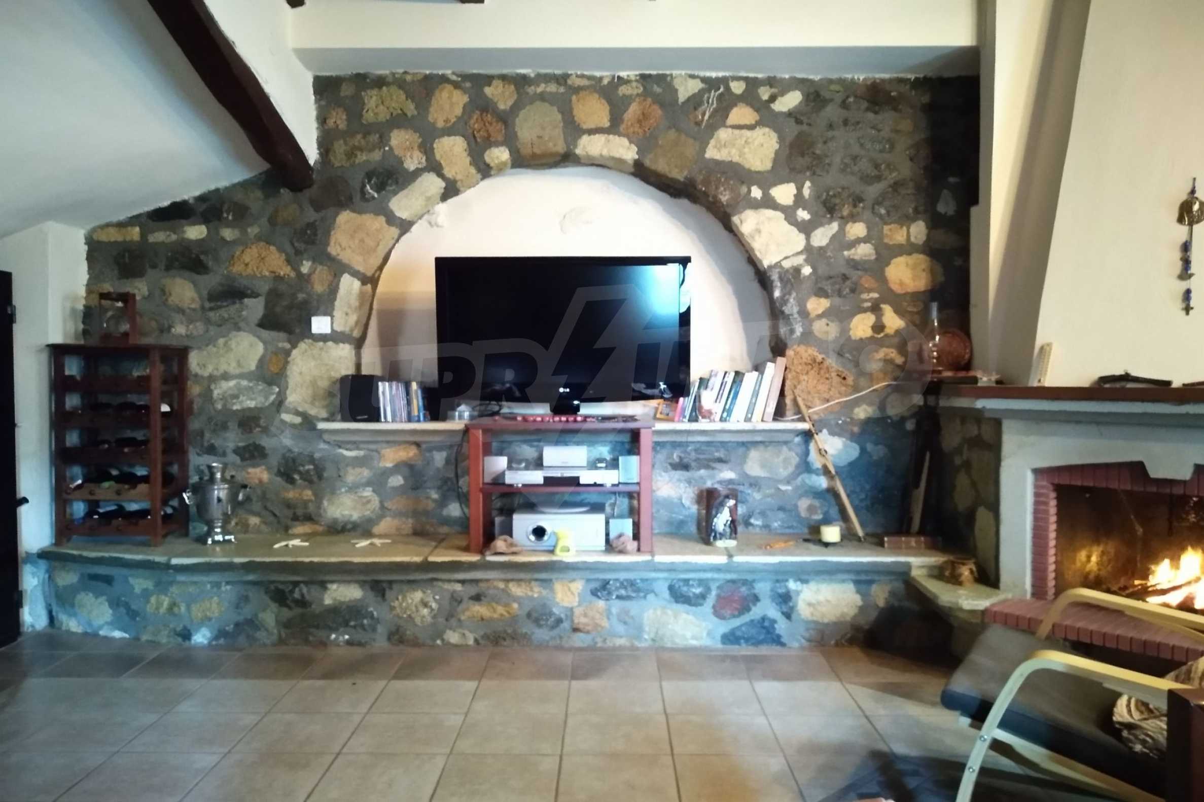 Renovated,stone-built detached house,162 m²,in Kassandra,Halkidiki with an eastern orientation and with unobstructed permanent view.The property is 200 m. away from the center of the village and is surrounded by 424m² plot.The house is split in two levels,consisted of a living room connected with the kitchen,three bedrooms,two bathrooms and two storage rooms.The property,also,has wooden floor in some rooms,kiosk,barbecue and boiler.The house is fully equipped and furnished.