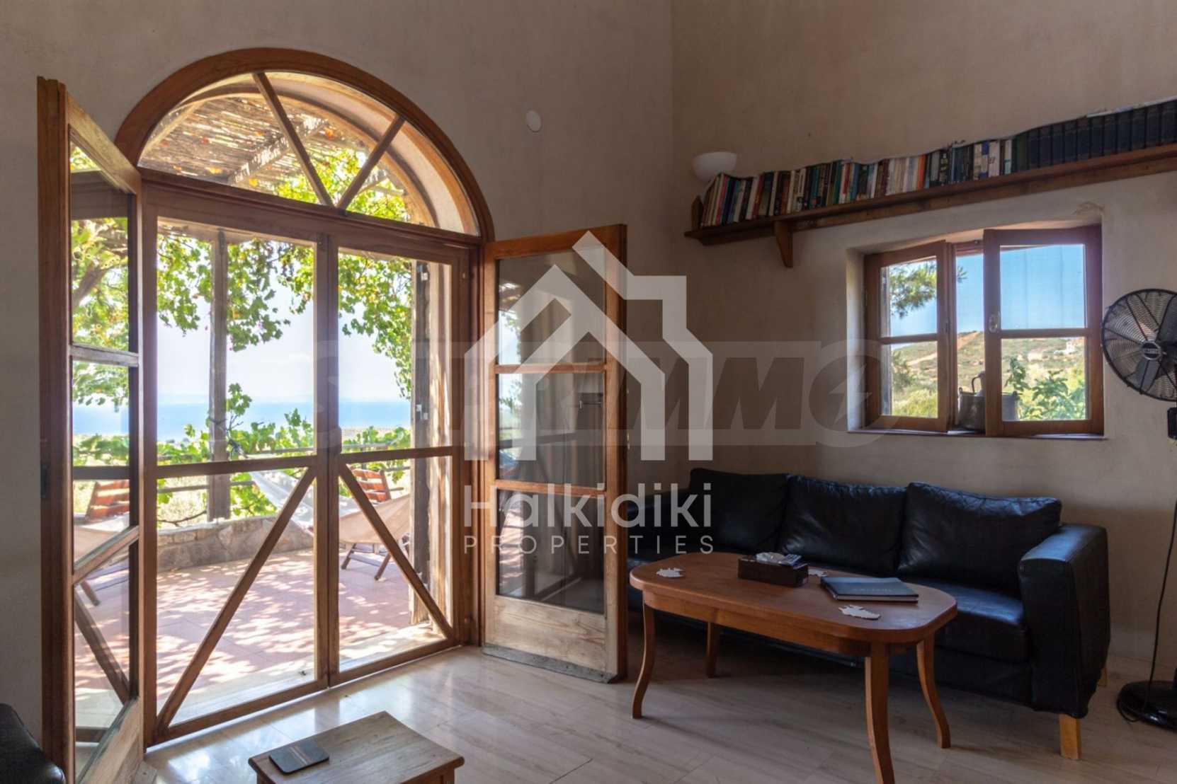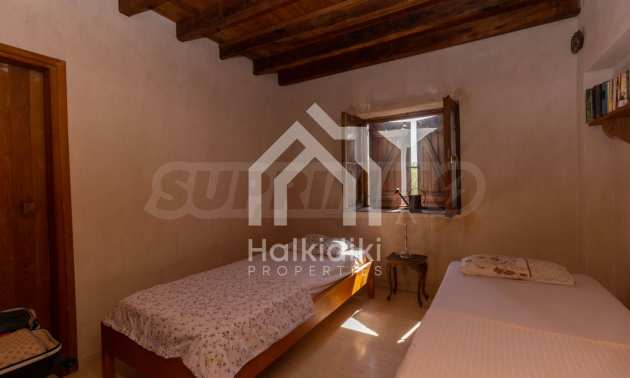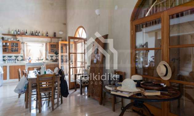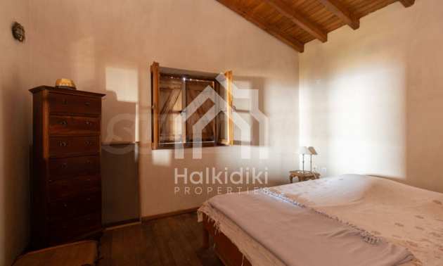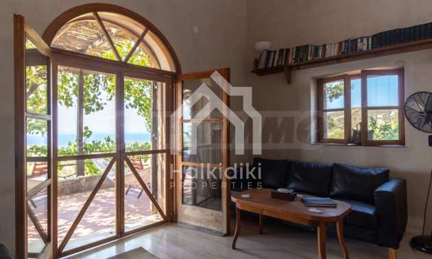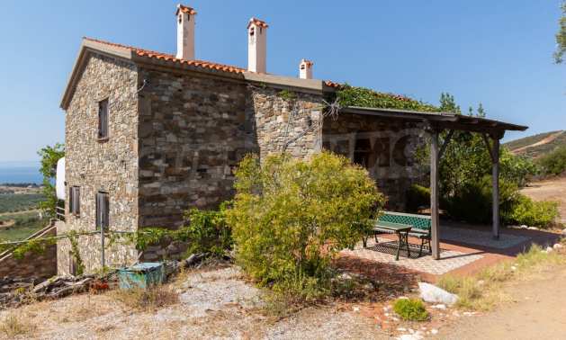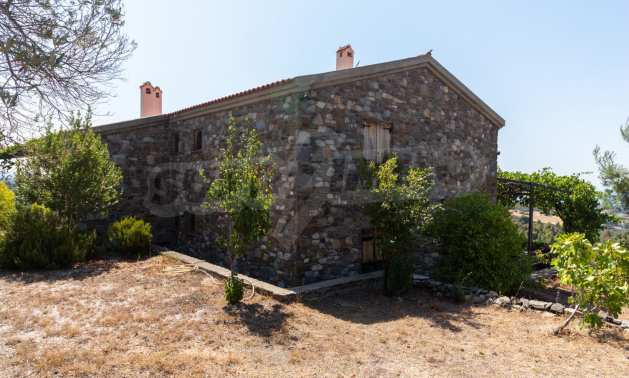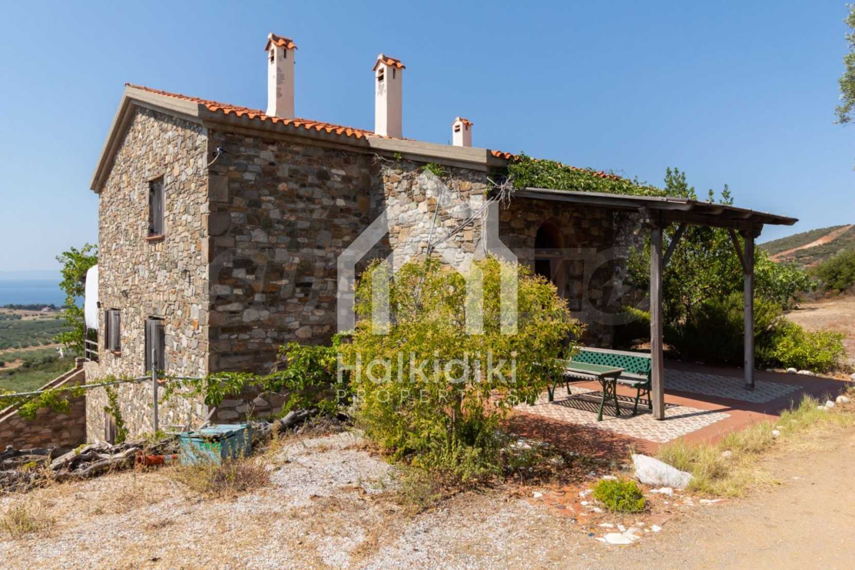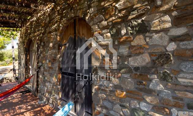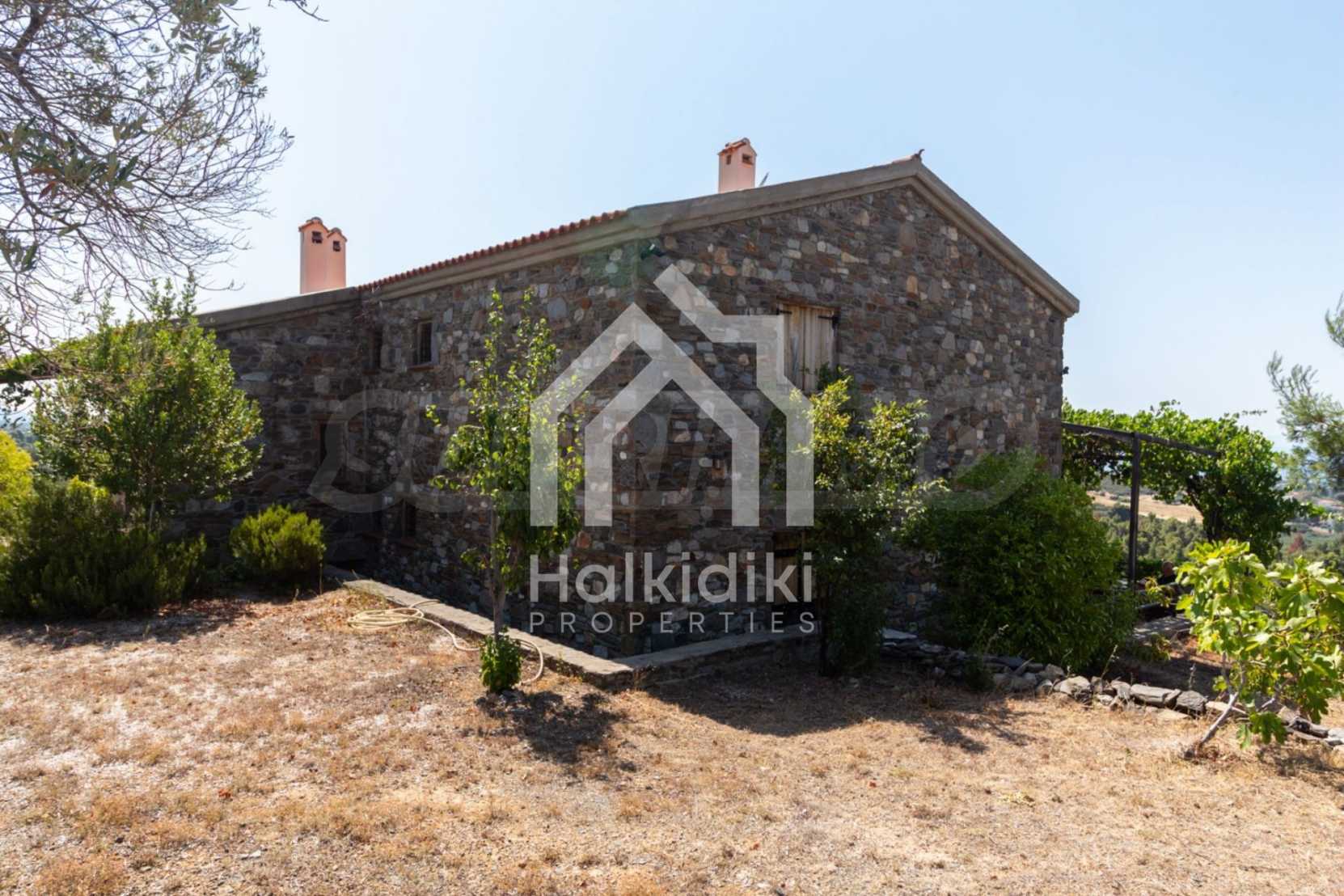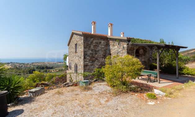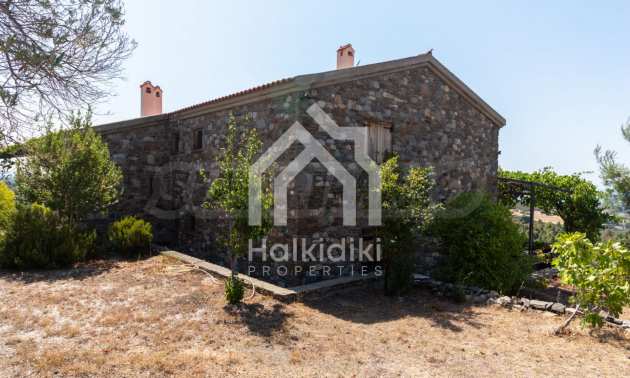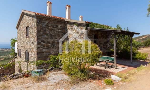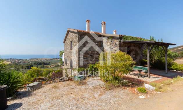 Stone-built detached house,302 m²,in Sithonia,Halkidiki with a western orientation and with unobstructed permanent sea view.The property is 2 km. away from the beach,3 km. away from the center of the village and is surrounded by 13,5 acres plot.The house is split in three levels, consisted of a living room connected with the kitchen and the dining room,two bedrooms and two bathrooms on the ground floor,two bedrooms and a bathroom on the first floor and a storage room with boiler room on the basement.The property,also,has big balconies and alarm system.The house is fully equipped and furnished.