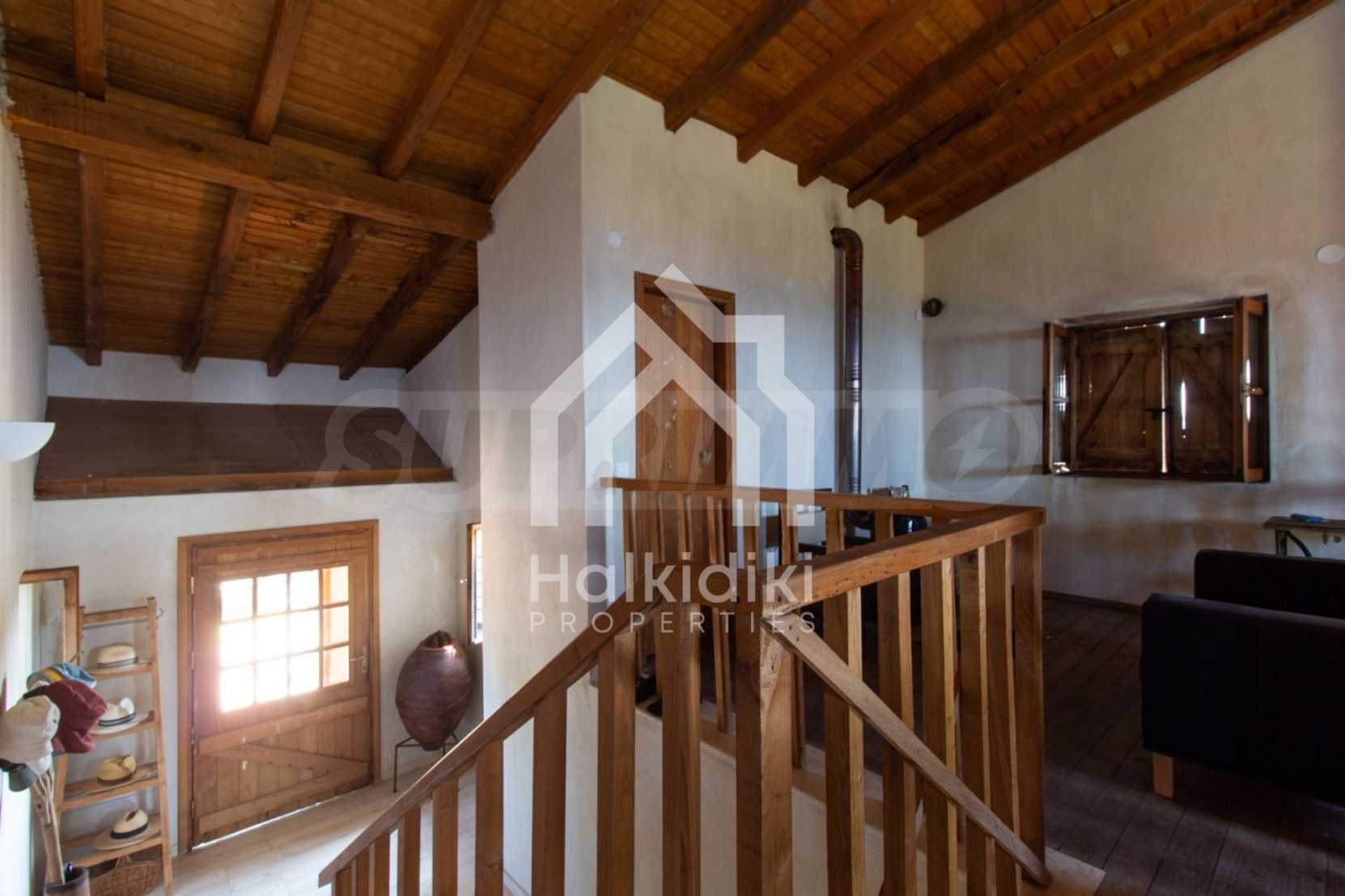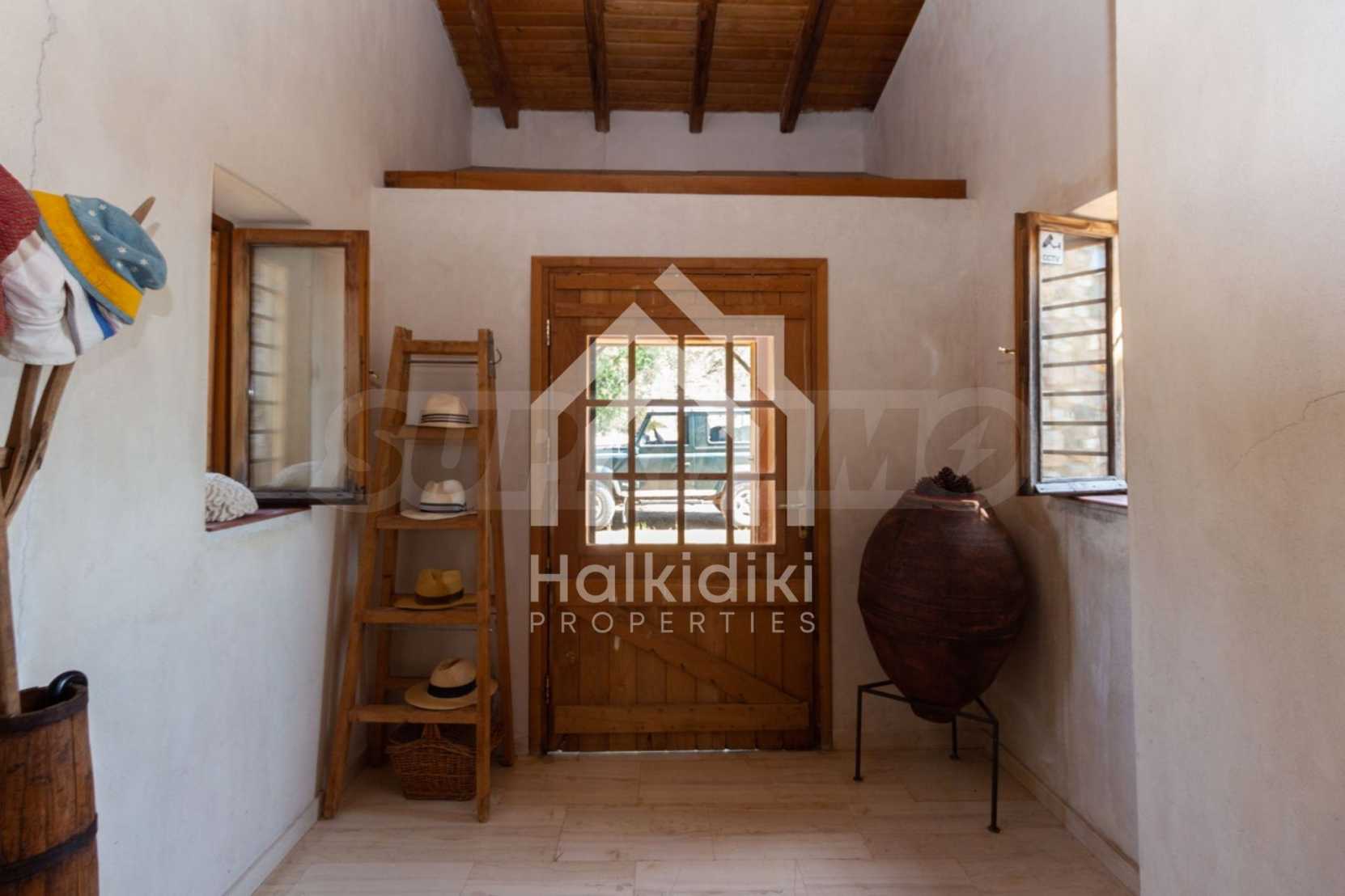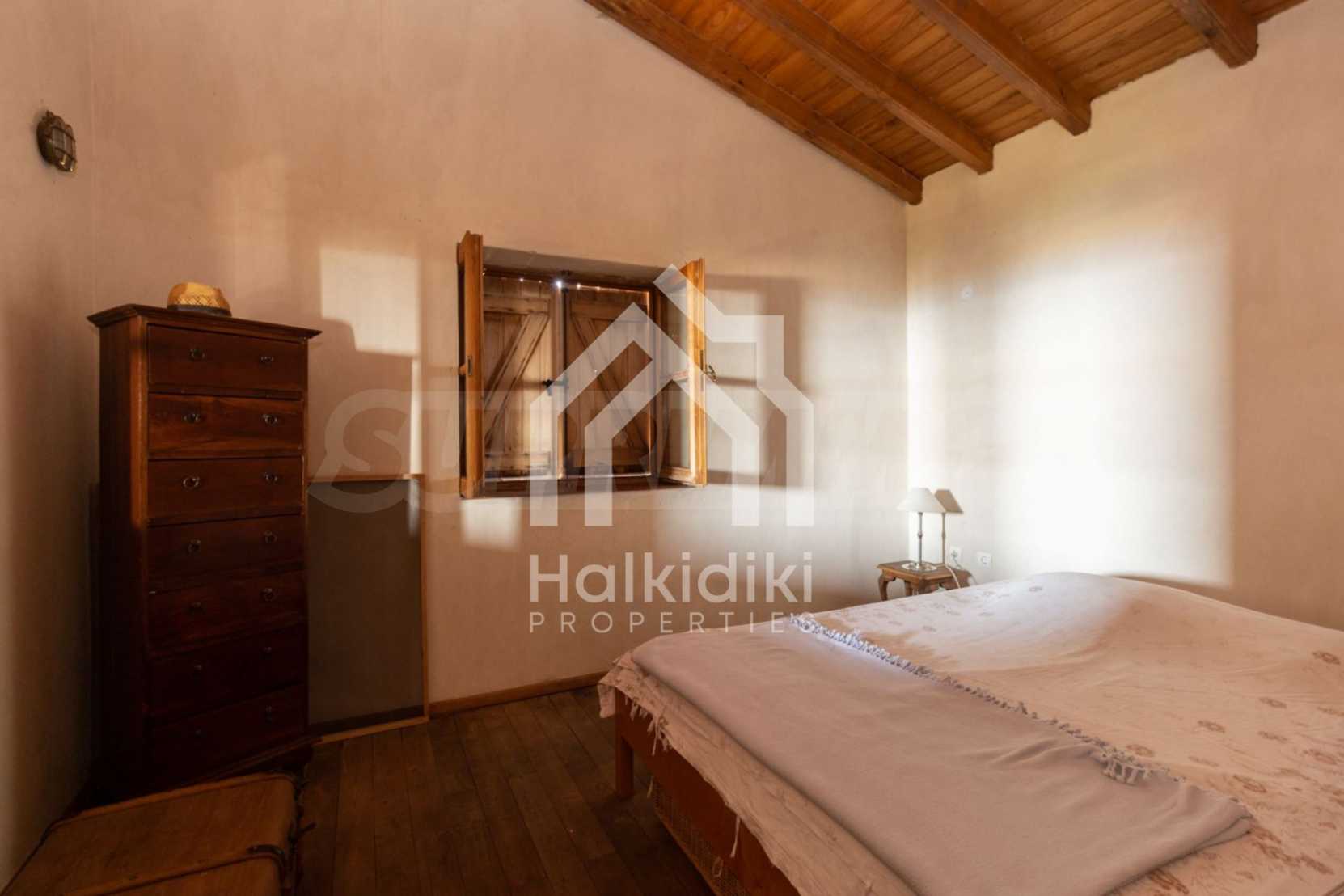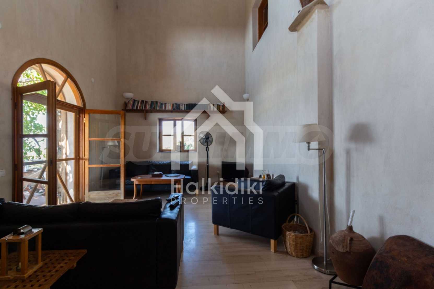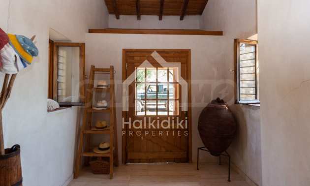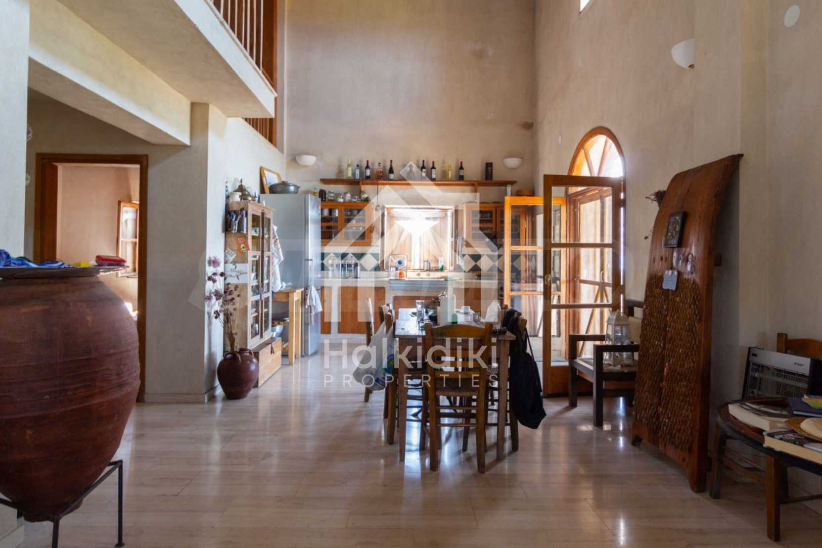 Stone-built detached house,302 m²,in Sithonia,Halkidiki with a western orientation and with unobstructed permanent sea view.The property is 2 km. away from the beach,3 km. away from the center of the village and is surrounded by 13,5 acres plot.The house is split in three levels, consisted of a living room connected with the kitchen and the dining room,two bedrooms and two bathrooms on the ground floor,two bedrooms and a bathroom on the first floor and a storage room with boiler room on the basement.The property,also,has big balconies and alarm system.The house is fully equipped and furnished.