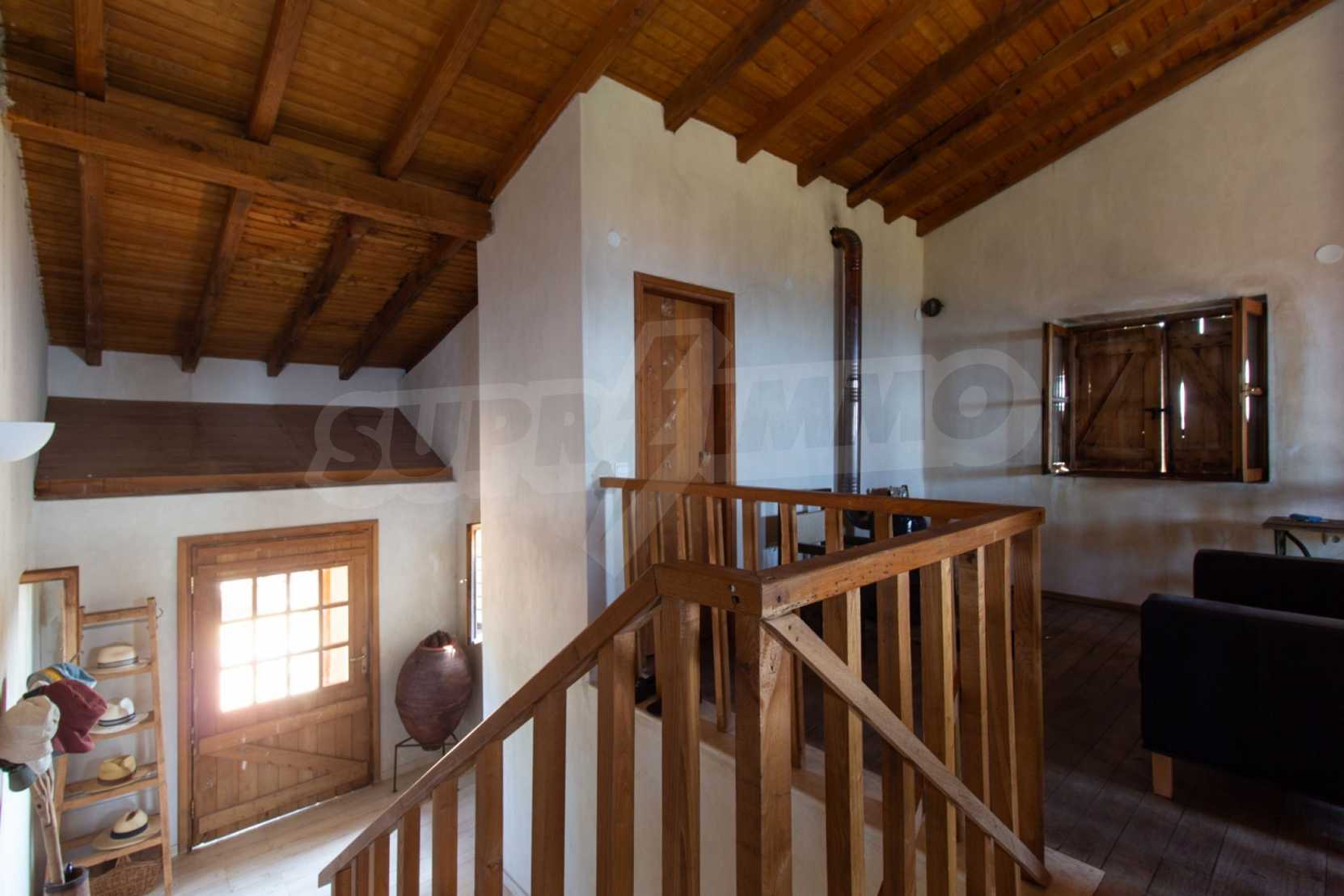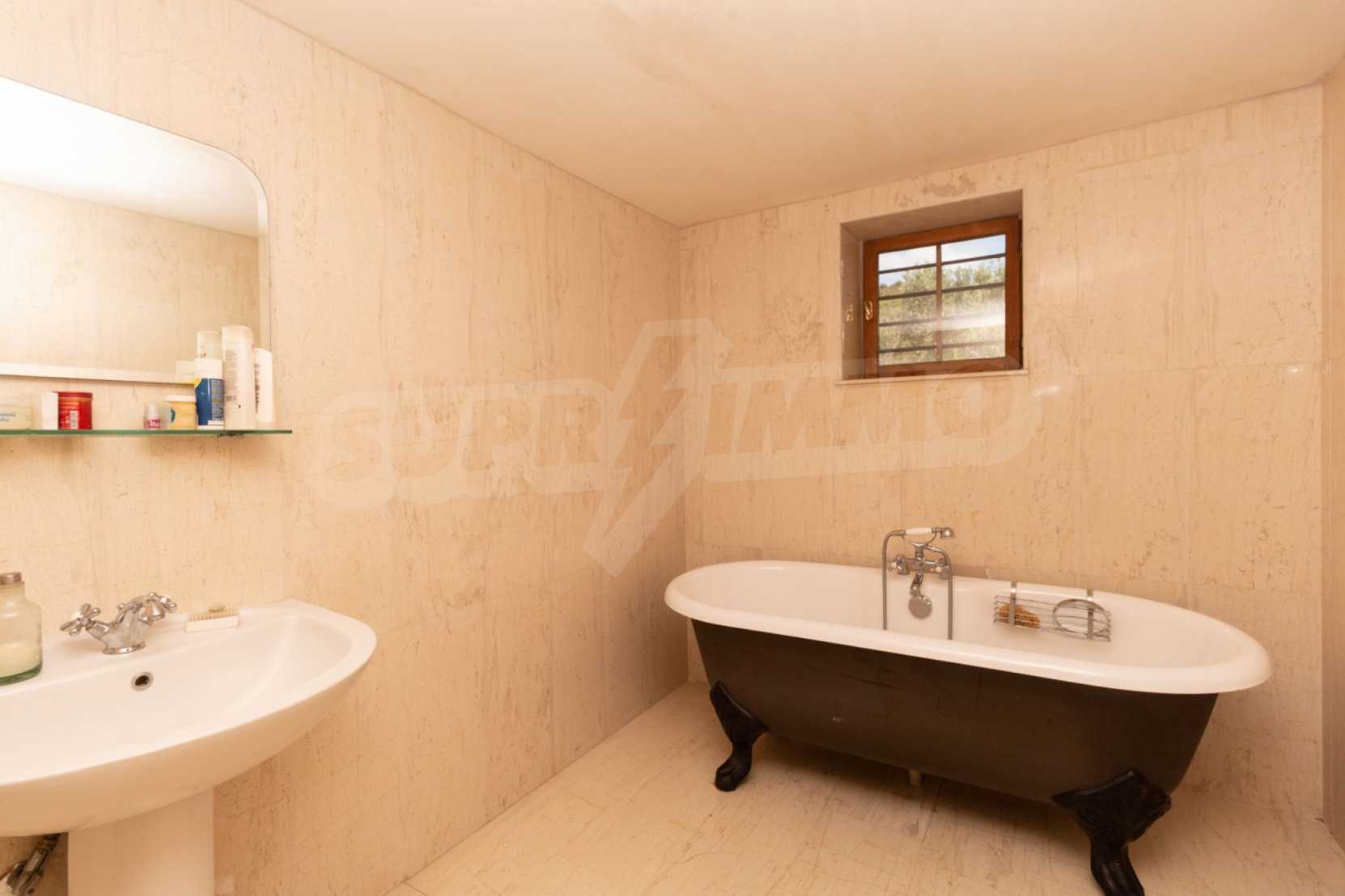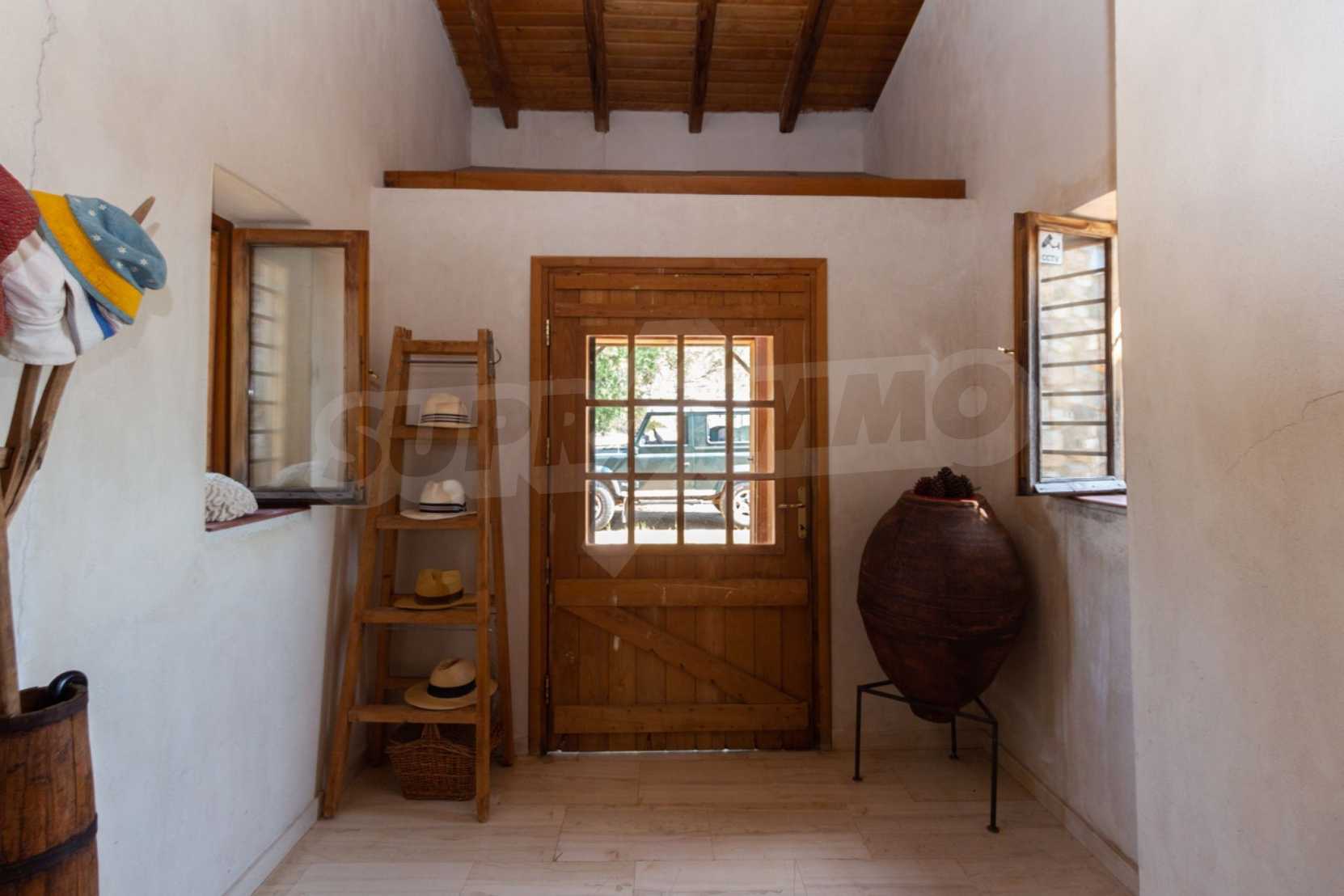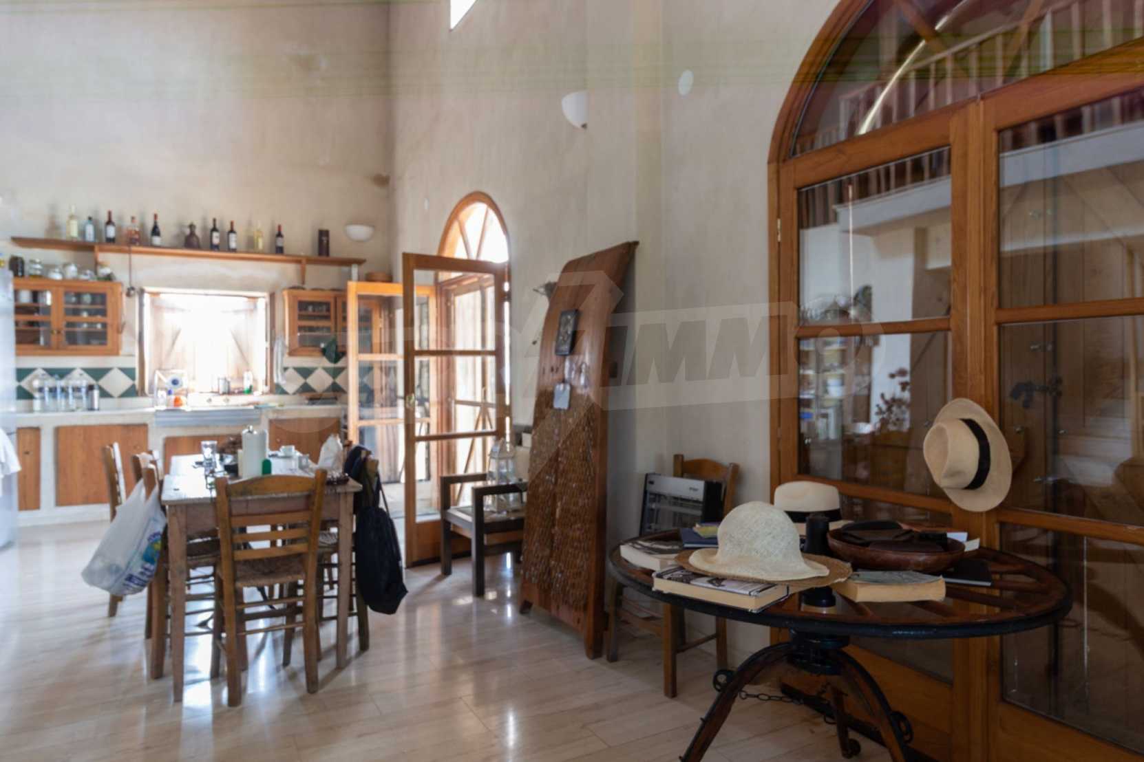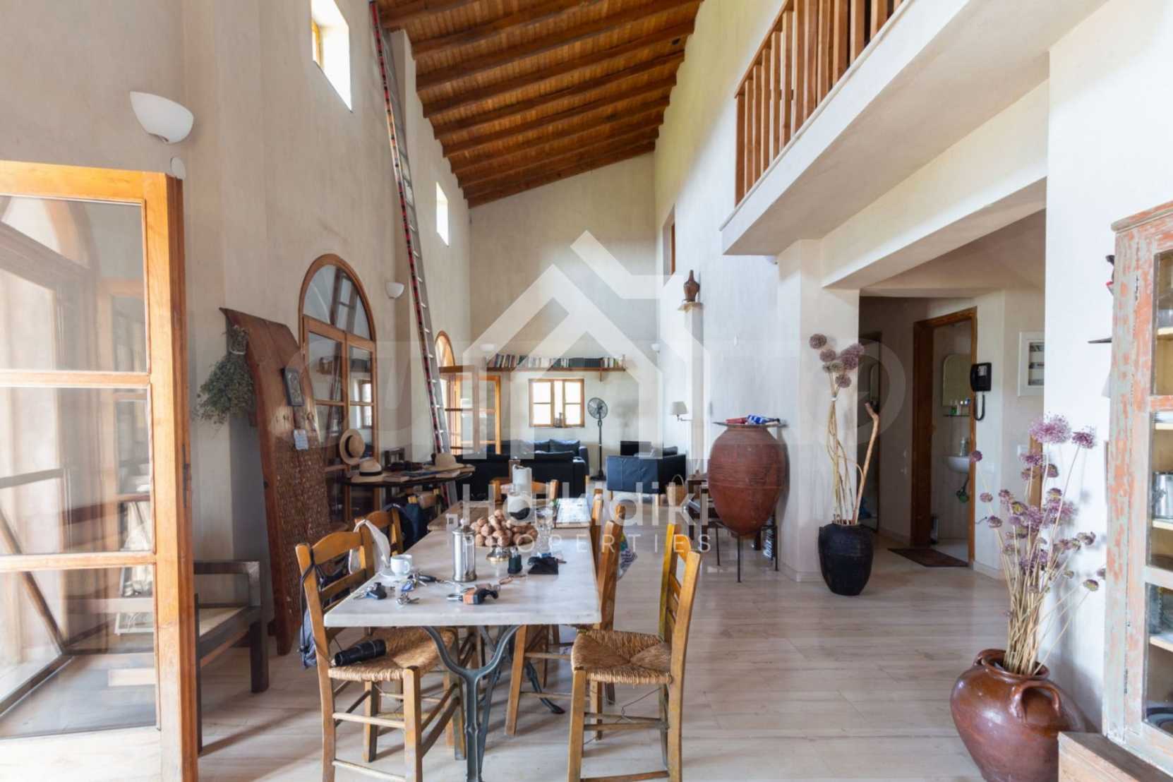 Stone-built detached house,302 m²,in Sithonia,Halkidiki with a western orientation and with unobstructed permanent sea view.The property is 2 km. away from the beach,3 km. away from the center of the village and is surrounded by 13,5 acres plot.The house is split in three levels, consisted of a living room connected with the kitchen and the dining room,two bedrooms and two bathrooms on the ground floor,two bedrooms and a bathroom on the first floor and a storage room with boiler room on the basement.The property,also,has big balconies and alarm system.The house is fully equipped and furnished.