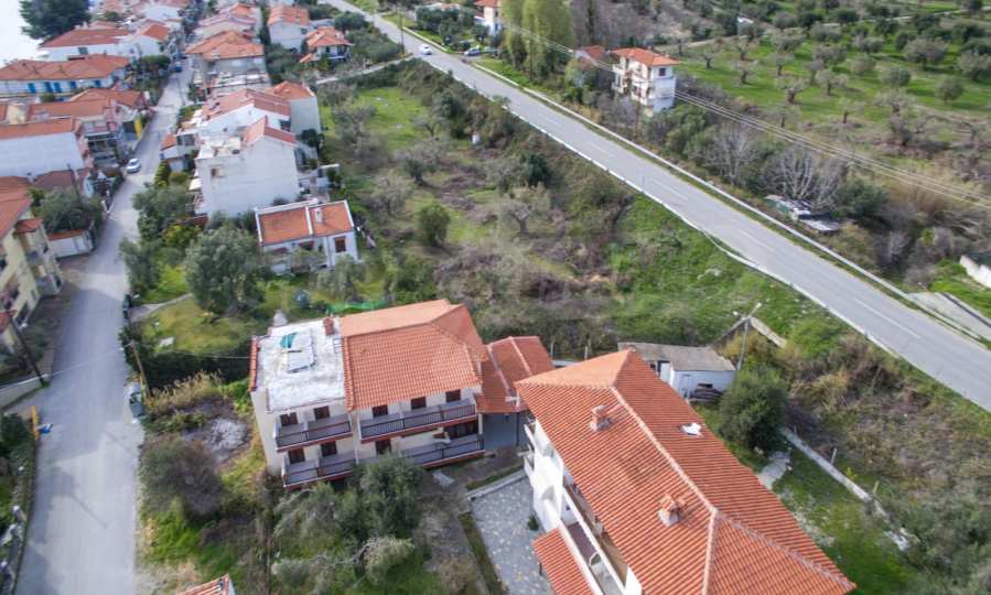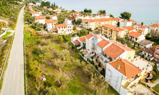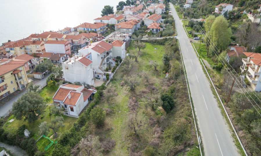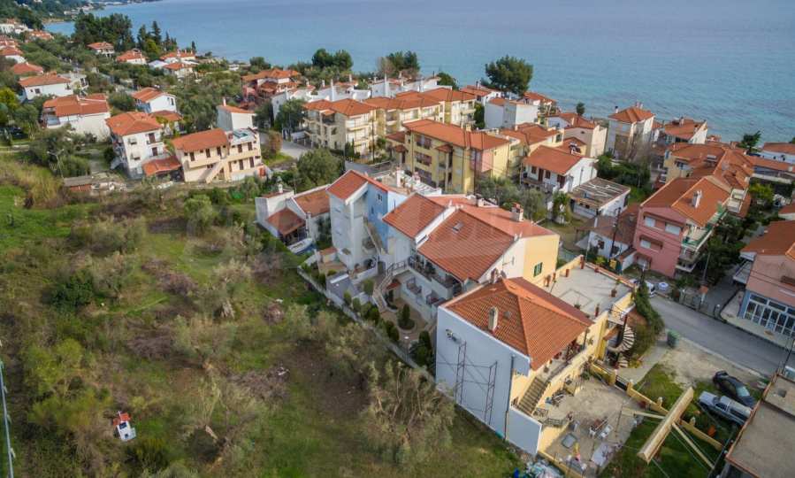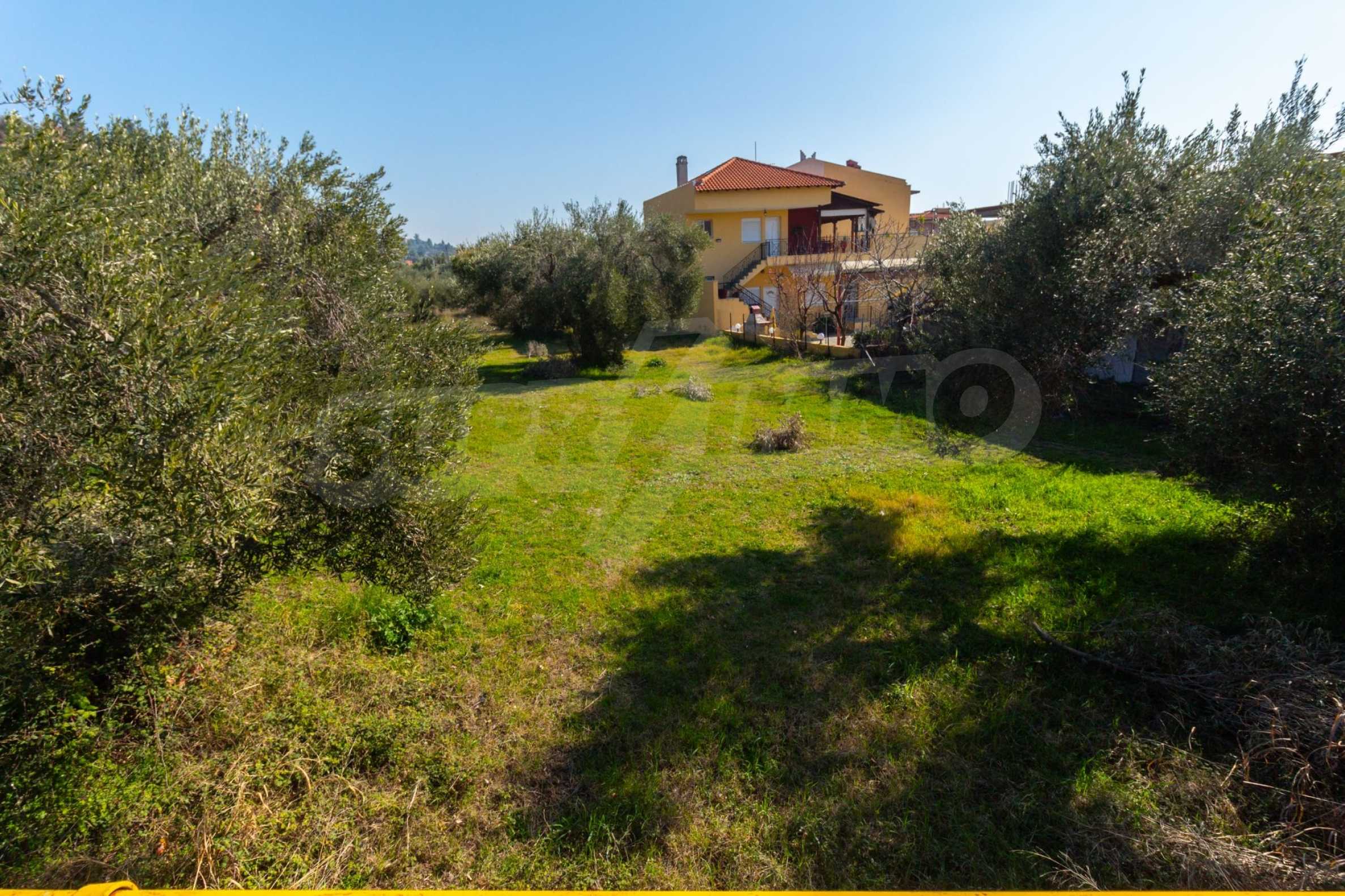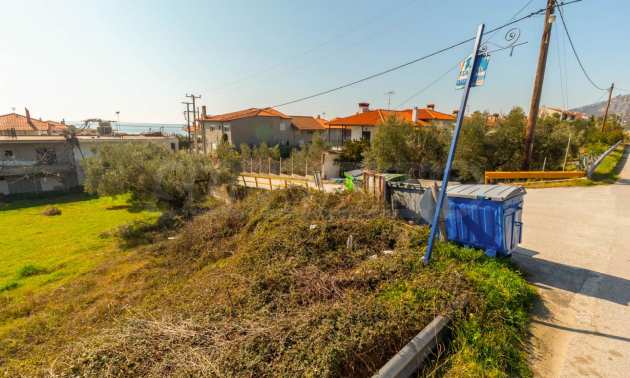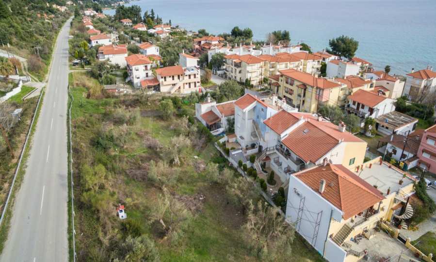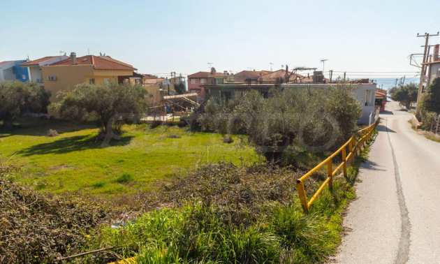 Corner plot, 880 m², in Kassandra,Halkidiki with unobstructed permanent view and with an eastern orientation.The fenced property is only 130 m. away from the beach and faces the main road.The plot,which has olive trees, is complete and buildable(400 m² can be built).
