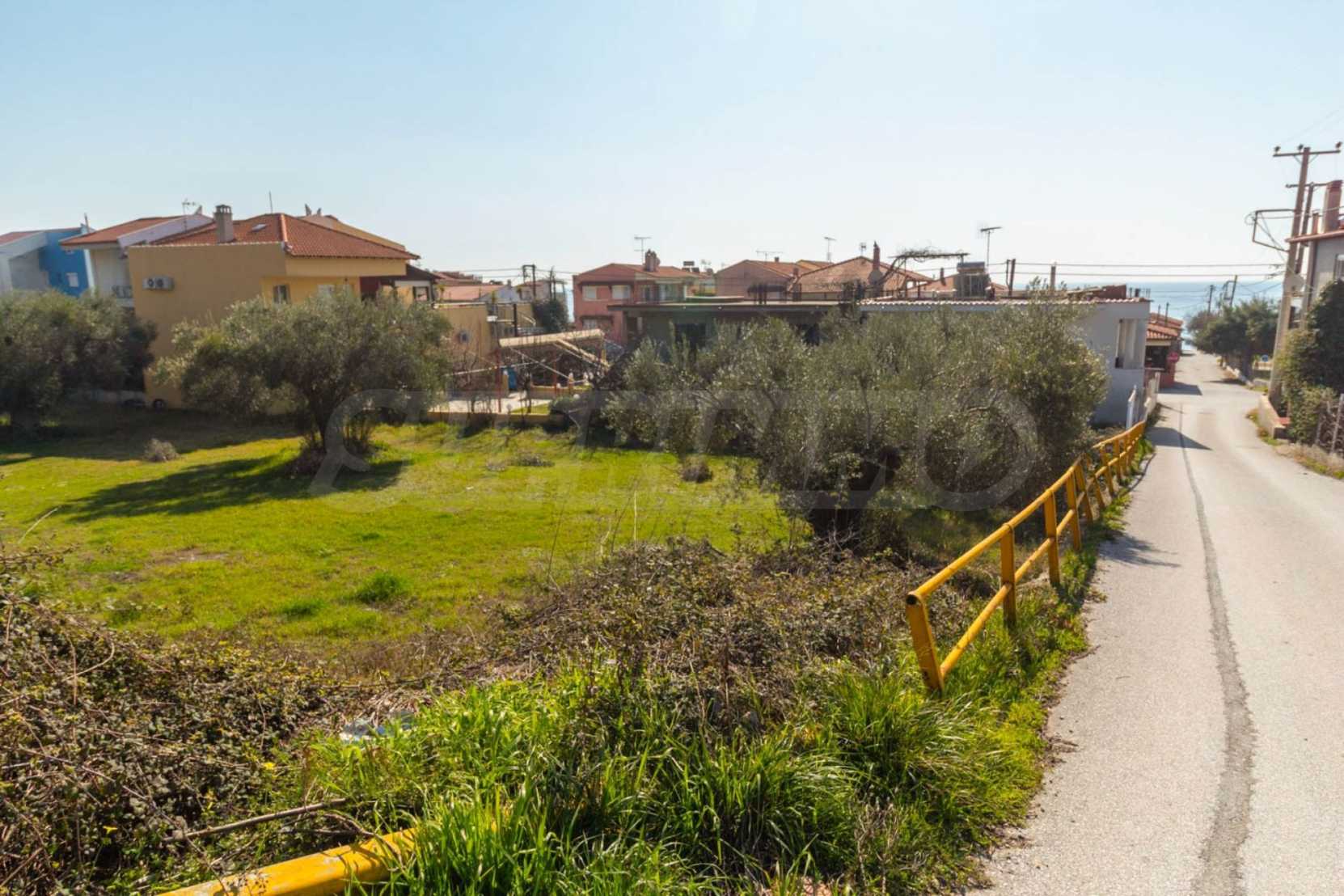 Corner plot, 880 m², in Kassandra,Halkidiki with unobstructed permanent view and with an eastern orientation.The fenced property is only 130 m. away from the beach and faces the main road.The plot,which has olive trees, is complete and buildable(400 m² can be built).