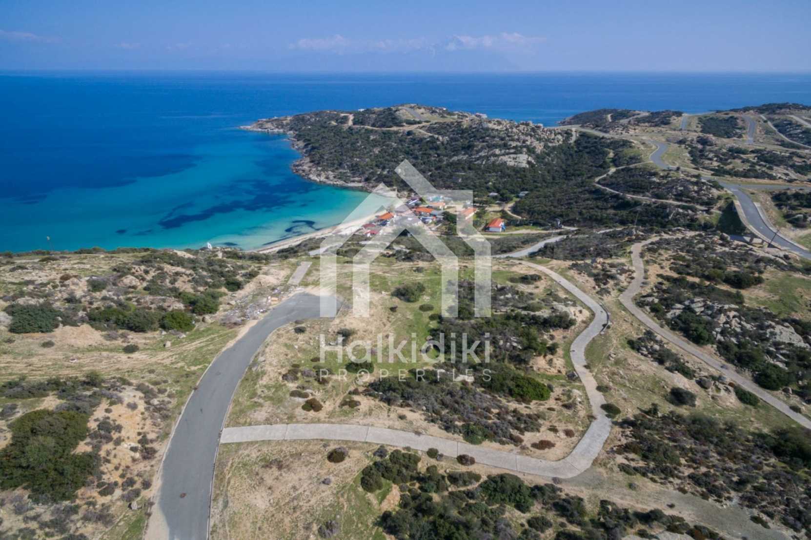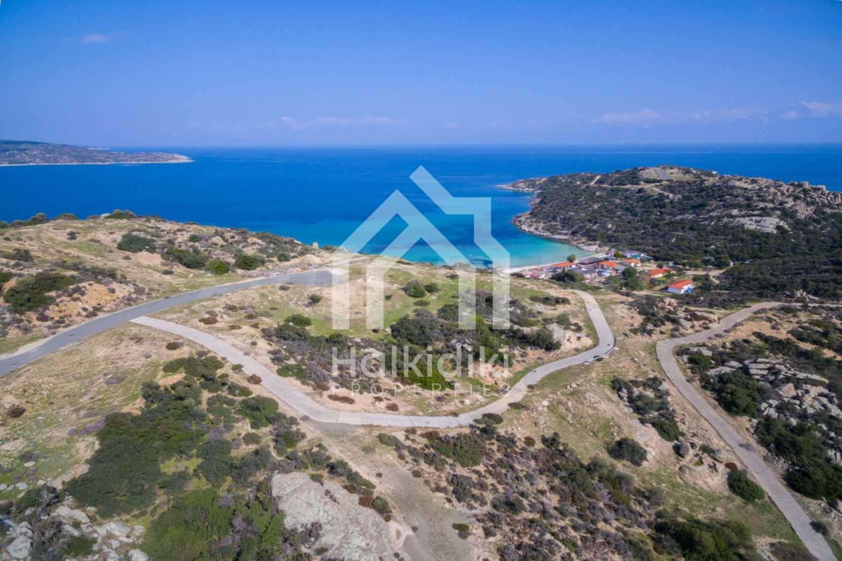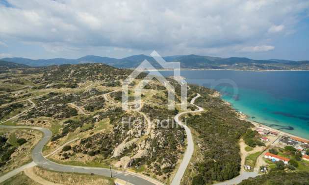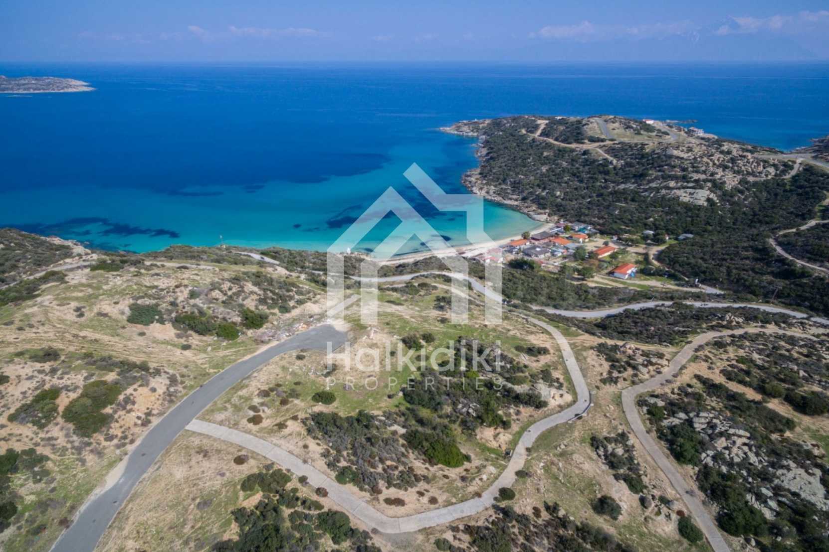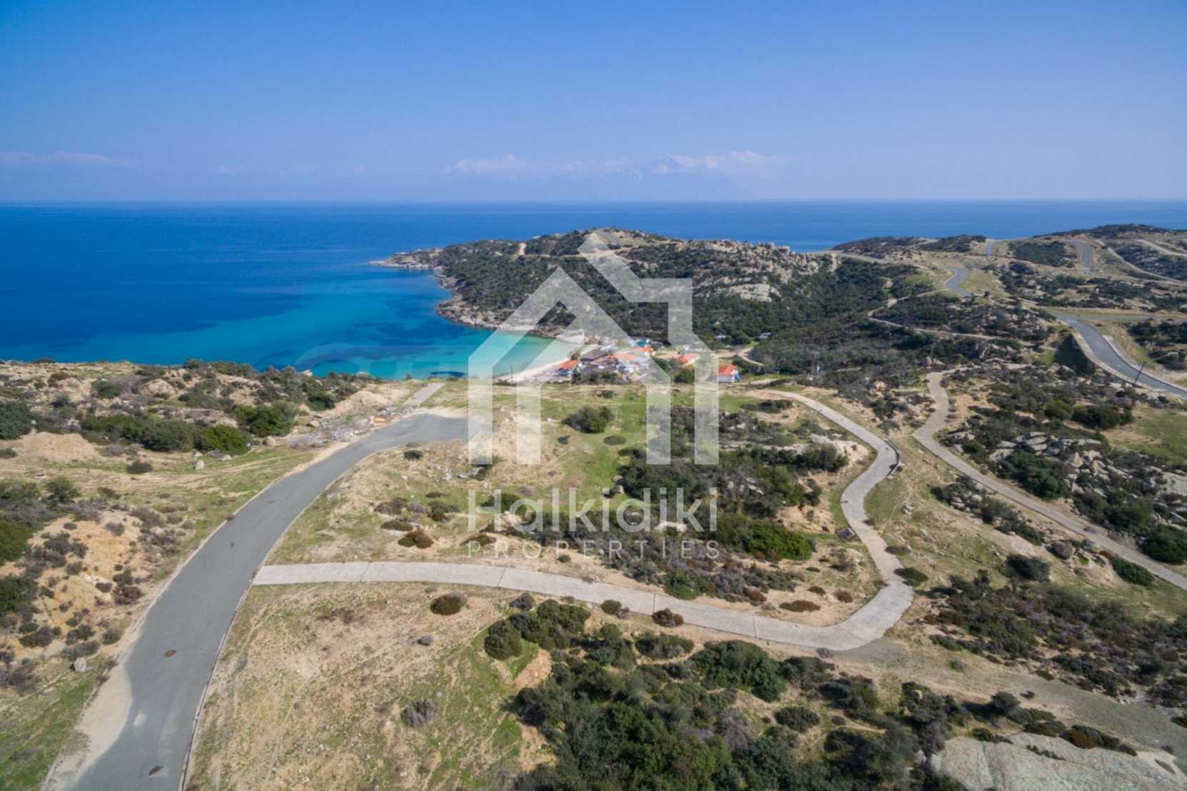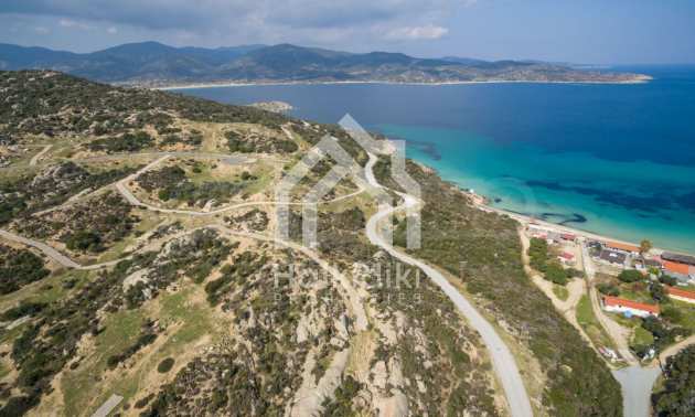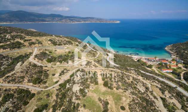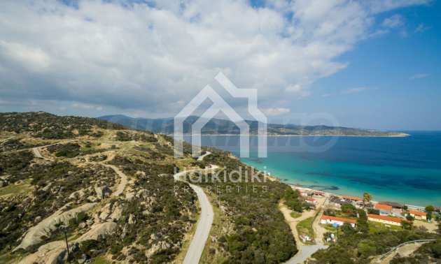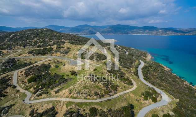 Corner,slanted plot,500 m², in Sithonia,Halkidiki with unobstructed permanent view and with an eastern orientation.The property is only 100m. away from a beautiful beach and faces the main road.The plot is complete and buildable(120m² can be built).The property is perfect for the construction of a villa.