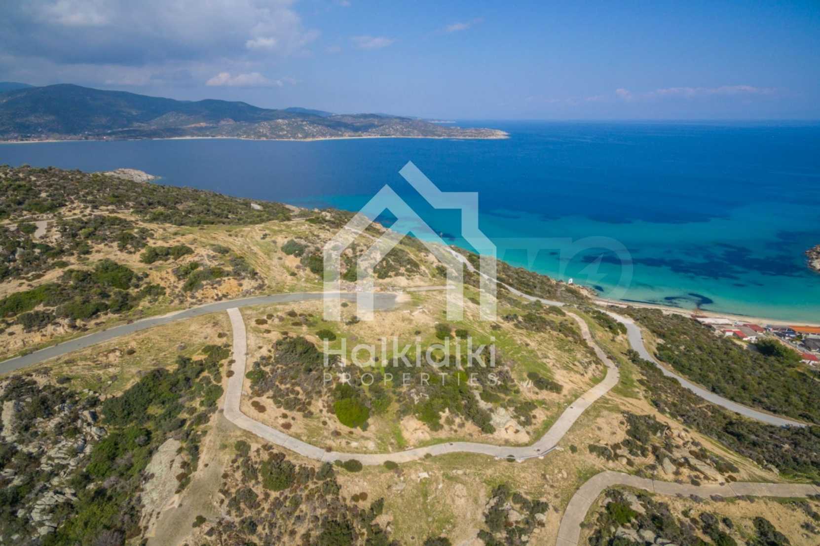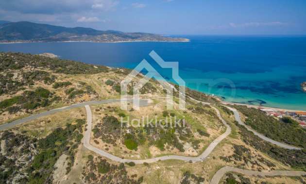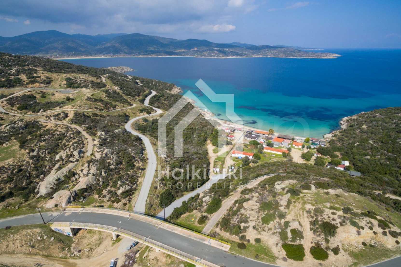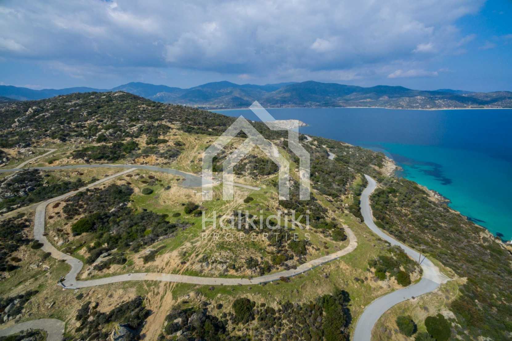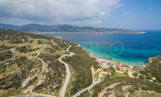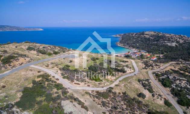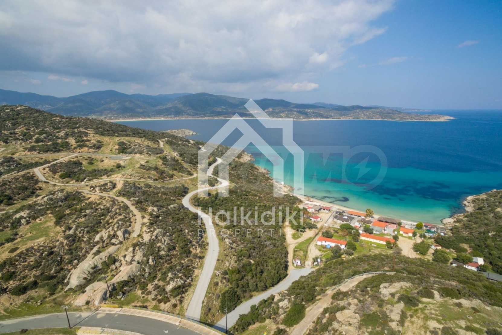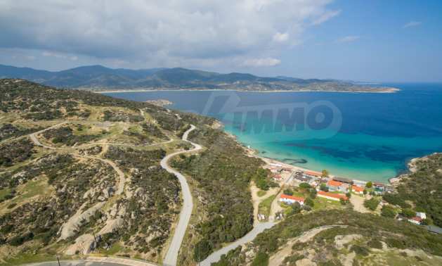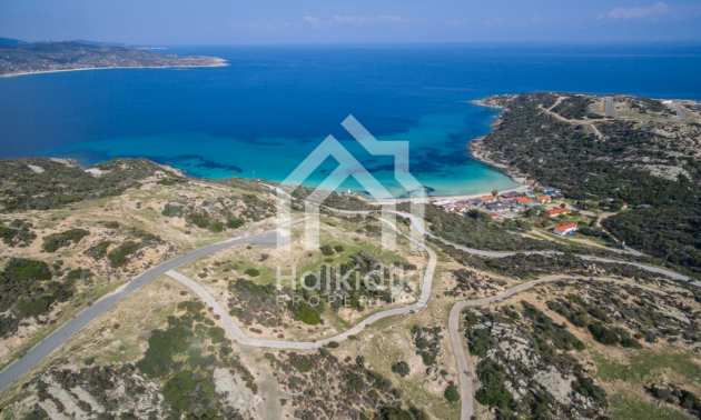 Corner,slanted plot,500 m², in Sithonia,Halkidiki with unobstructed permanent view and with an eastern orientation.The property is only 100m. away from a beautiful beach and faces the main road.The plot is complete and buildable(120m² can be built).The property is perfect for the construction of a villa.