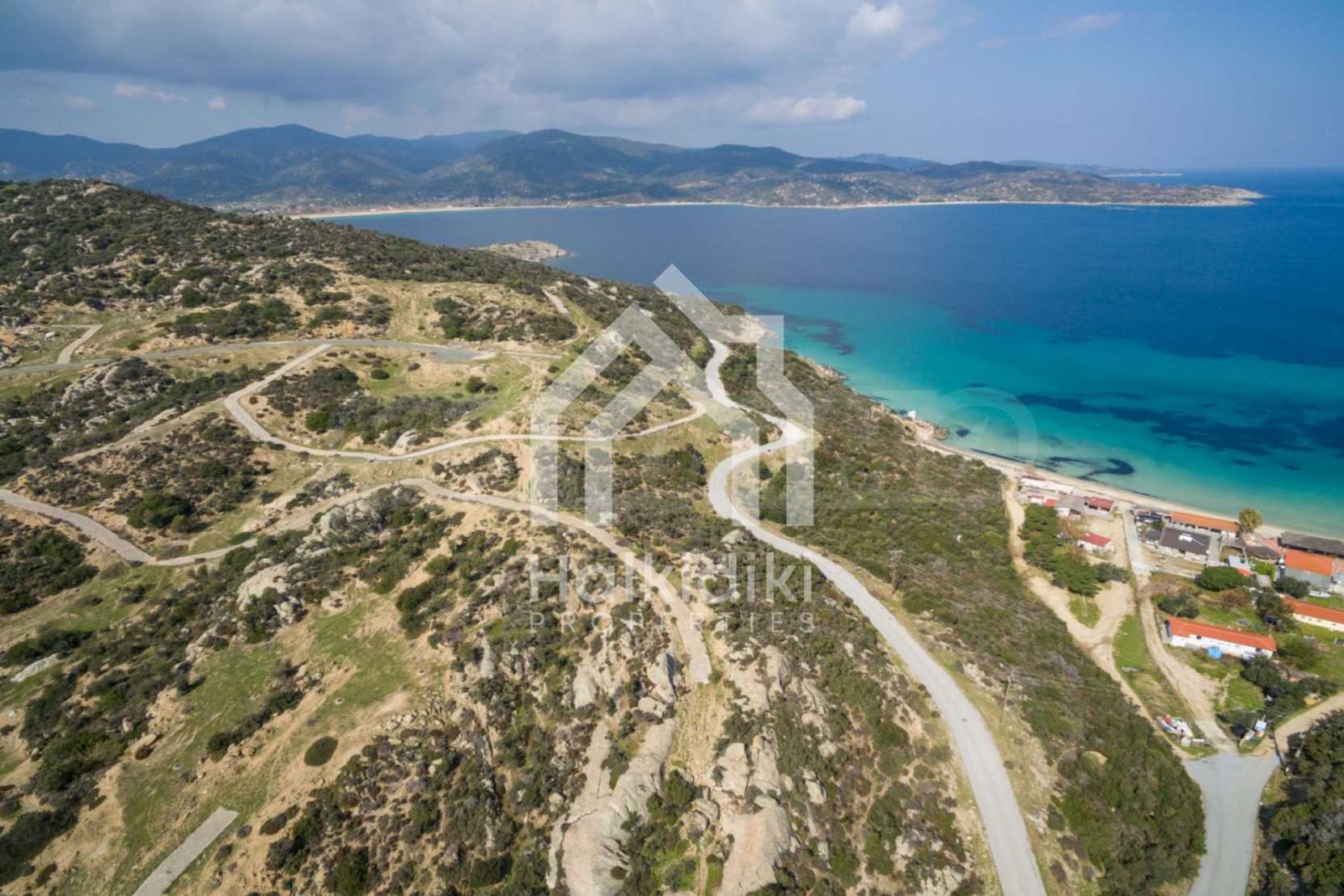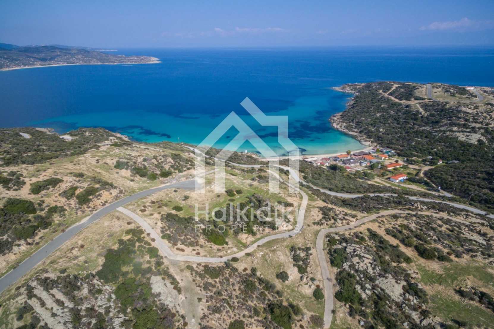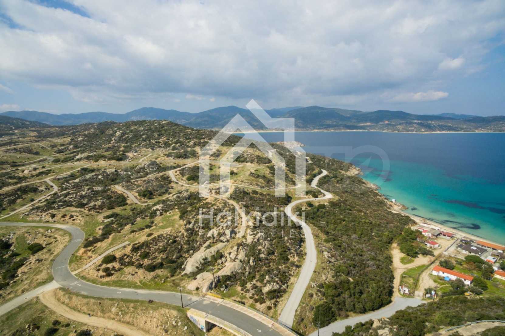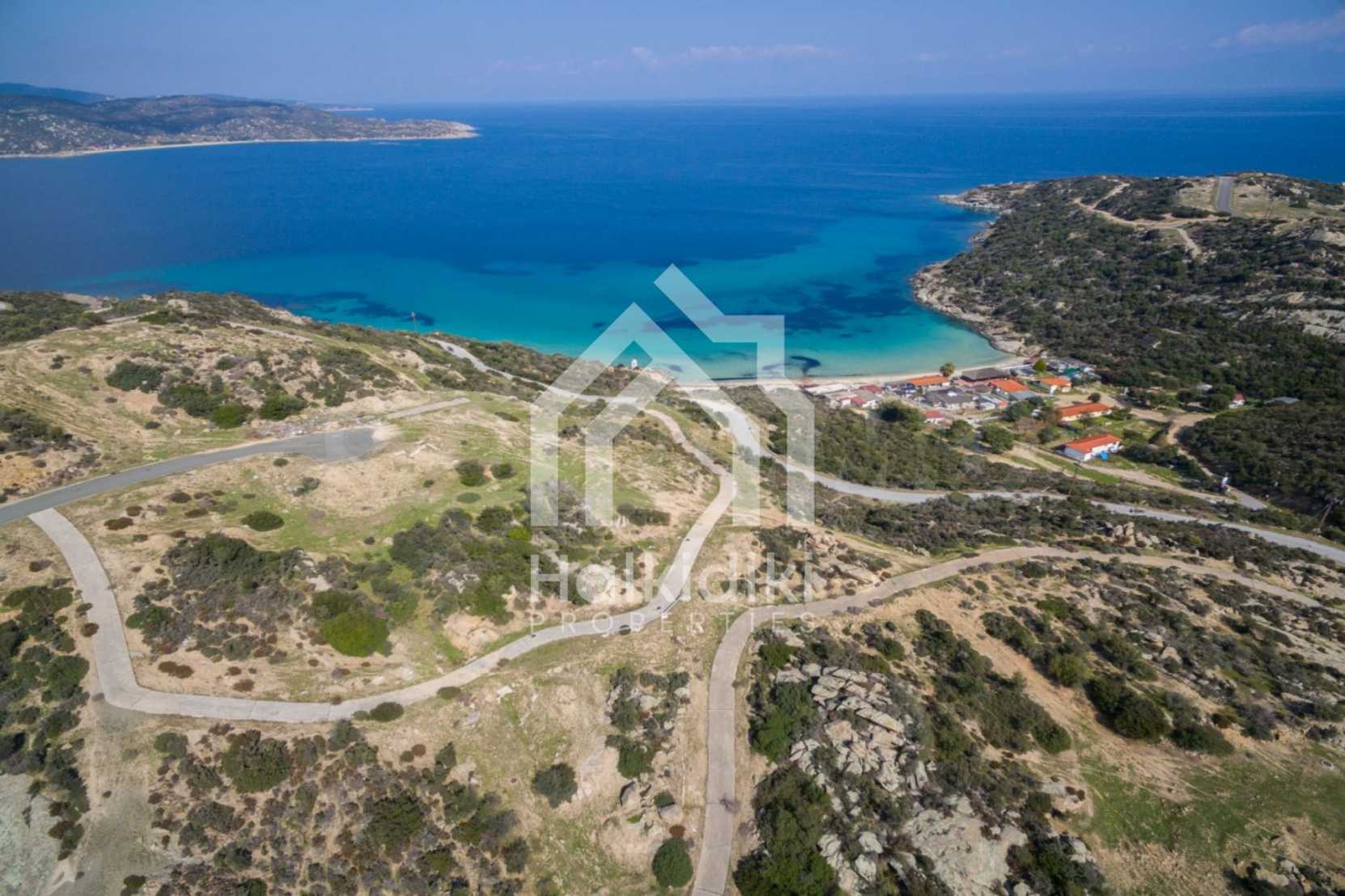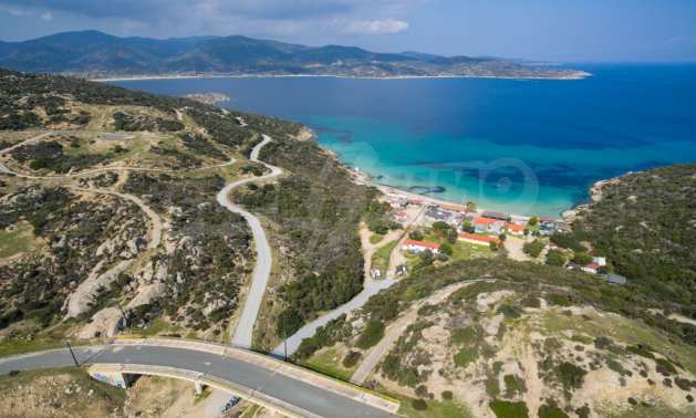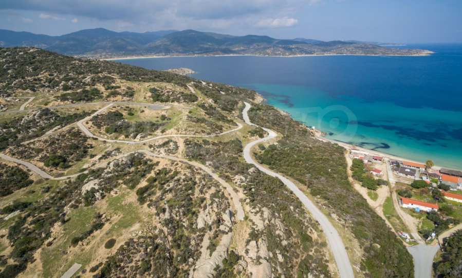 Corner,slanted plot,500 m², in Sithonia,Halkidiki with unobstructed permanent view and with an eastern orientation.The property is only 100m. away from a beautiful beach and faces the main road.The plot is complete and buildable(120m² can be built).The property is perfect for the construction of a villa.