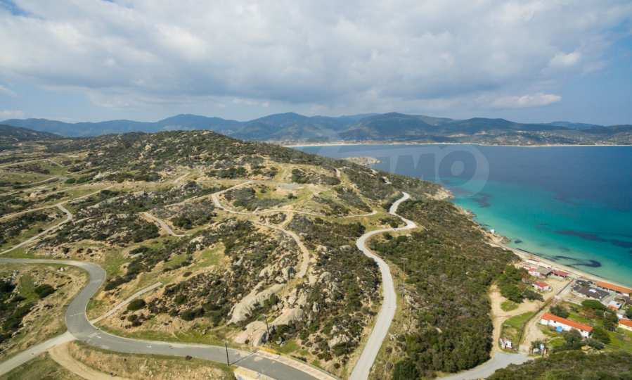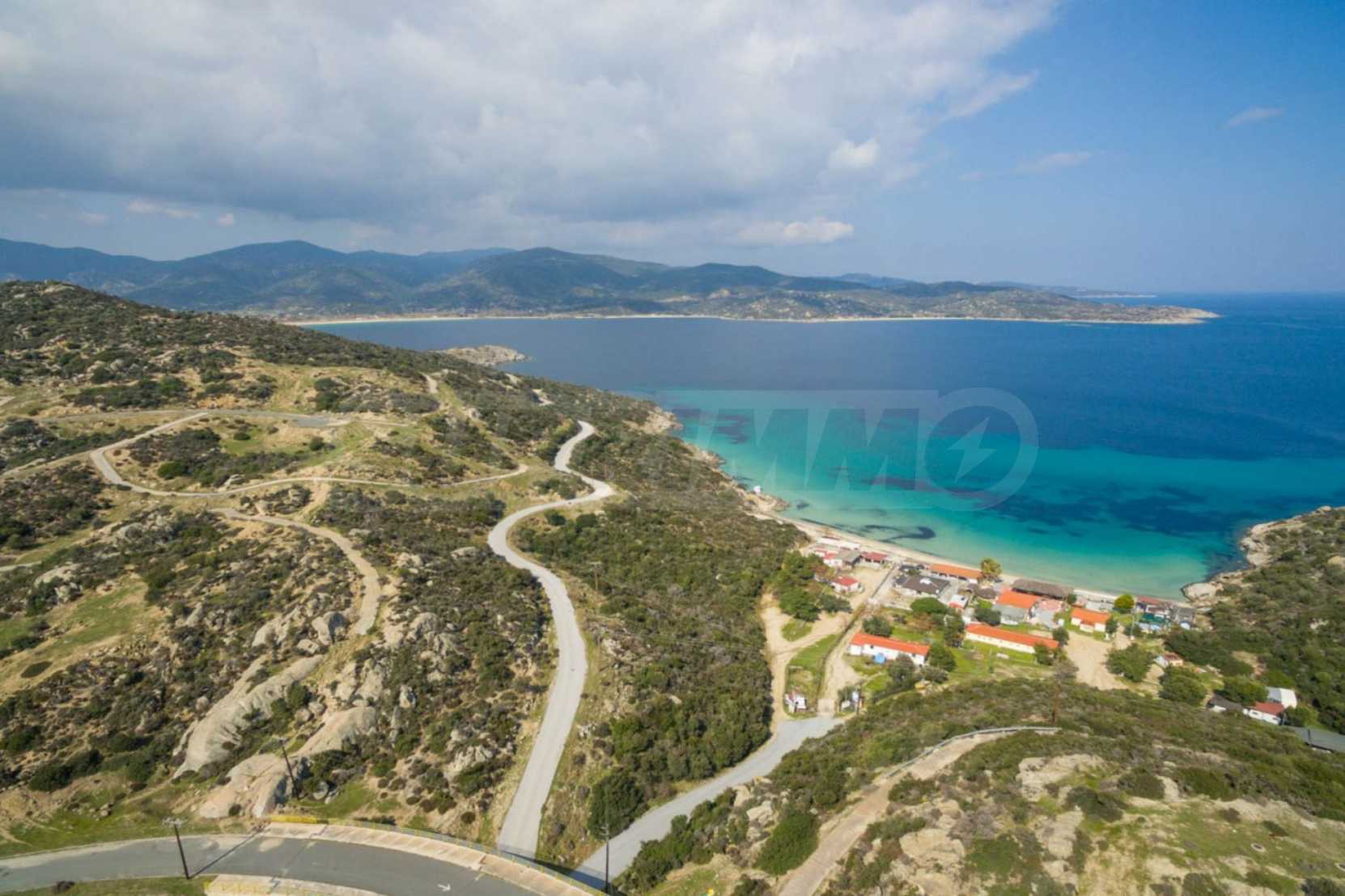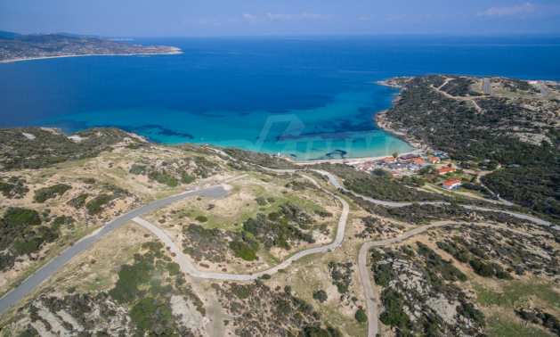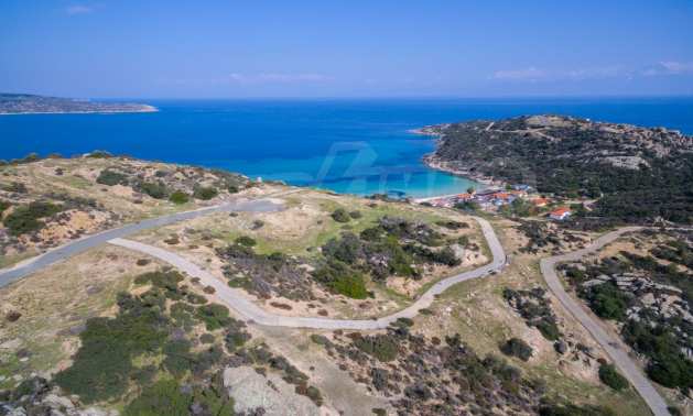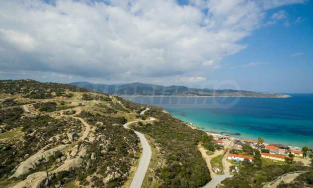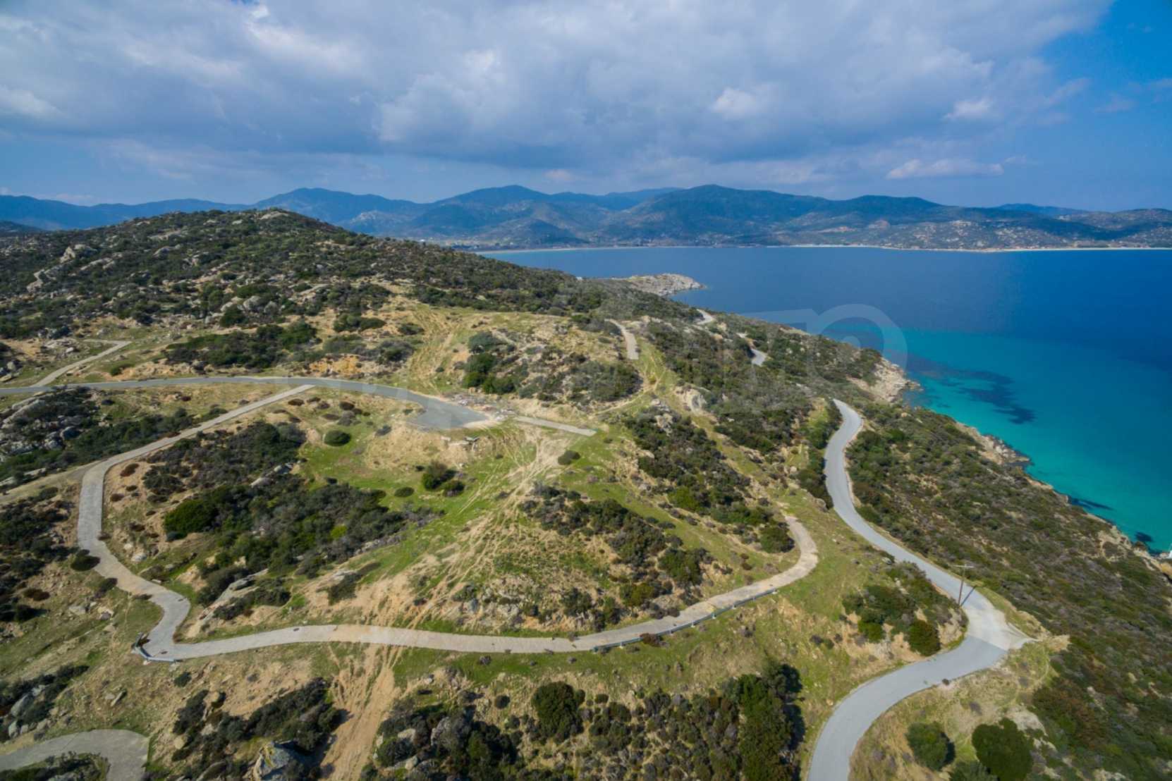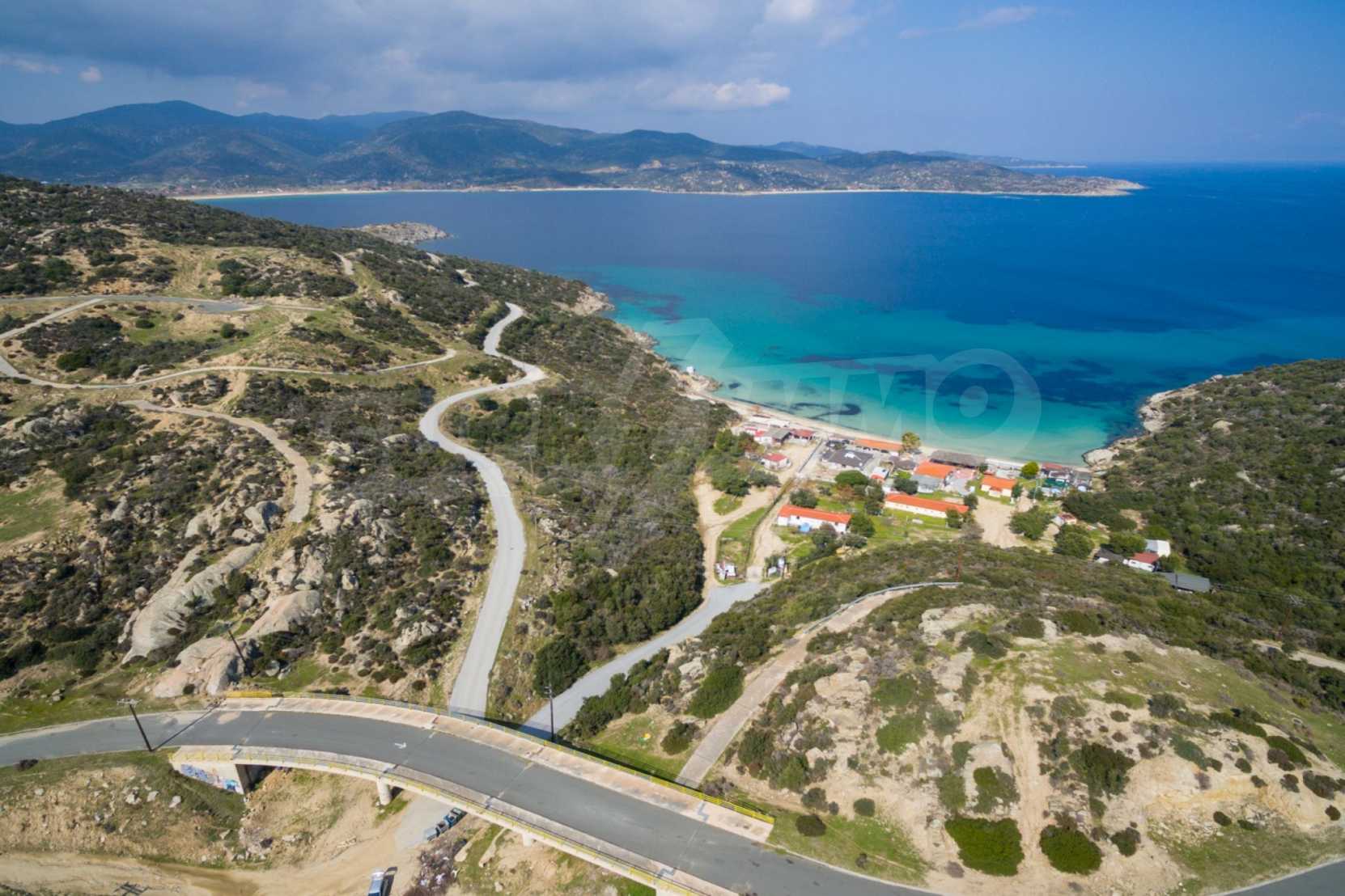Corner,slanted plot,500 m², in Sithonia,Halkidiki with unobstructed permanent view and with an eastern orientation.The property is only 100m. away from a beautiful beach and faces the main road.The plot is complete and buildable(120m² can be built).The property is perfect for the construction of a villa.