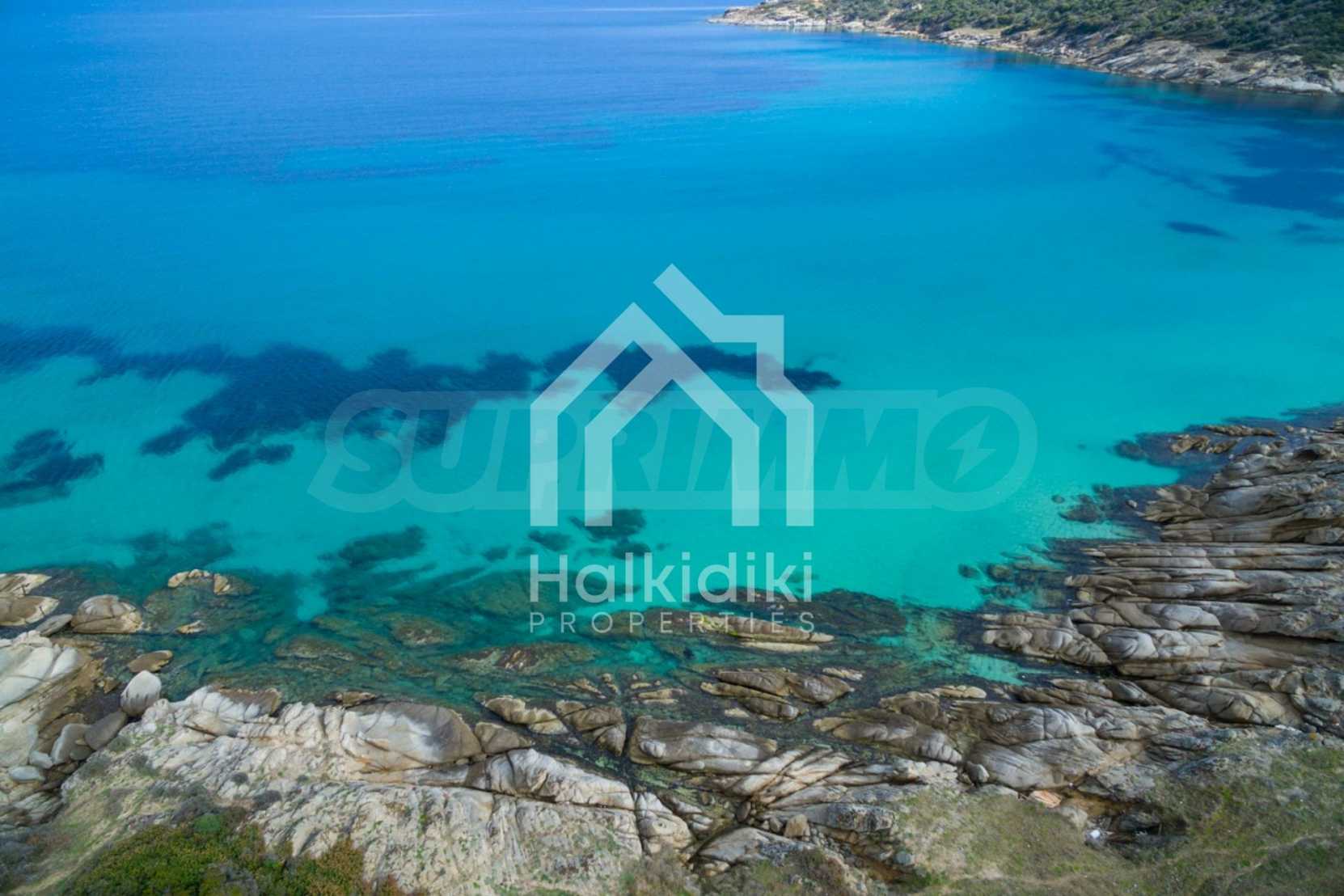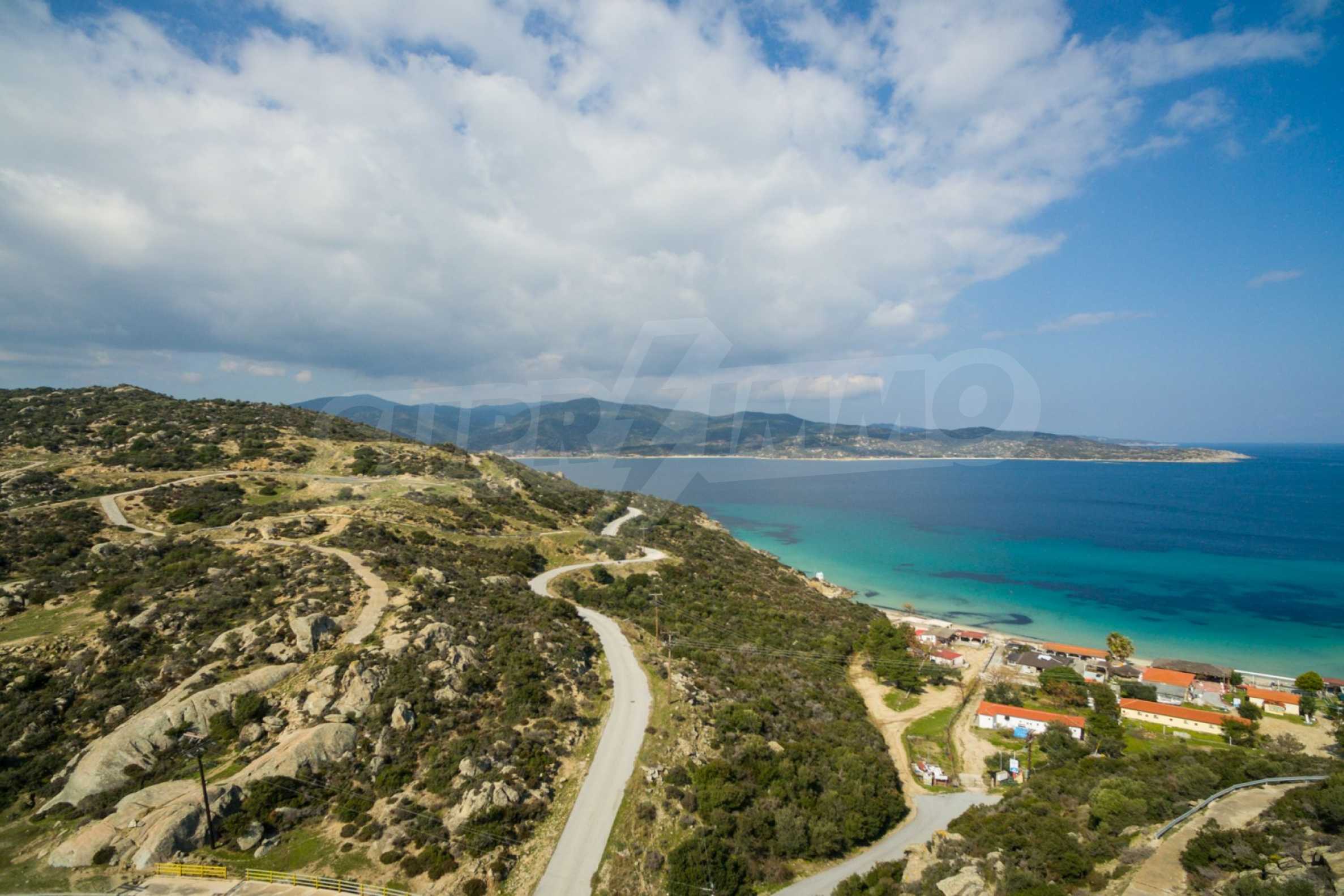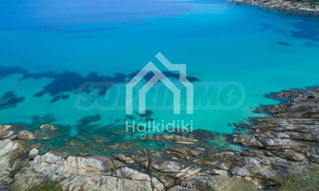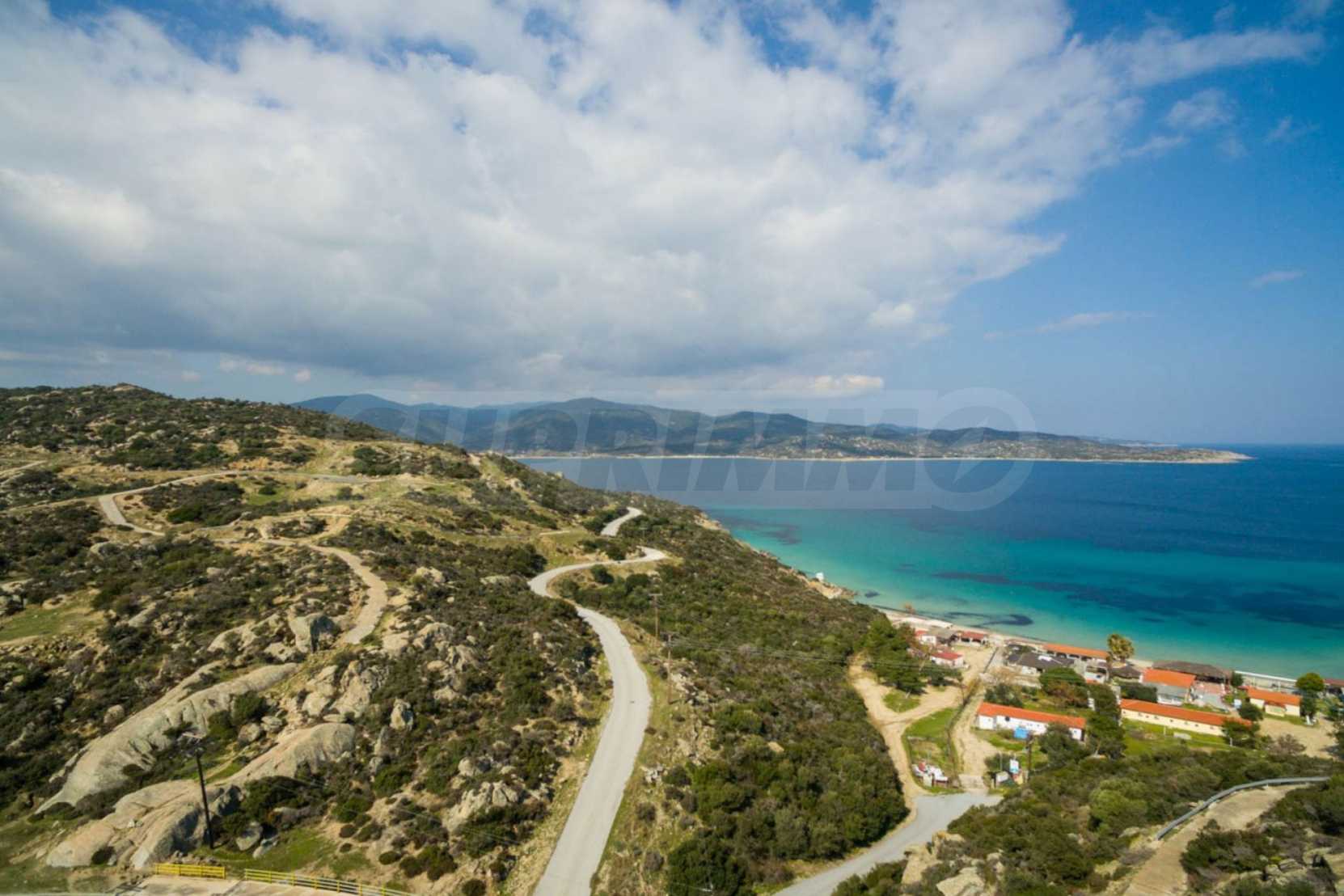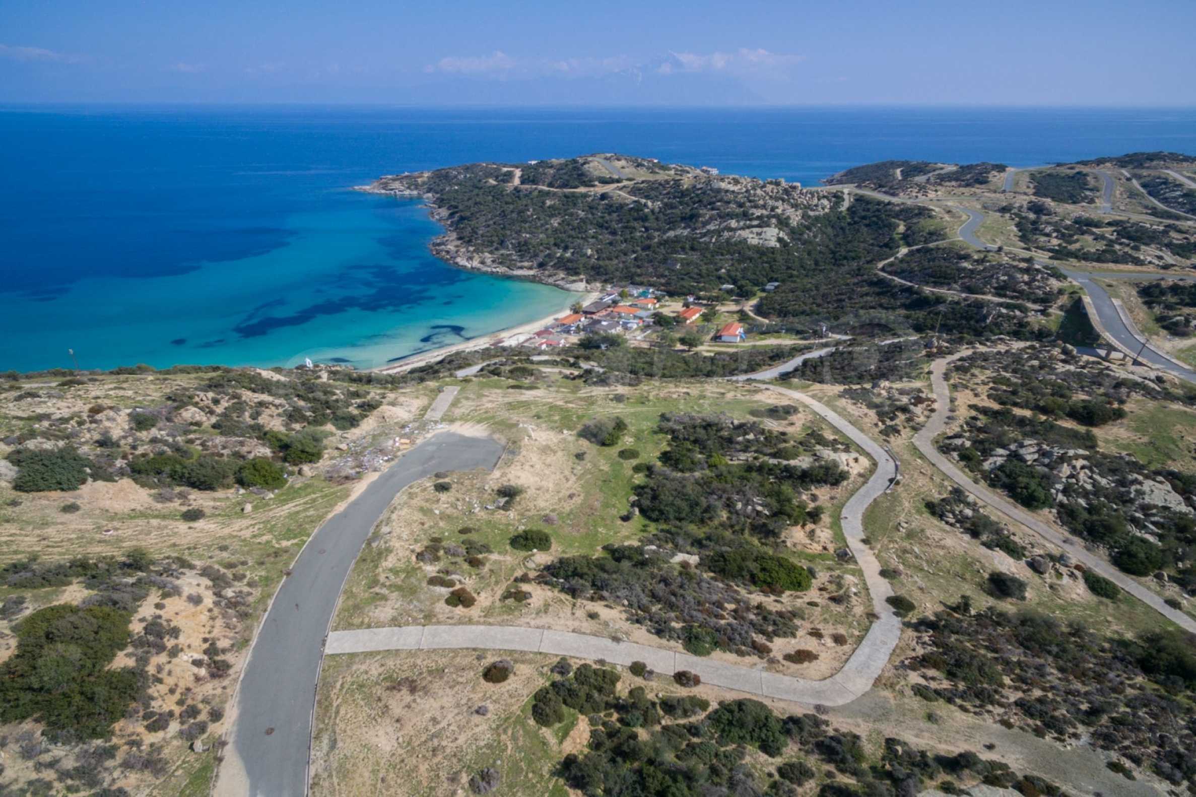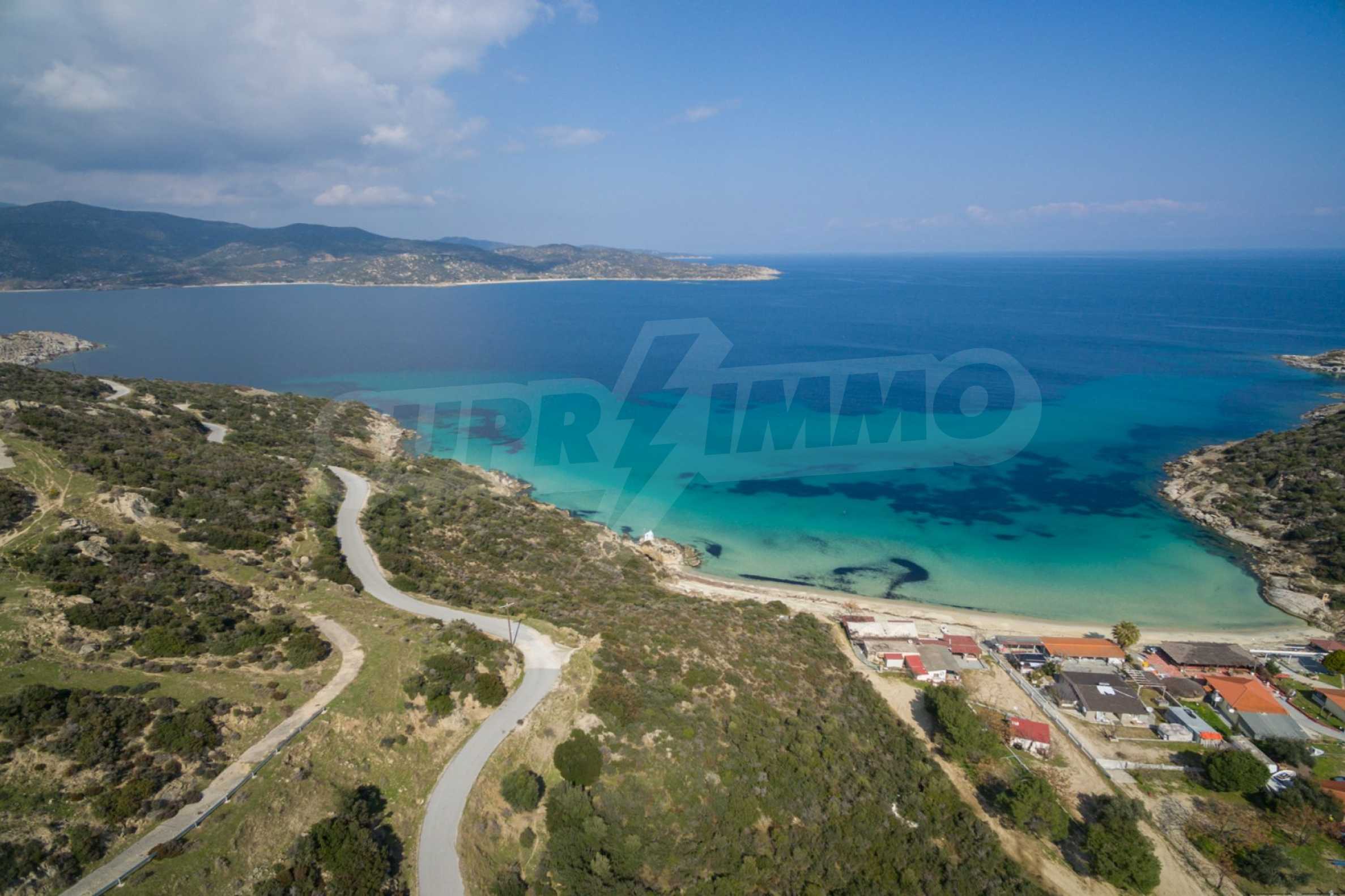 Corner,slanted plot,500 m², in Sithonia,Halkidiki with unobstructed permanent view and with an eastern orientation.The property is only 100m. away from a beautiful beach and faces the main road.The plot is complete and buildable(120m² can be built).The property is perfect for the construction of a villa.