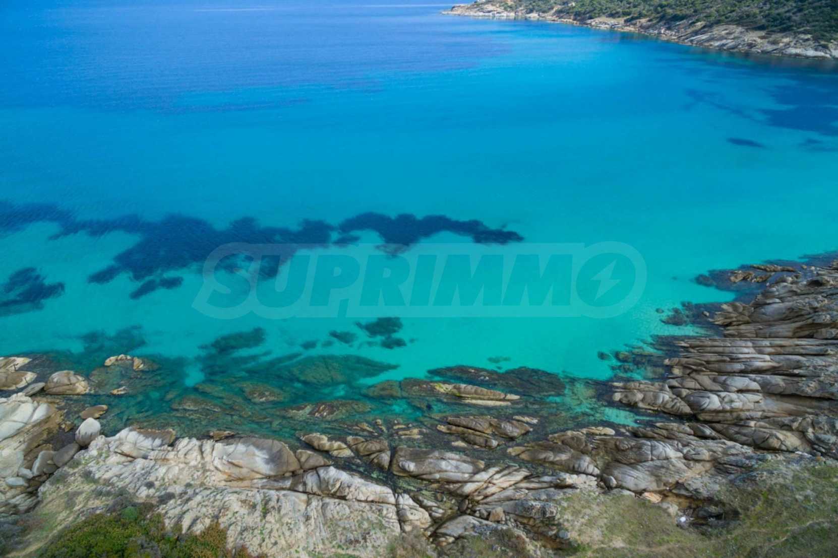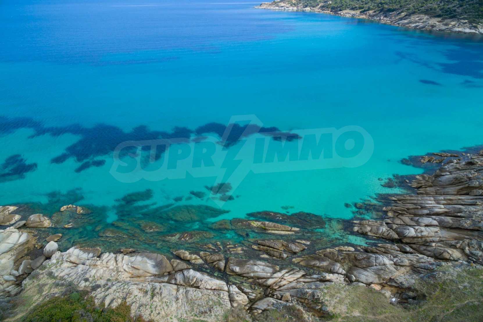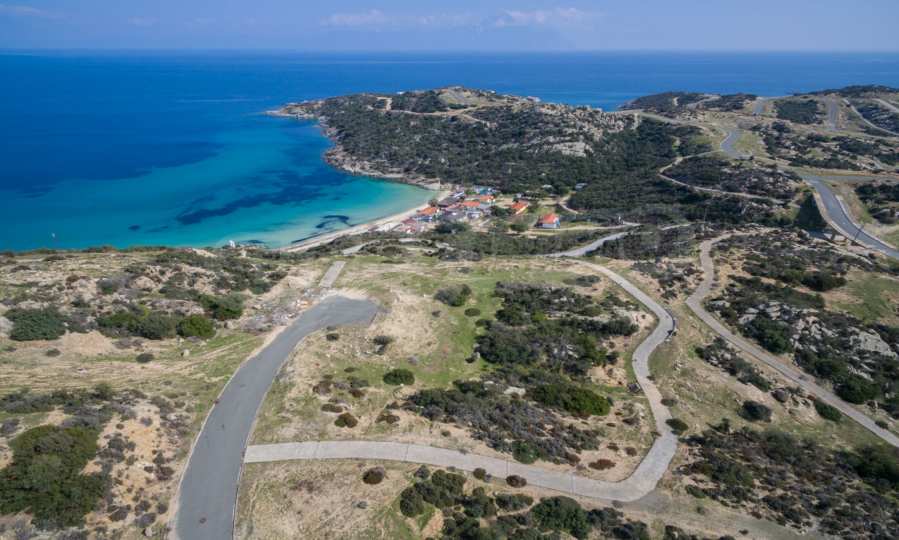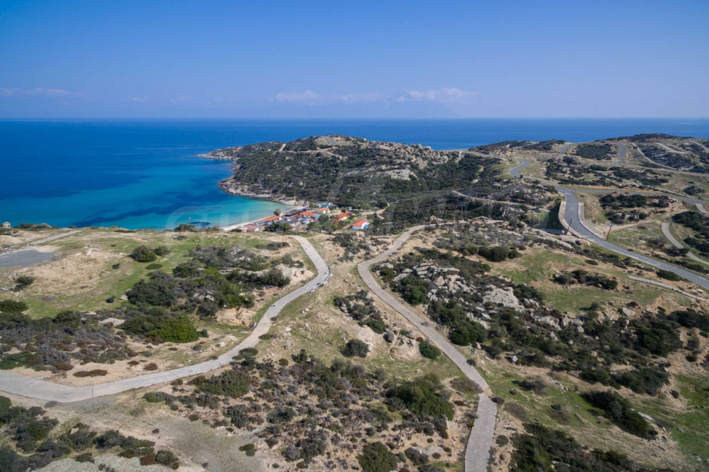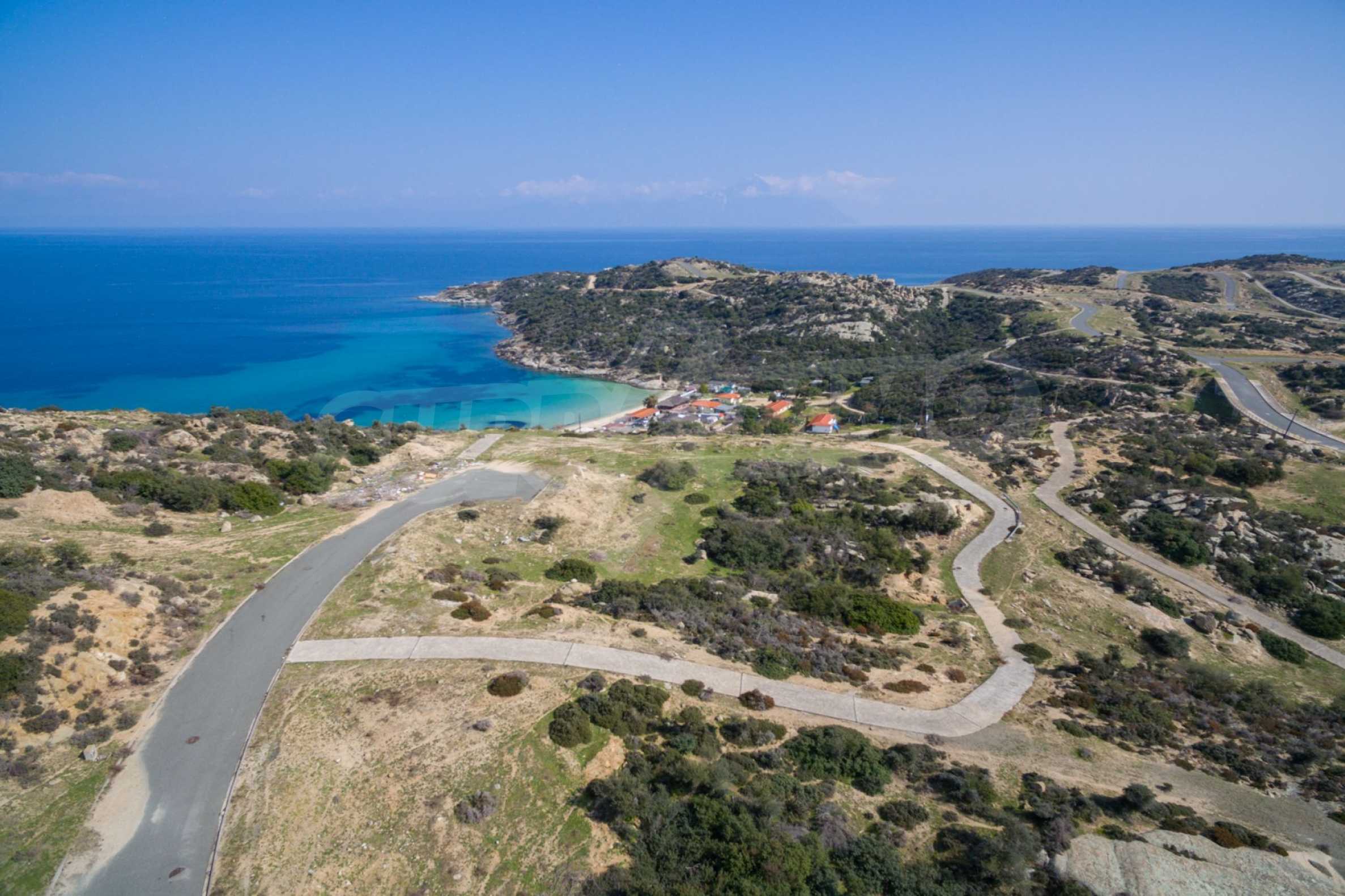 Corner,slanted plot,500 m², in Sithonia,Halkidiki with unobstructed permanent view and with an eastern orientation.The property is only 100m. away from a beautiful beach and faces the main road.The plot is complete and buildable(120m² can be built).The property is perfect for the construction of a villa.