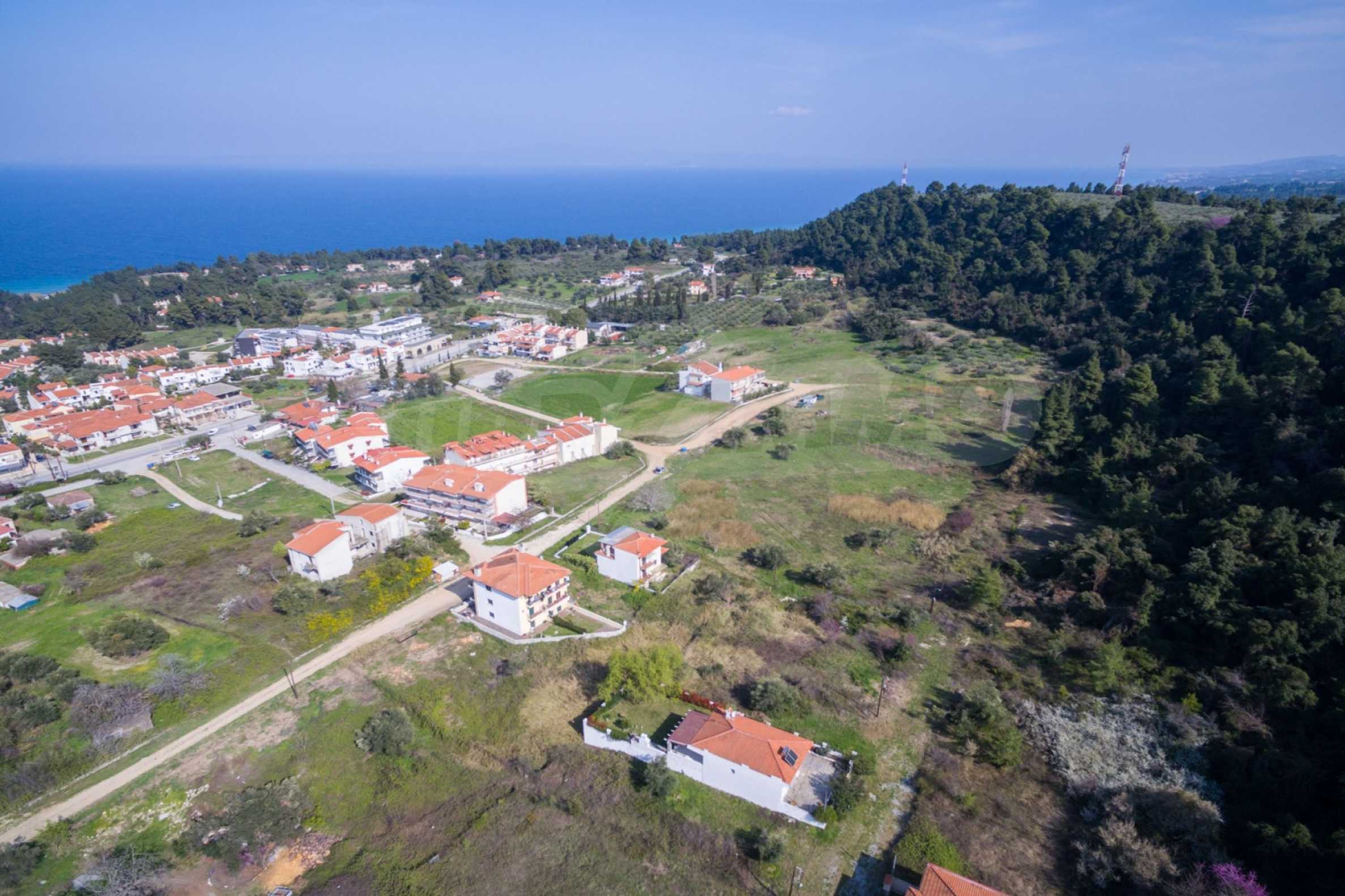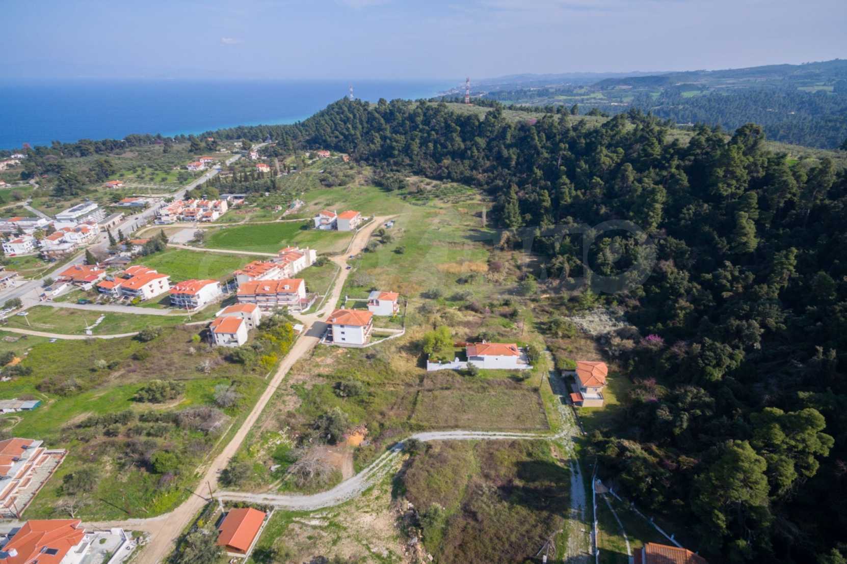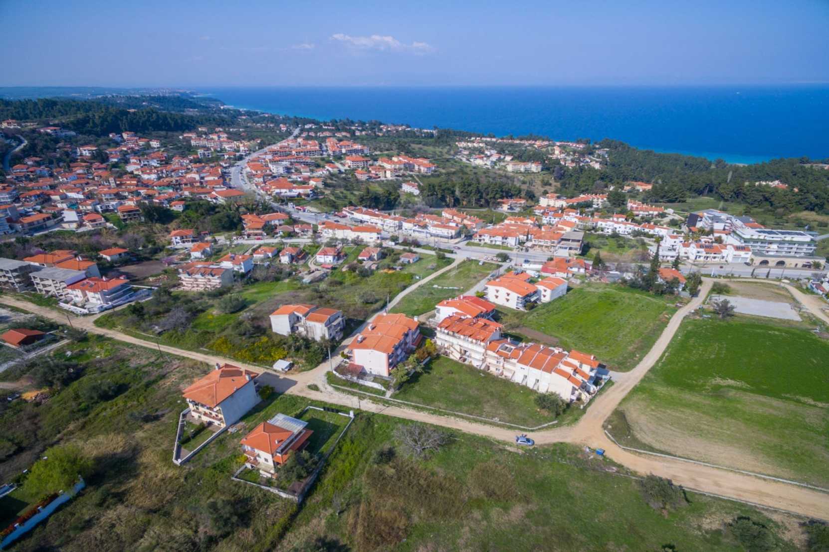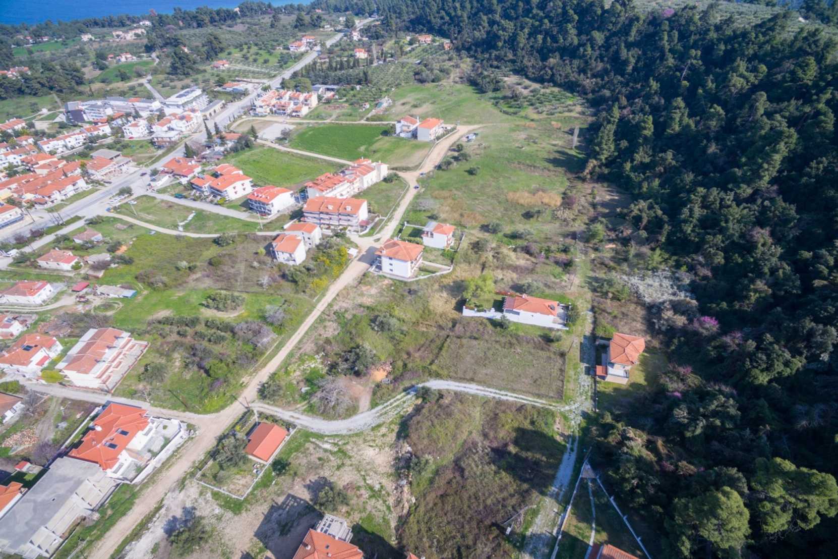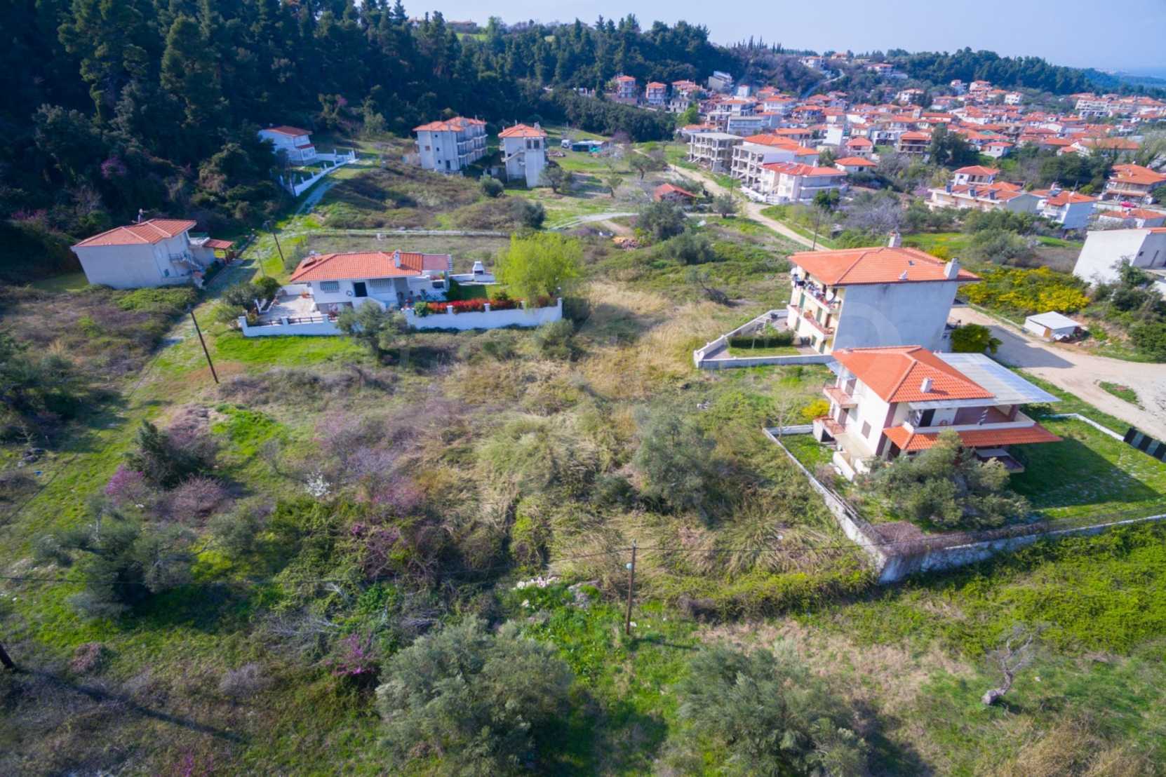 Flat plot,398 m², in Kassandra,Halkidiki with unobstructed permanent view and with an eastern orientation.The property is 1,6 km. away from the beach and 600 m. away from the center of the village.The plot is complete,buildable and its building factor is 0.6(240m² can be built).The property is perfect for the construction of a villa or detached houses.