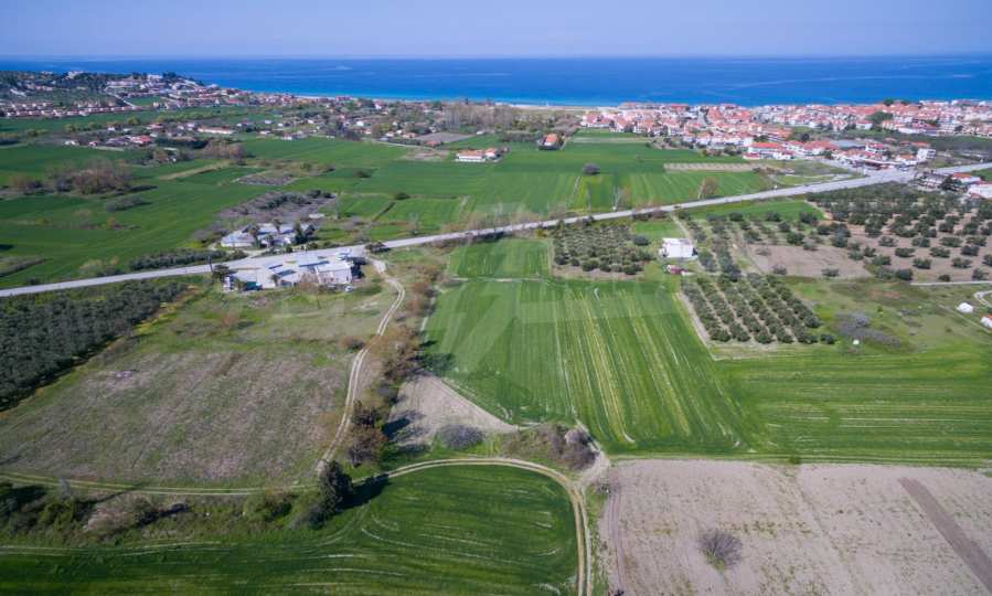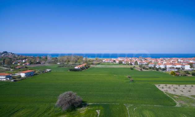 Flat field, 13.594 m², in Kassandra,Thessaloniki with unobstructed permanent view and with a western orientation.The property is 900 m. away from the beach and the center of the village.The field is complete,buildable and faces the main road.The property is perfect for the construction of detached houses and professional usage.
