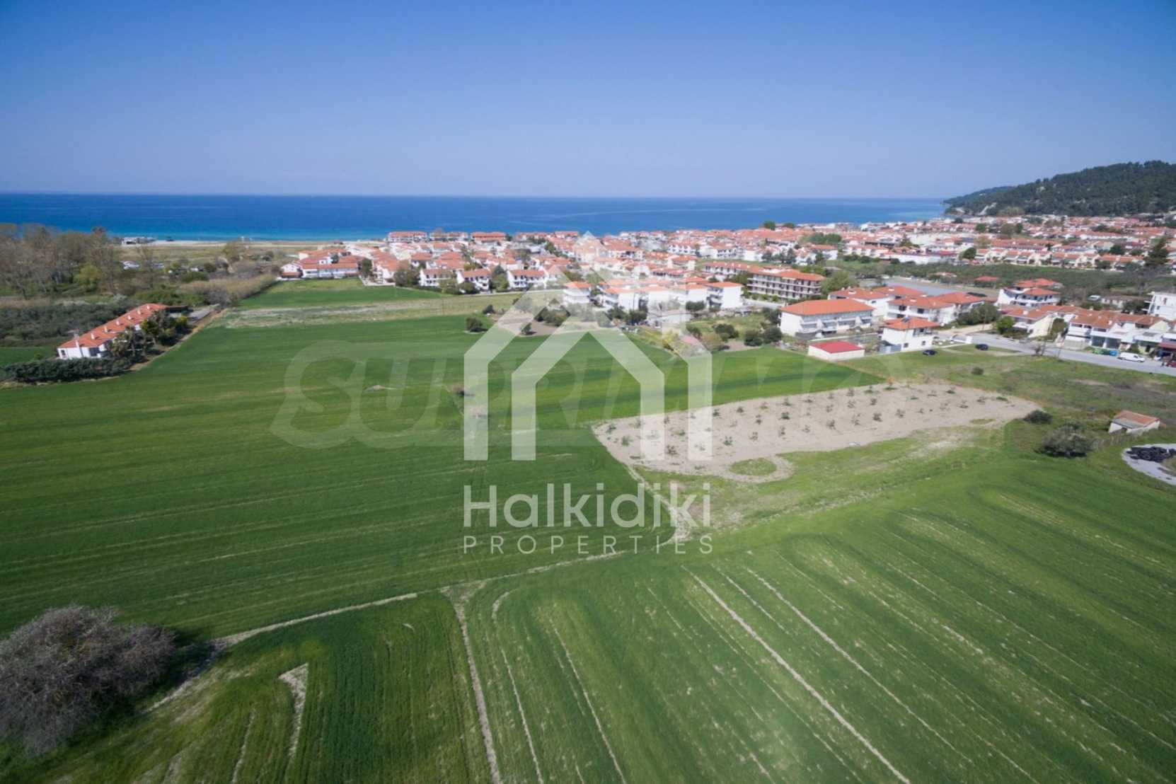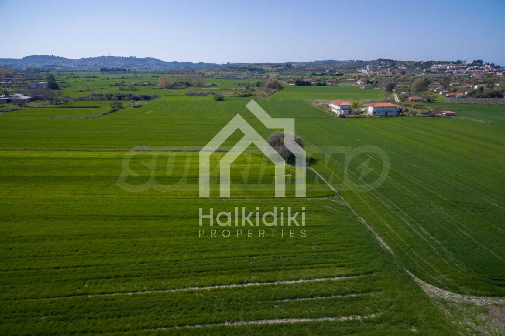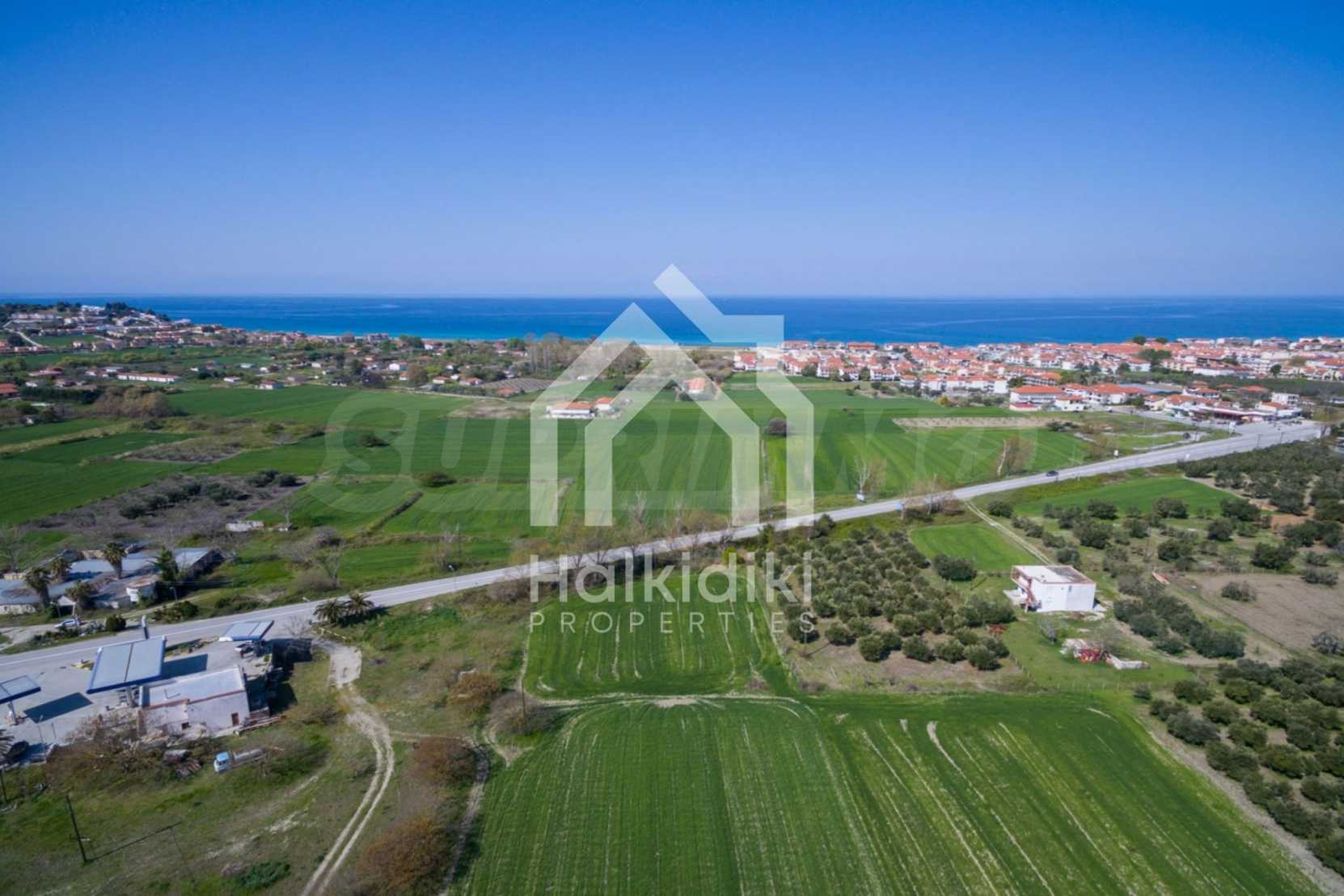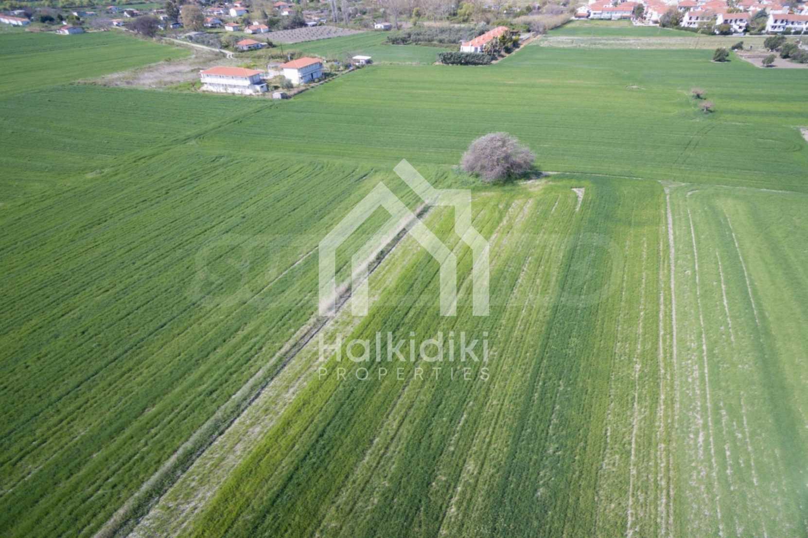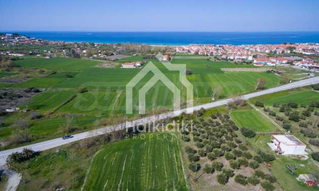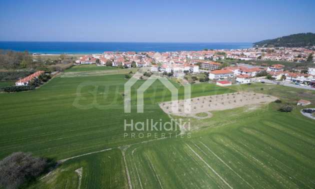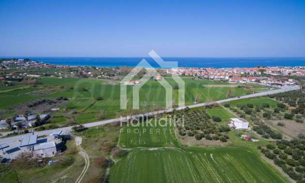 Flat field, 13.594 m², in Kassandra,Thessaloniki with unobstructed permanent view and with a western orientation.The property is 900 m. away from the beach and the center of the village.The field is complete,buildable and faces the main road.The property is perfect for the construction of detached houses and professional usage.