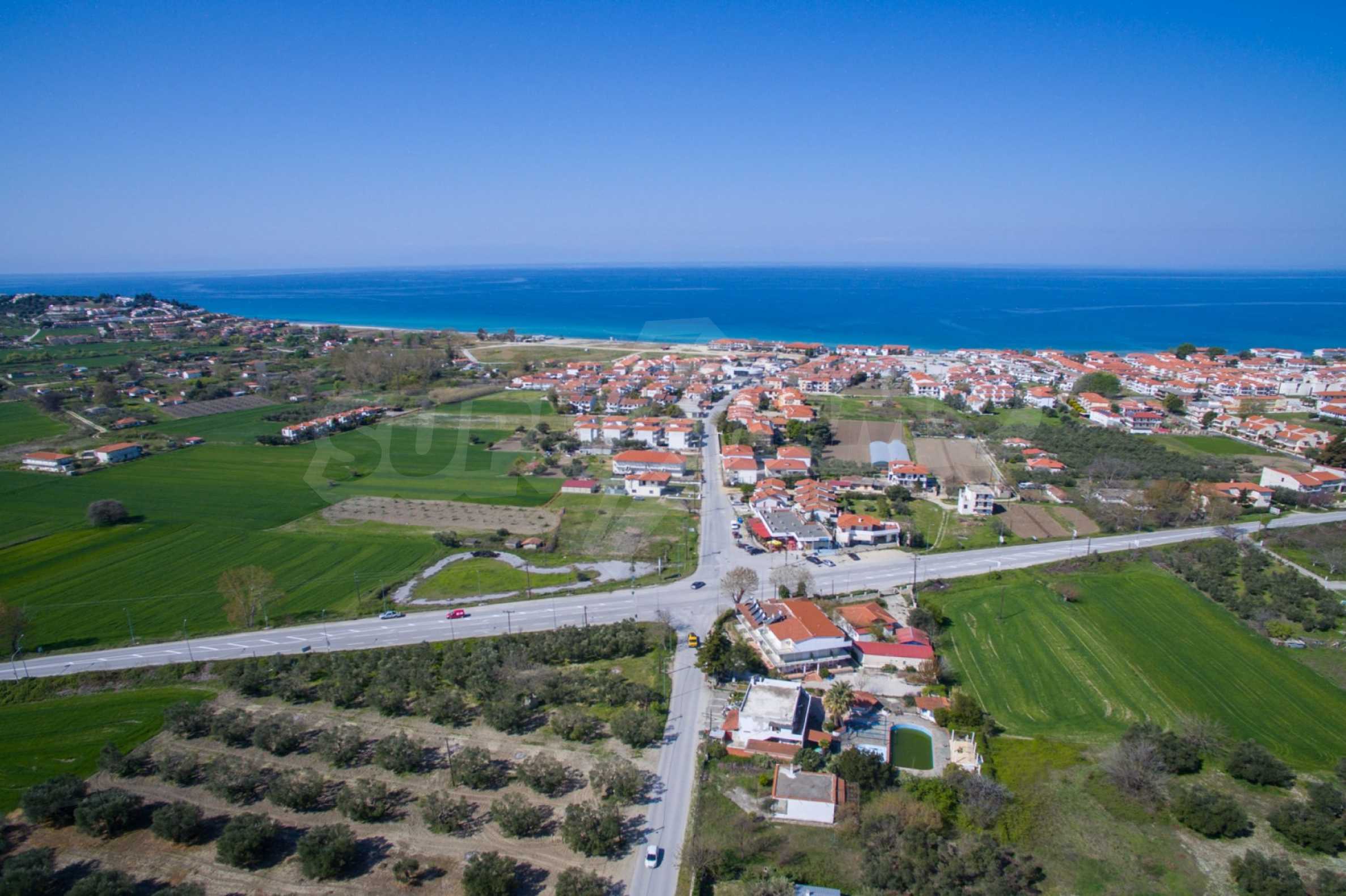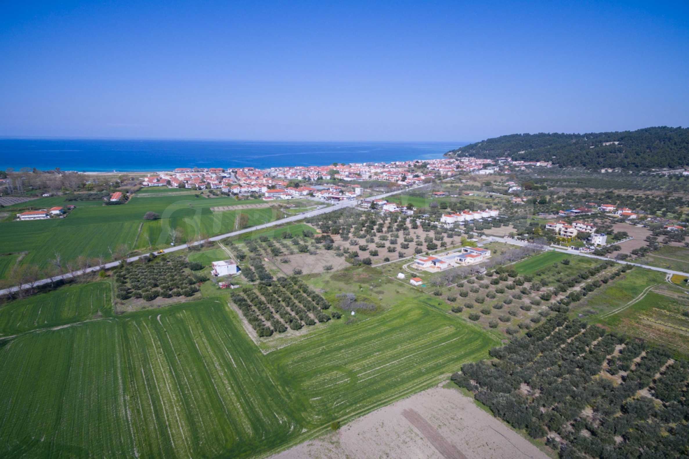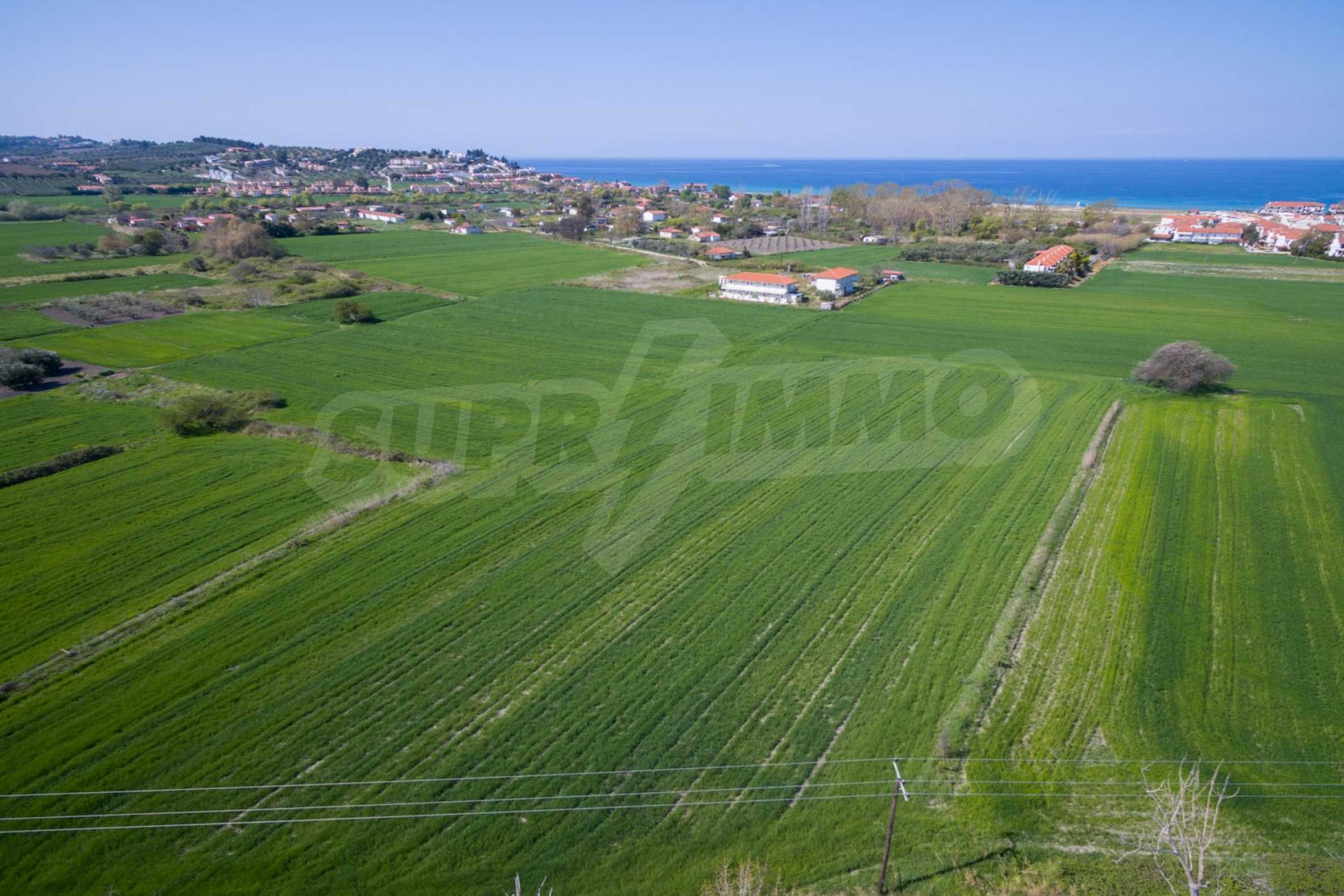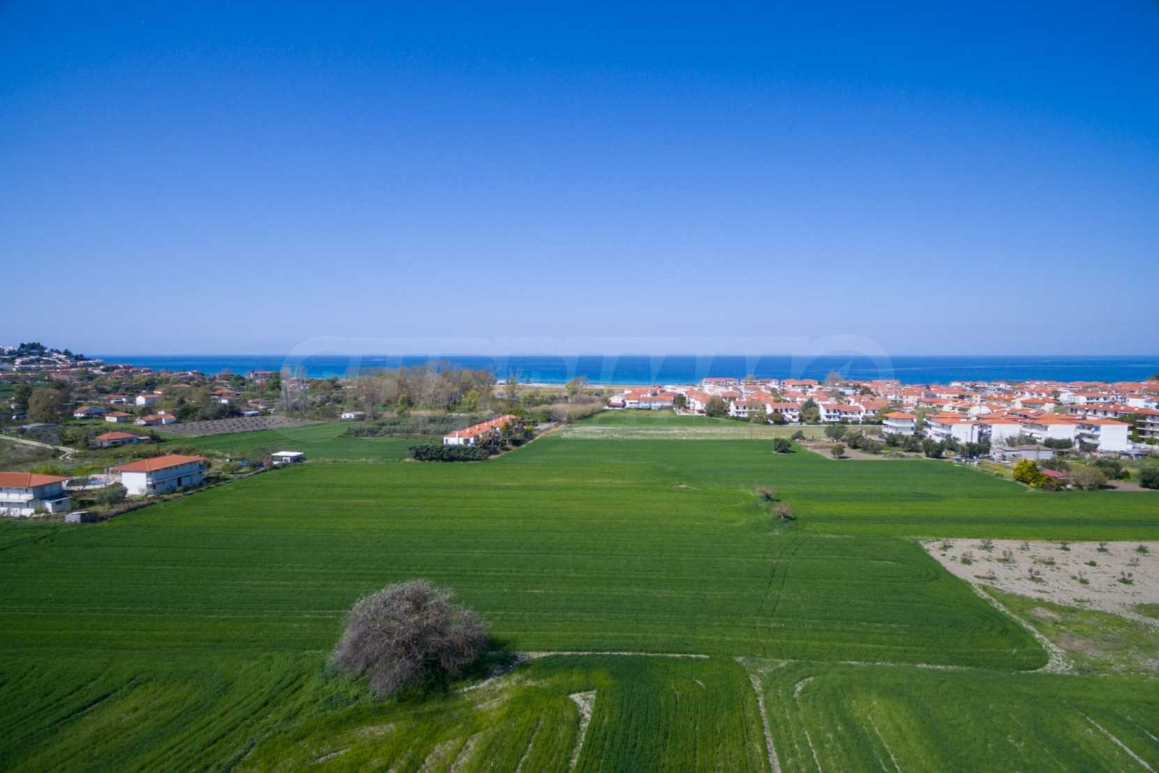 Flat field, 13.594 m², in Kassandra,Thessaloniki with unobstructed permanent view and with a western orientation.The property is 900 m. away from the beach and the center of the village.The field is complete,buildable and faces the main road.The property is perfect for the construction of detached houses and professional usage.