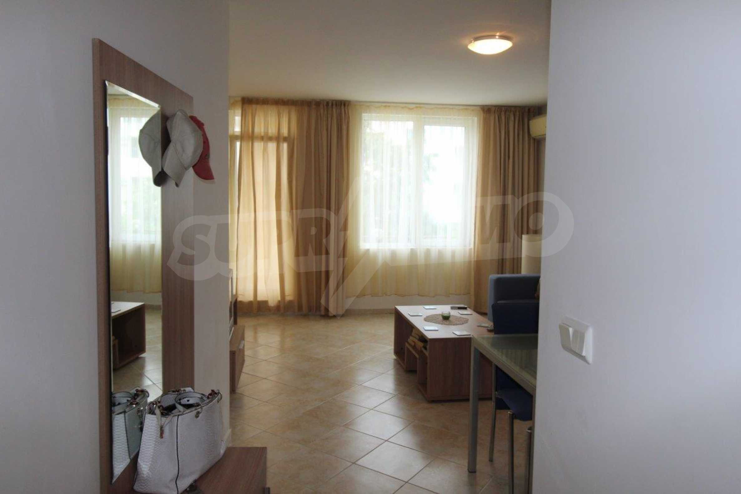 Comfortable one bedroom apartment of 61 m2 for sale at an attractive price of 410 Euro / m2 in the popular mini-resort with swimming pools and first class amenities, situated in the green of the eco-region near Sunny Beach, in Kosharitsa village. The complex is located only 5 minutes by car from the beaches of Sunny Beach.