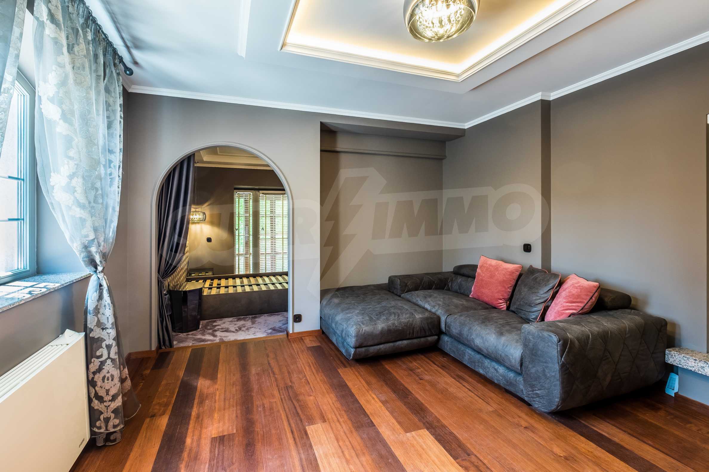 The property is finished with a design project and represents: beautiful entrance hall of granite, spacious living room with parquet floor, fireplace lined with granite, bedroom with designer furniture Miotto, bathroom with toilet equipped with top-grade Italian faience and shower Grohe, wardrobe , dressers, wardrobes and cabinets in the mirror series of Miotto.
