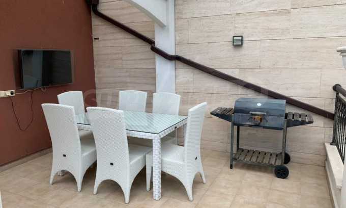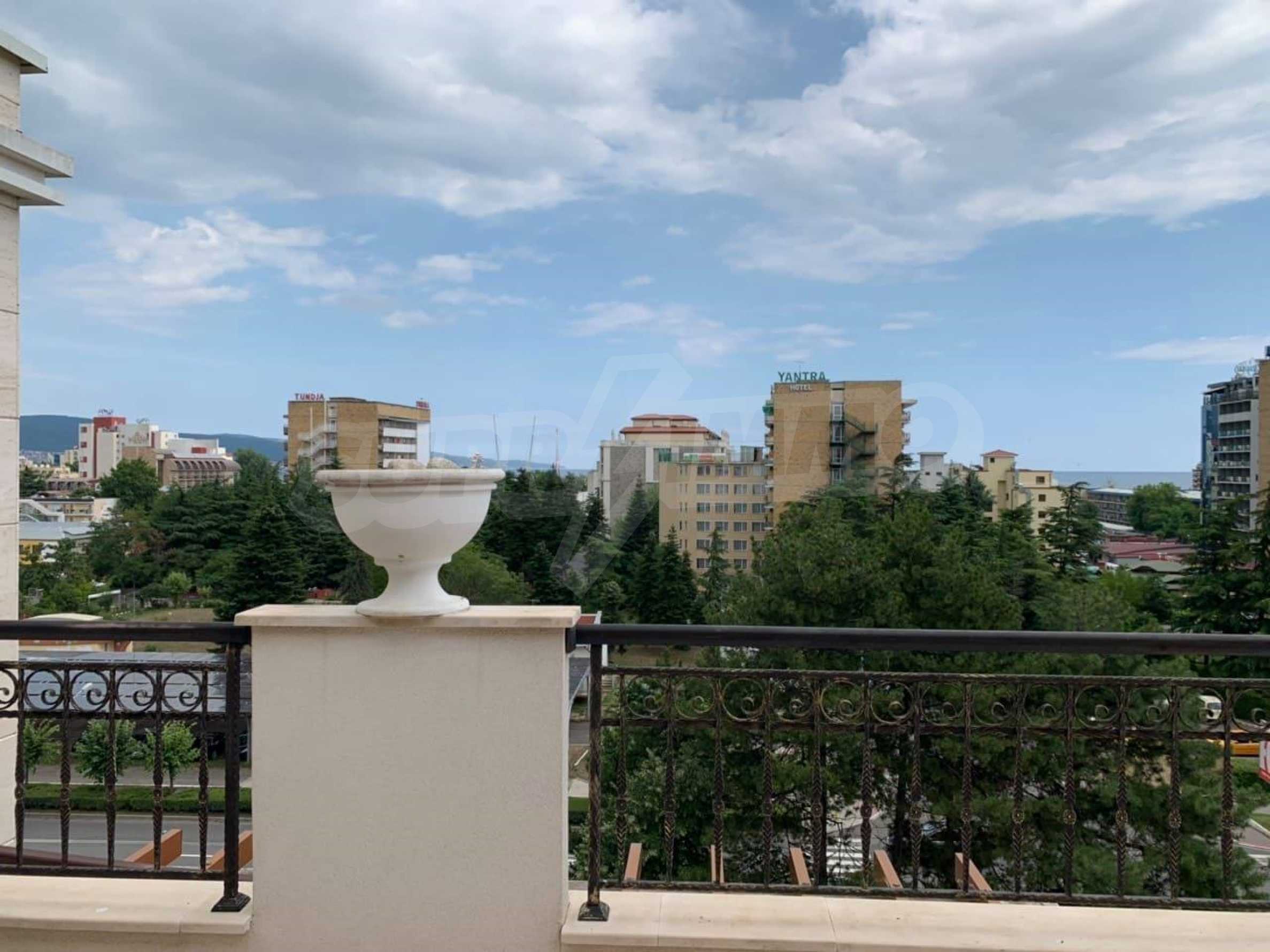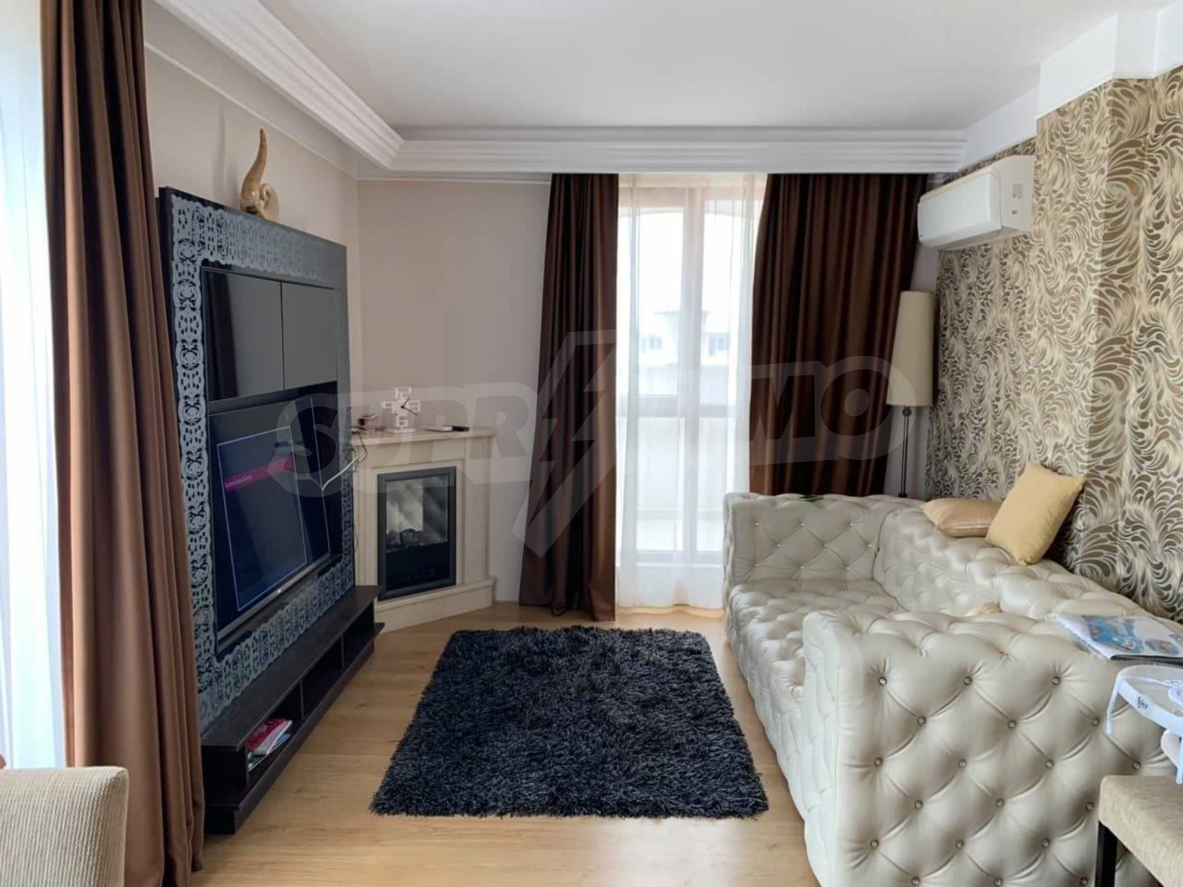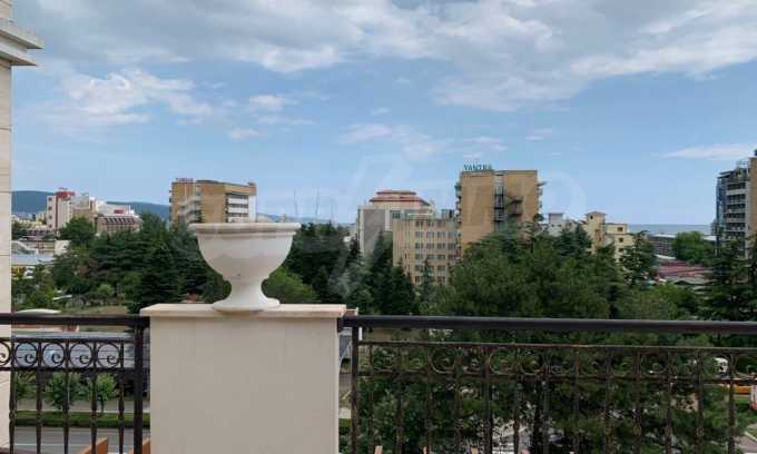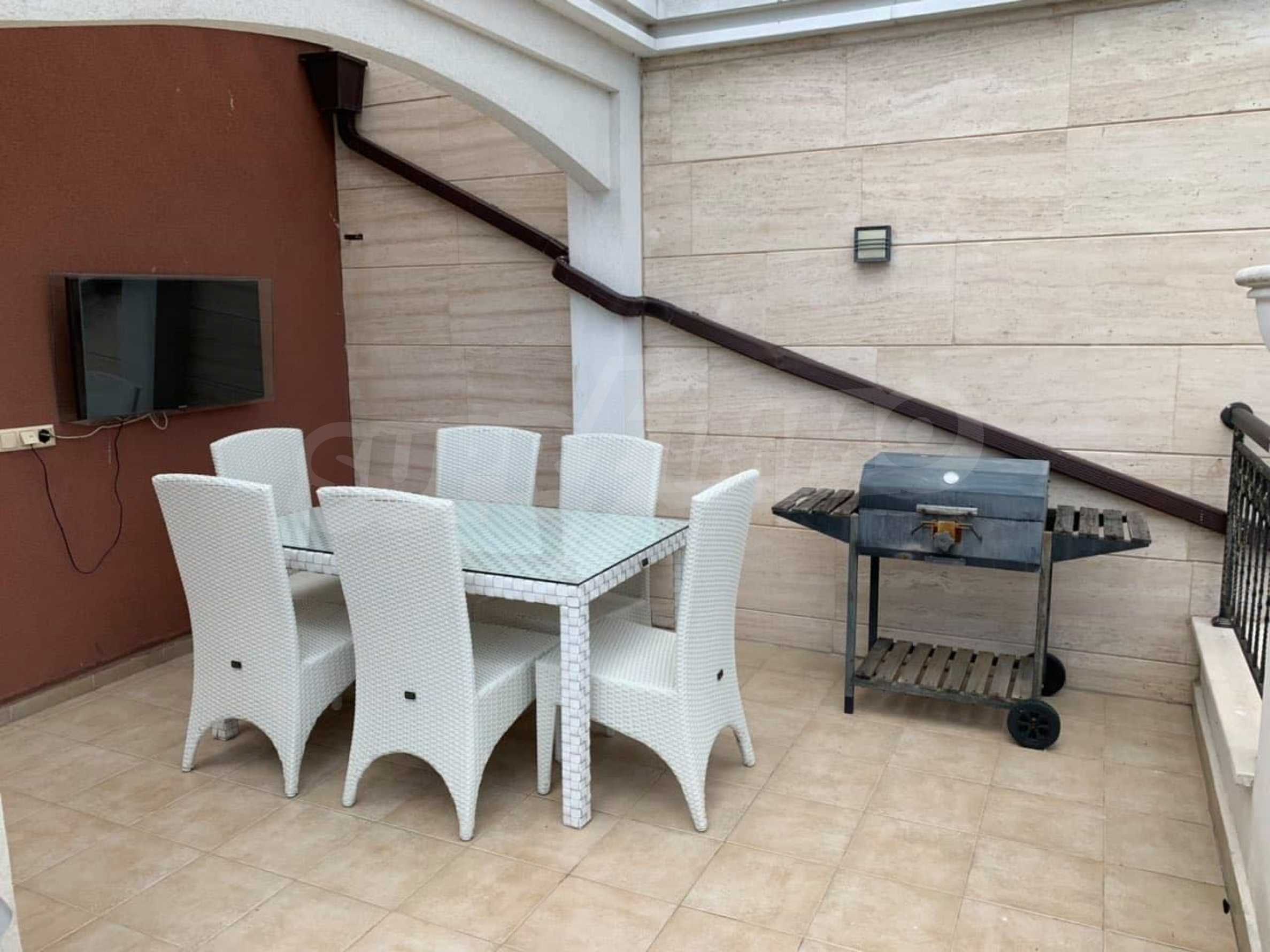 The property consists of two apartments combined in one - living room with marble electric fireplace and kitchen with area - 40 m2., 3 bedrooms / each 20m2 /, two large bathrooms with toilet, spacious round terrace - 80 m2. with a beautiful panoramic view of the sea, the city and the mountain.