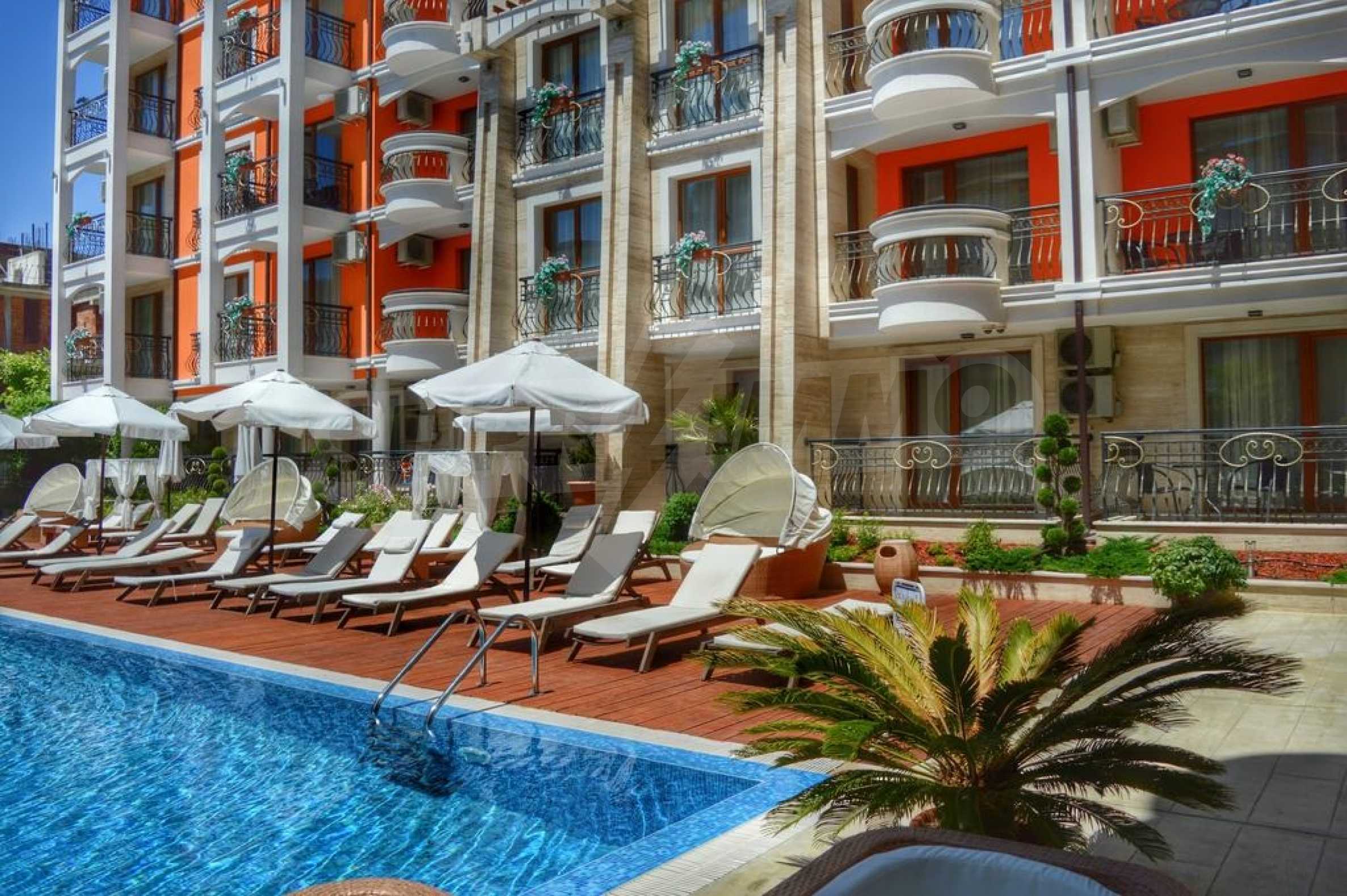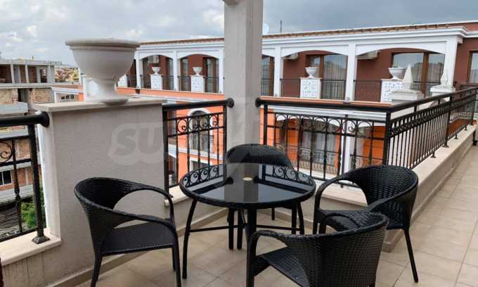 The complex is located 400 meters from the beach and the sea. Surrounded by good infrastructure - numerous shops, restaurants, cafes, restaurants, it enjoys its distinctive architectural style with modern accents and stylish decor on the facade, with spacious balconies and southeast exposure. It combines a luxurious atmosphere with many extras and excellent conditions for rest.