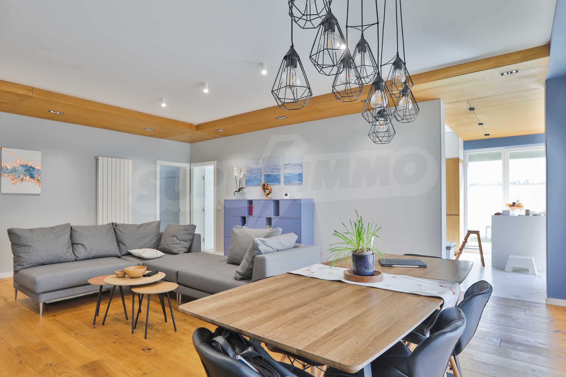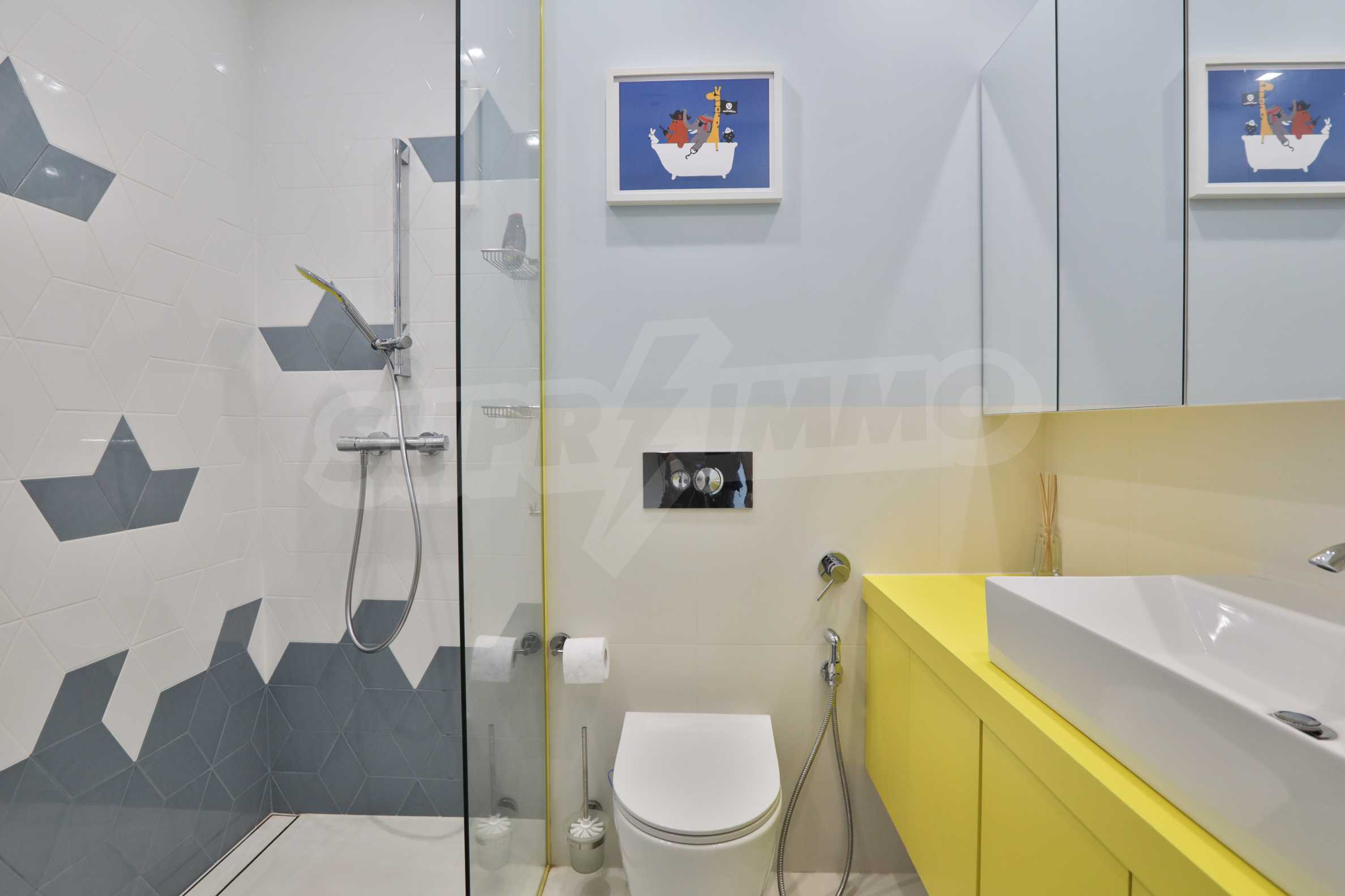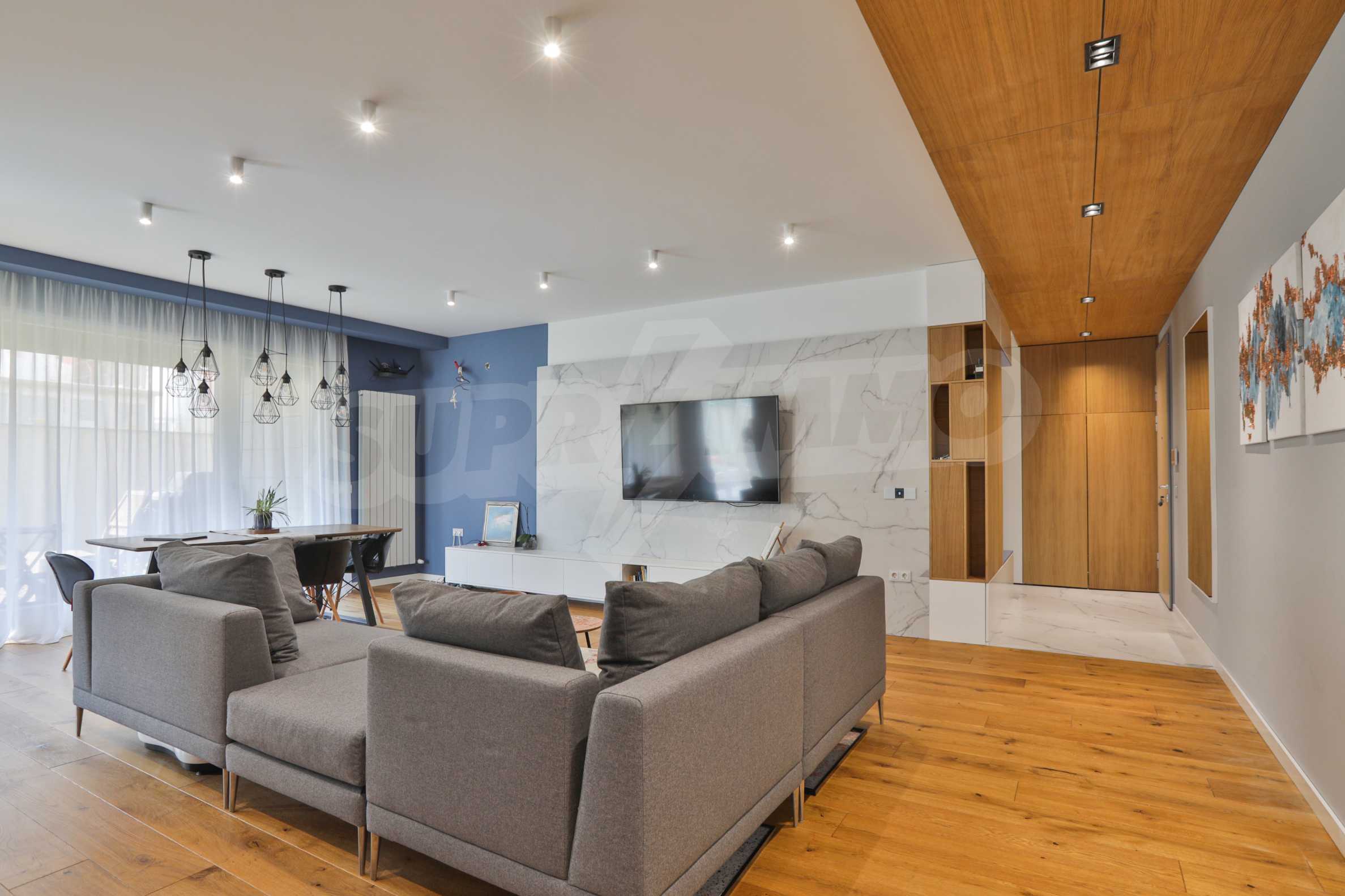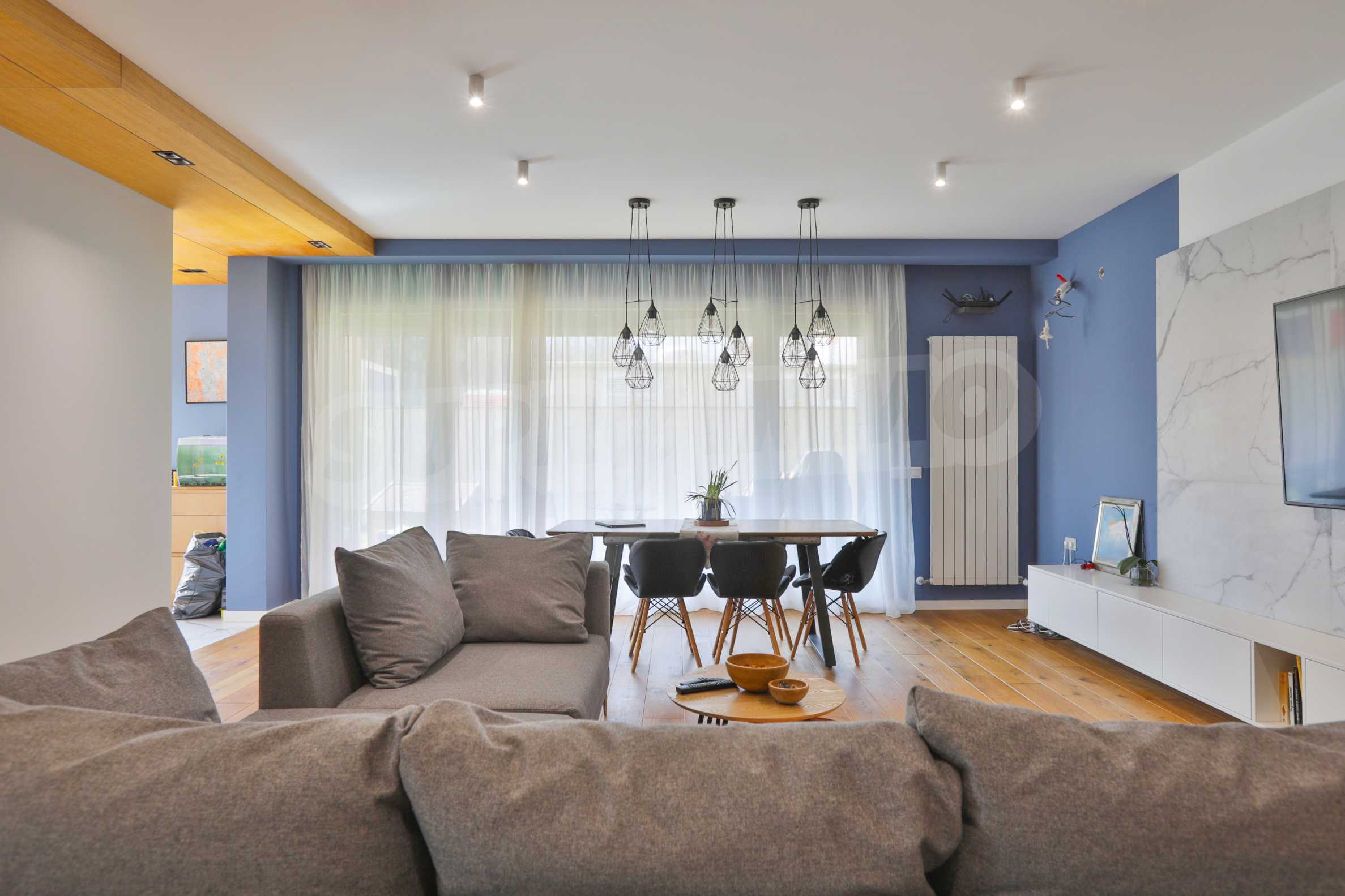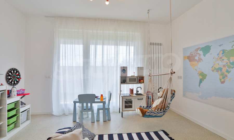 Fully finished and furnished by design project three-bedroom apartment in the new phase of Flora Park - Flora Garden. The complex is located in a great location near Mall Bulgaria, public transport stops, sports center, swimming pool, cinema, pharmacy and many other amenities. The access from the complex to the center and the Ring Road is fast and convenient and is carried out through Bulgaria Blvd.