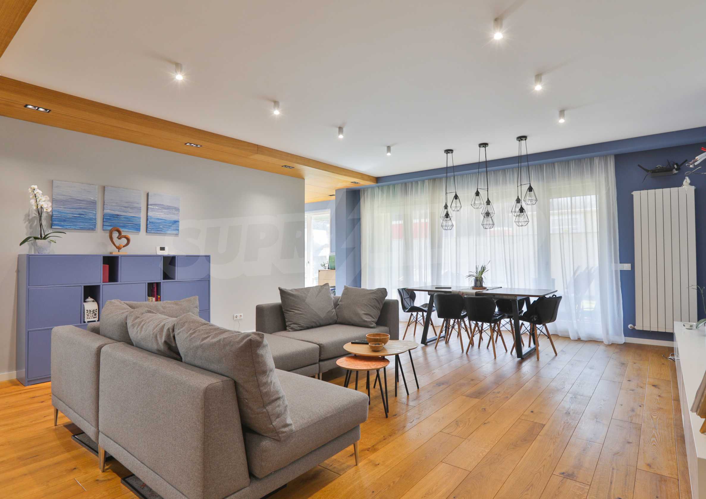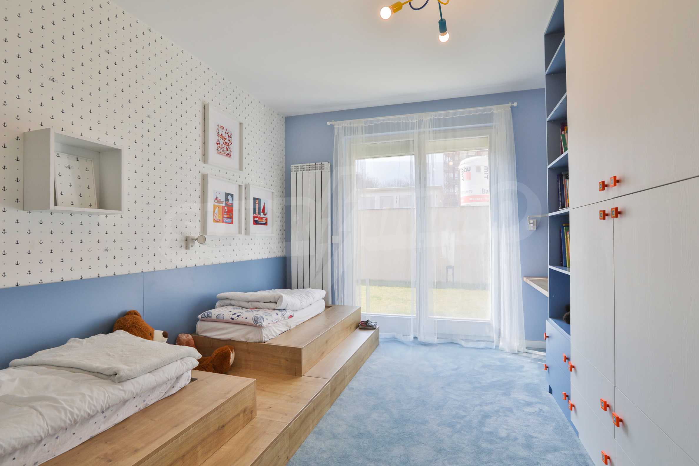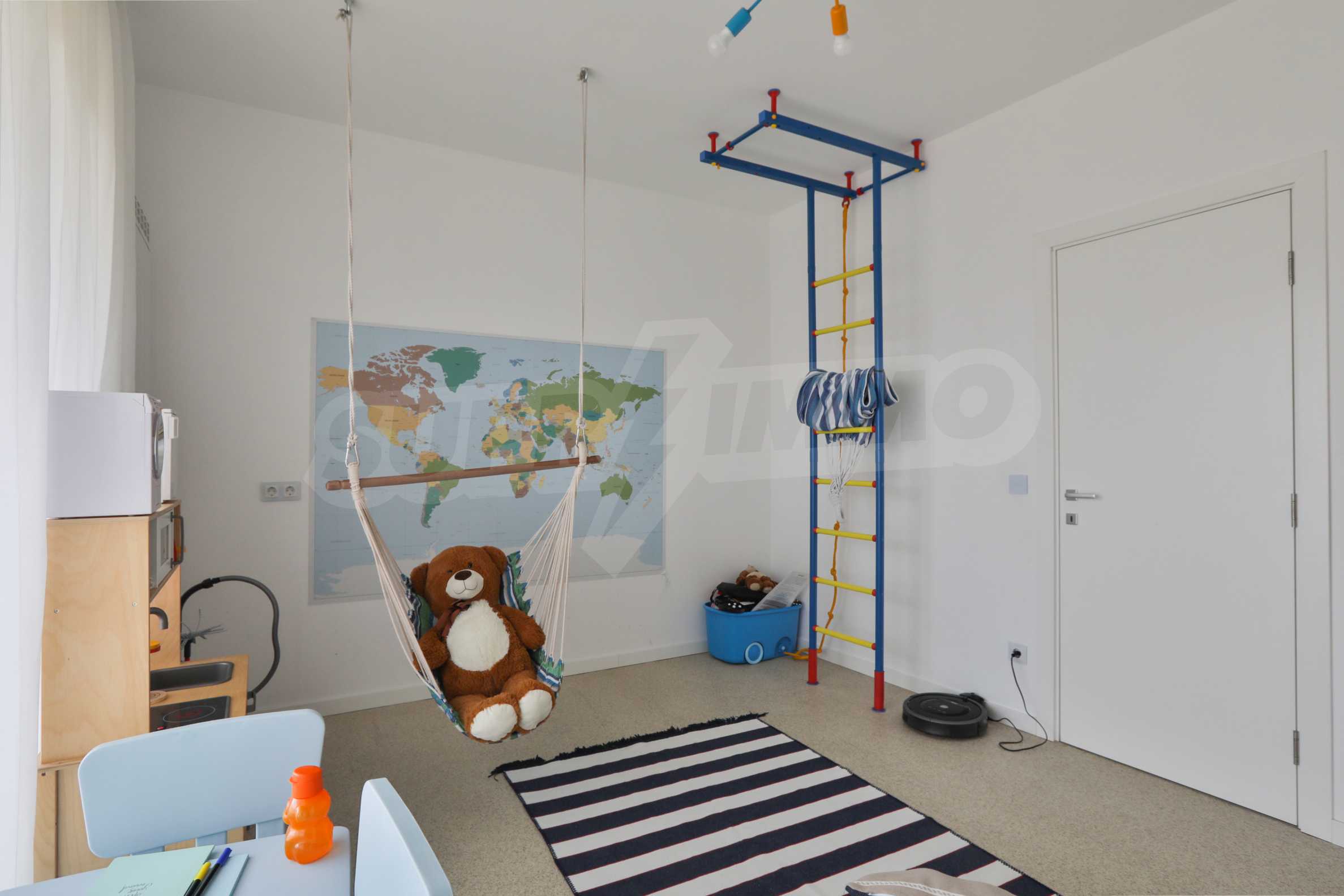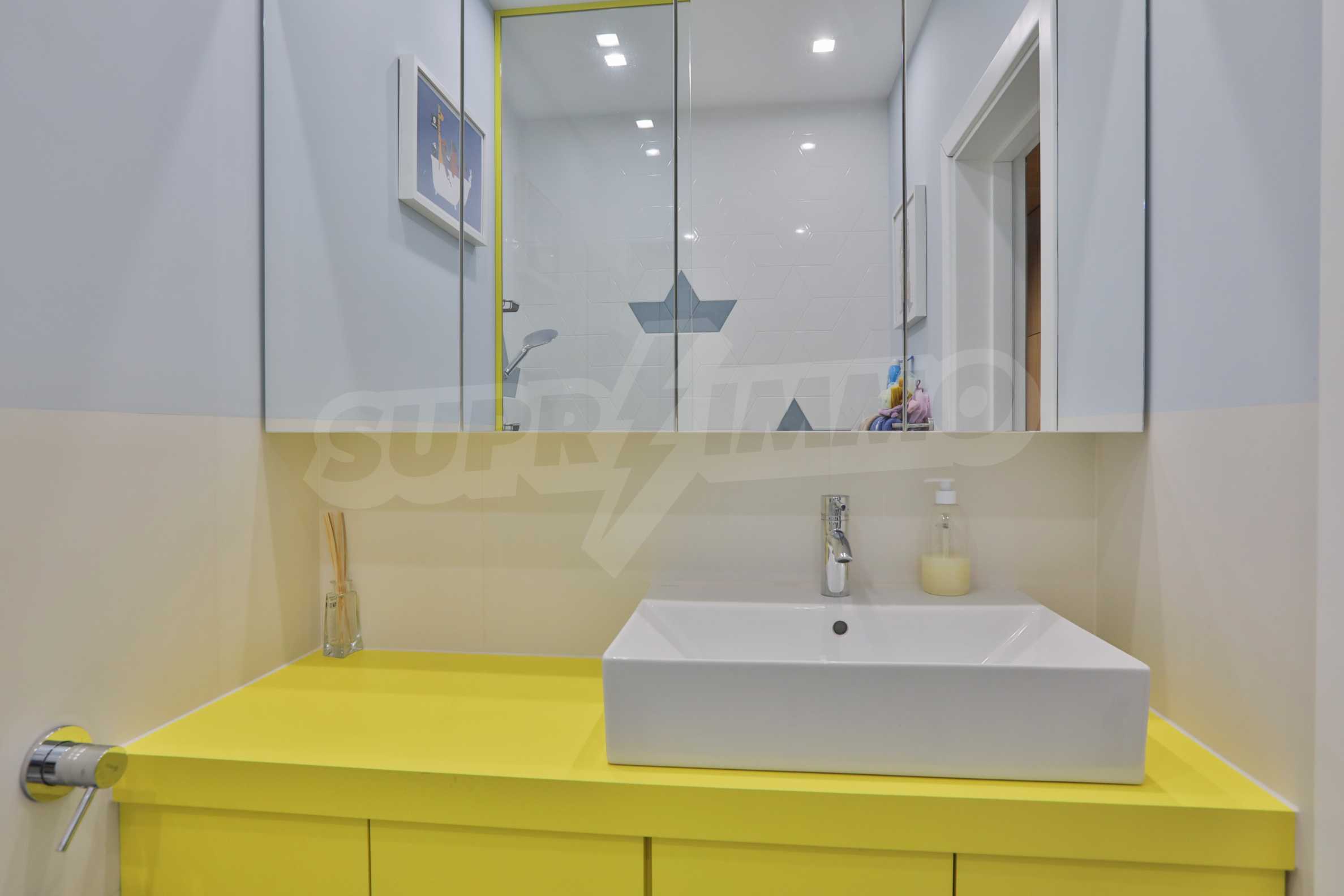 Fully finished and furnished by design project three-bedroom apartment in the new phase of Flora Park - Flora Garden. The complex is located in a great location near Mall Bulgaria, public transport stops, sports center, swimming pool, cinema, pharmacy and many other amenities. The access from the complex to the center and the Ring Road is fast and convenient and is carried out through Bulgaria Blvd.