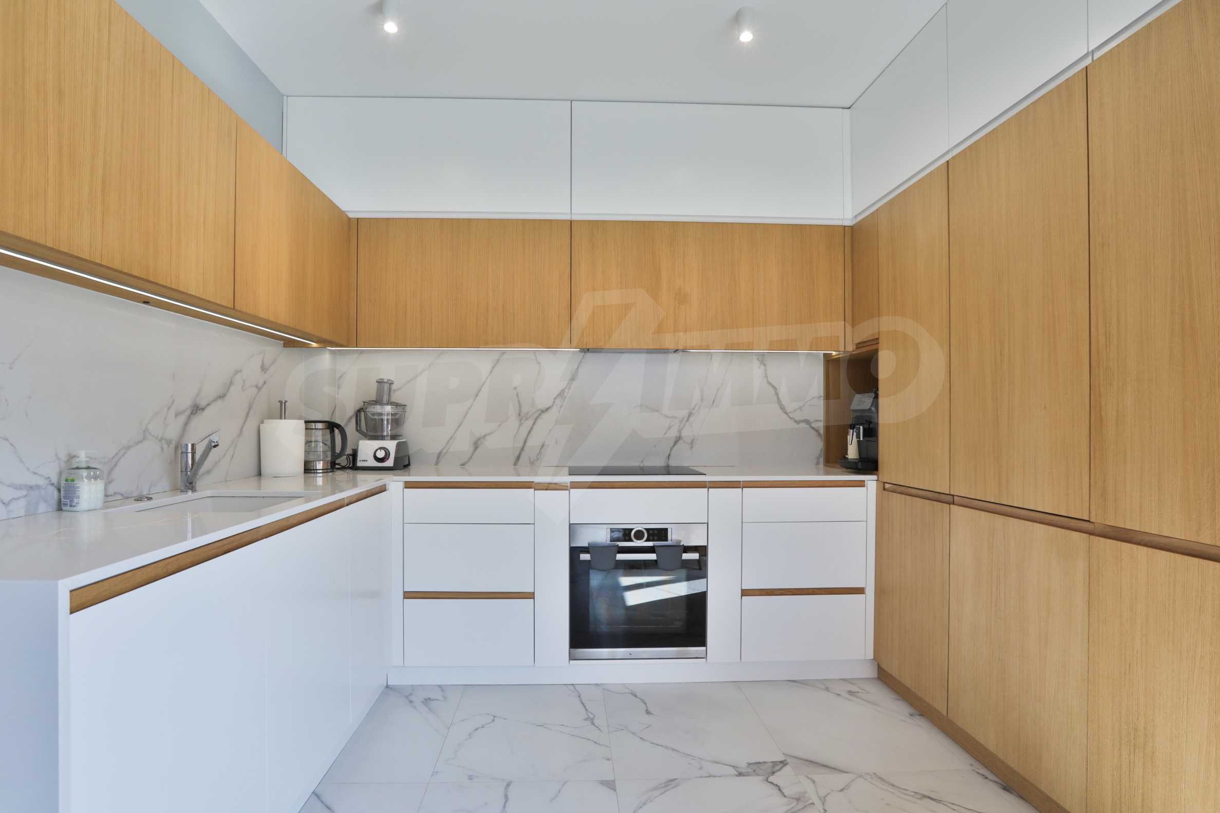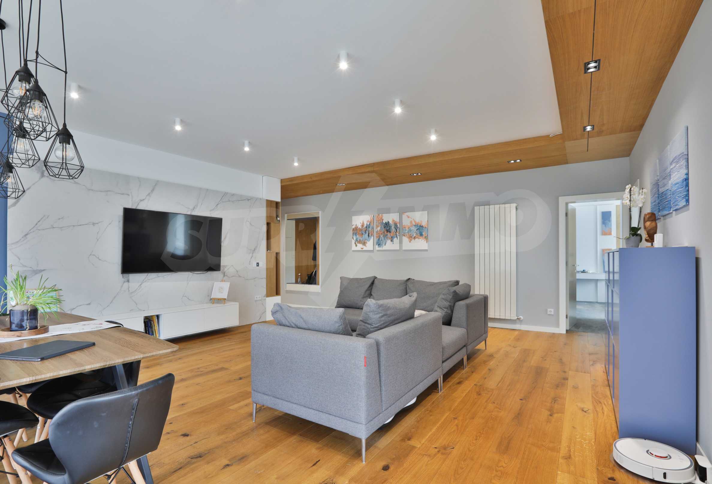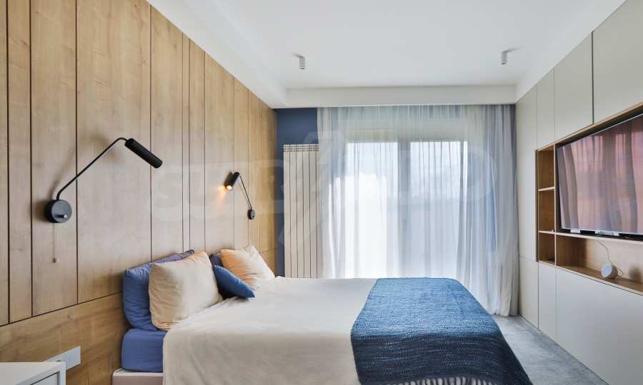 The apartment is offered in a fully finished form according to the visualizations - natural flooring, high quality materials, full wiring, high class white and black appliances included in the price. Armored front door Solid.