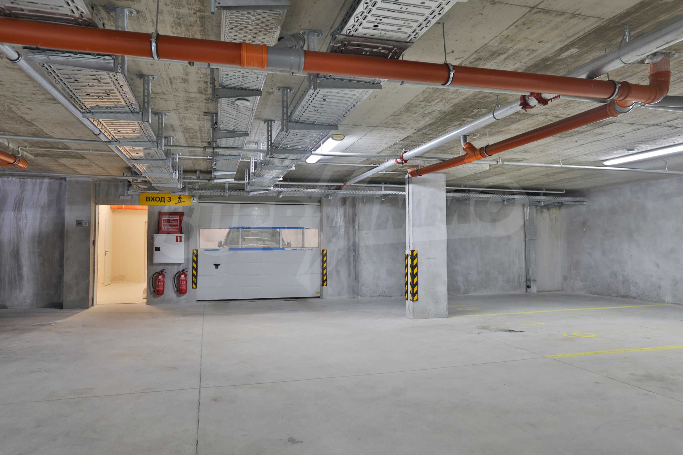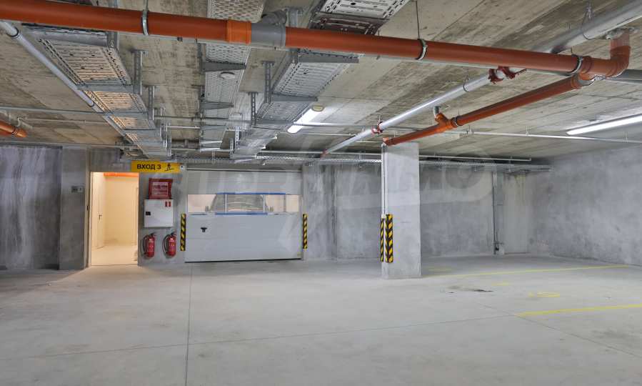- underground parking: polished concrete pavement with marked parking spaces;