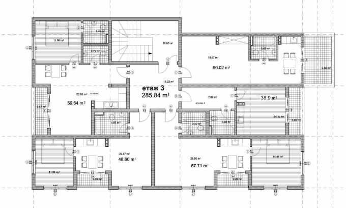 Only three floors, with few apartments, the block is of very high standards and quality. Stainless steel railings in combination with tempered glass, Spanish granite in the common areas, quality PVC windows and mineral plaster, well maintained green areas around the facade, parking lots. These are some of the things that characterize the building.