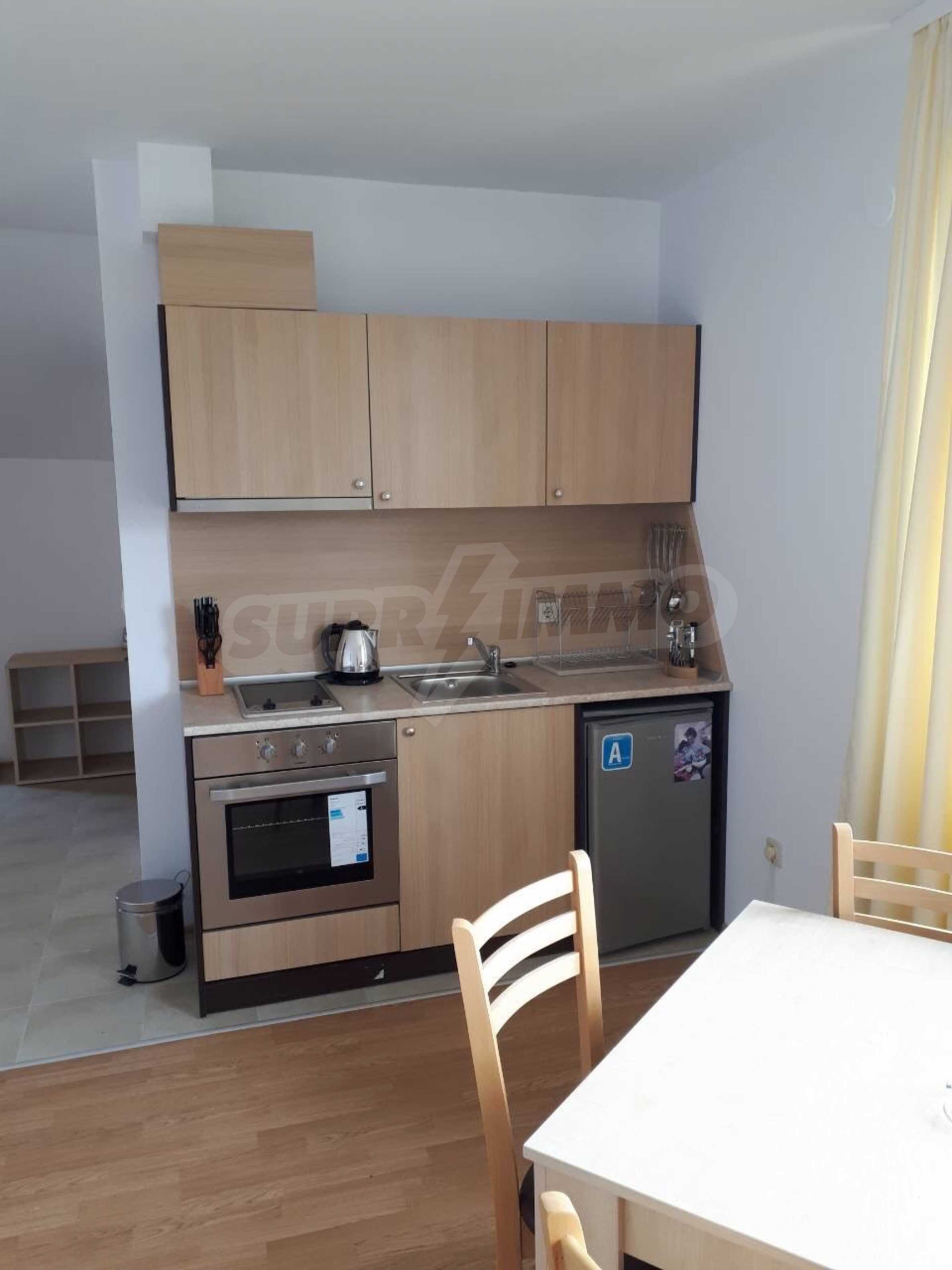 Spaciously furnished studio located in the luxury Aspen Golf complex. The hotel is located 2 km from Razlog and 8 km from the ski resort of Bansko. The studio is fully furnished and ready to move in. The apartment consists of a small equipped kitchen, a bed, a dining table, a bathroom and a toilet. The property has a mountain view.