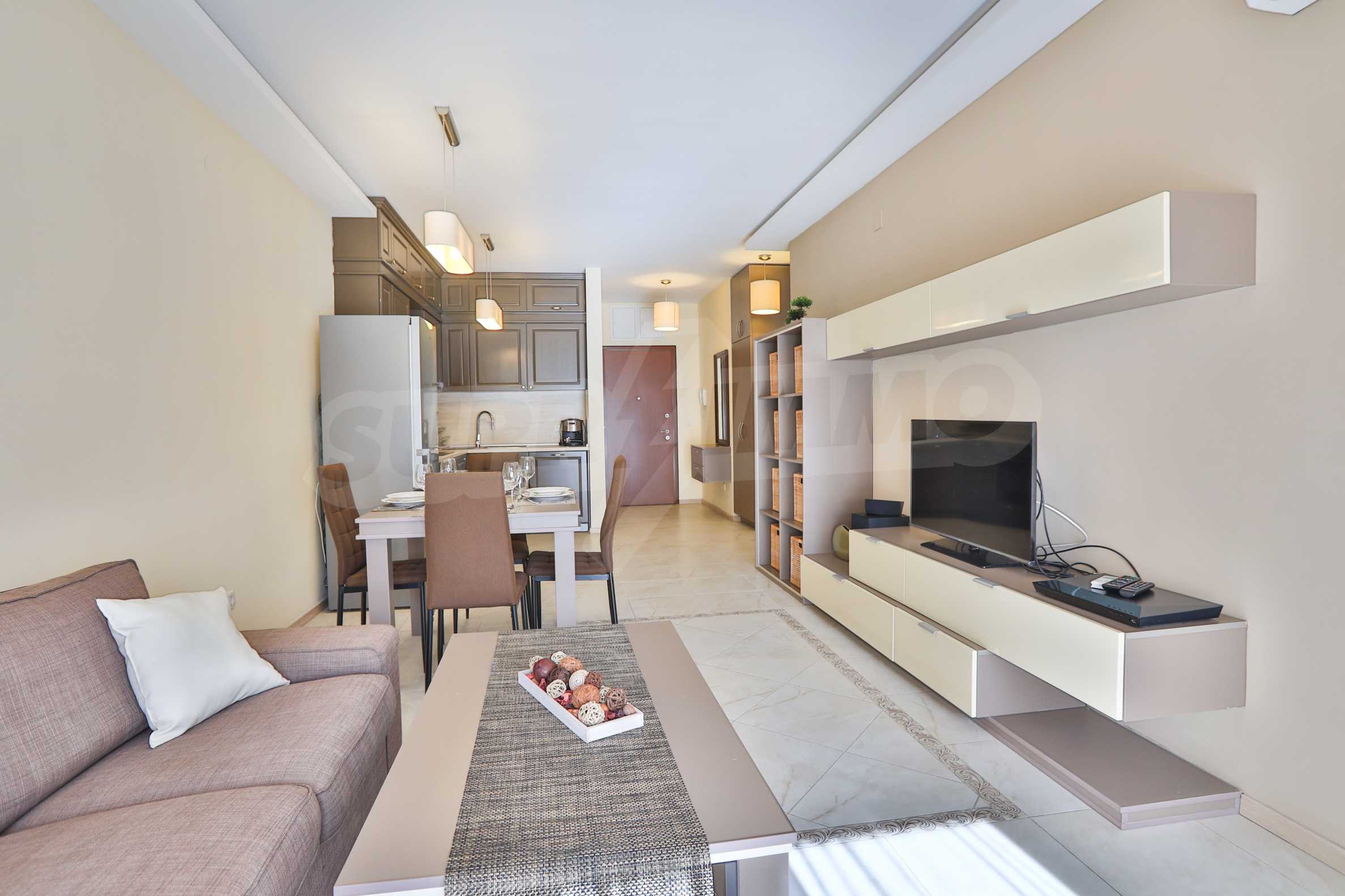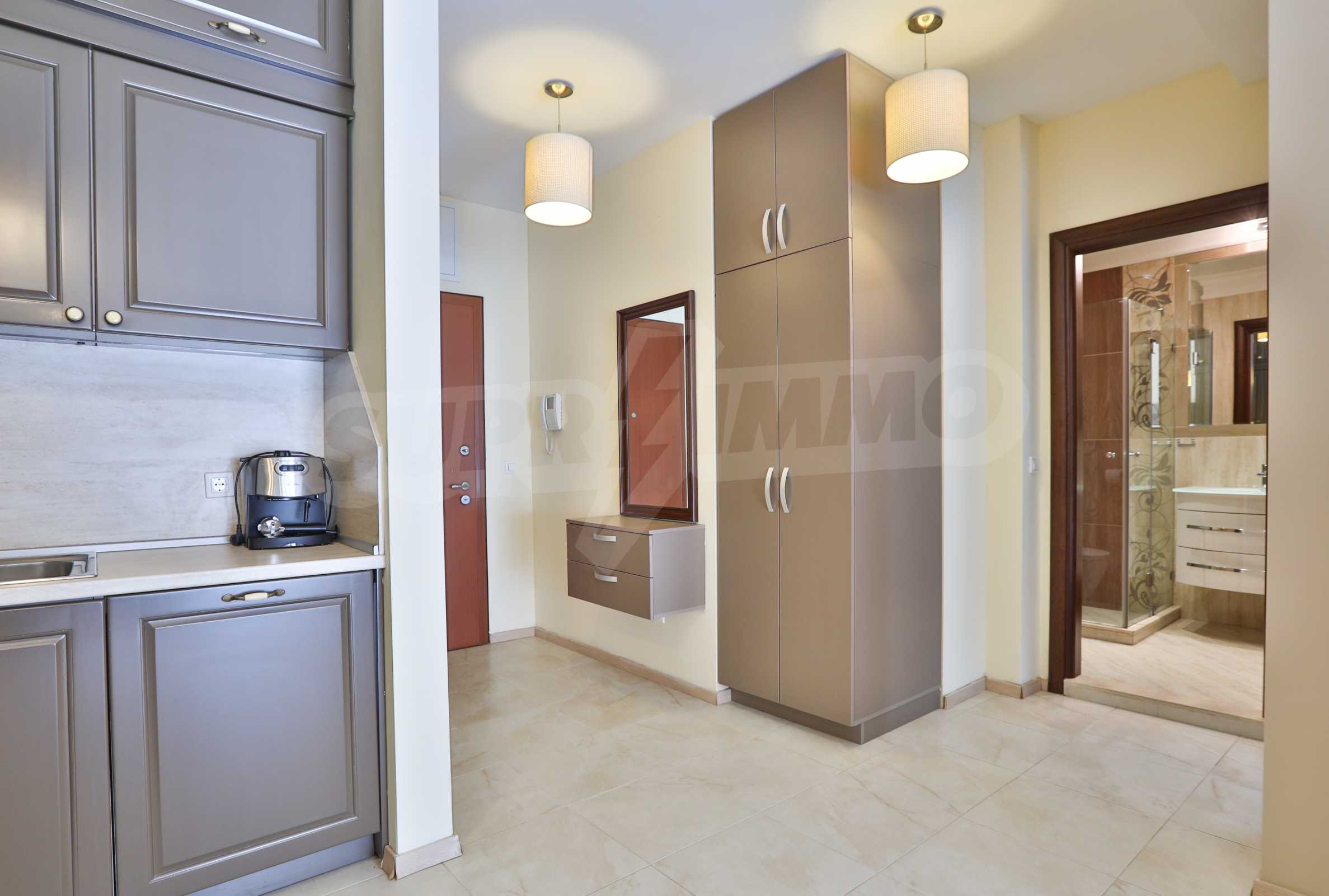 One bedroom apartment in gated Este complex in Iztok. The area offers communication road connections - Dragan Tsankov Blvd., GM Dimitrov Blvd., Tsarigradsko Shose Blvd., Joliot Curie Metro Station and GM Dimitrov Blvd. The complex that houses the proposed home offers a variety of amenities such as a shopping area, a modern spa, a winter garden, shops and restaurants. The peace and security of the residents of the complex are ensured through 24-hour security, video surveillance and access control.
