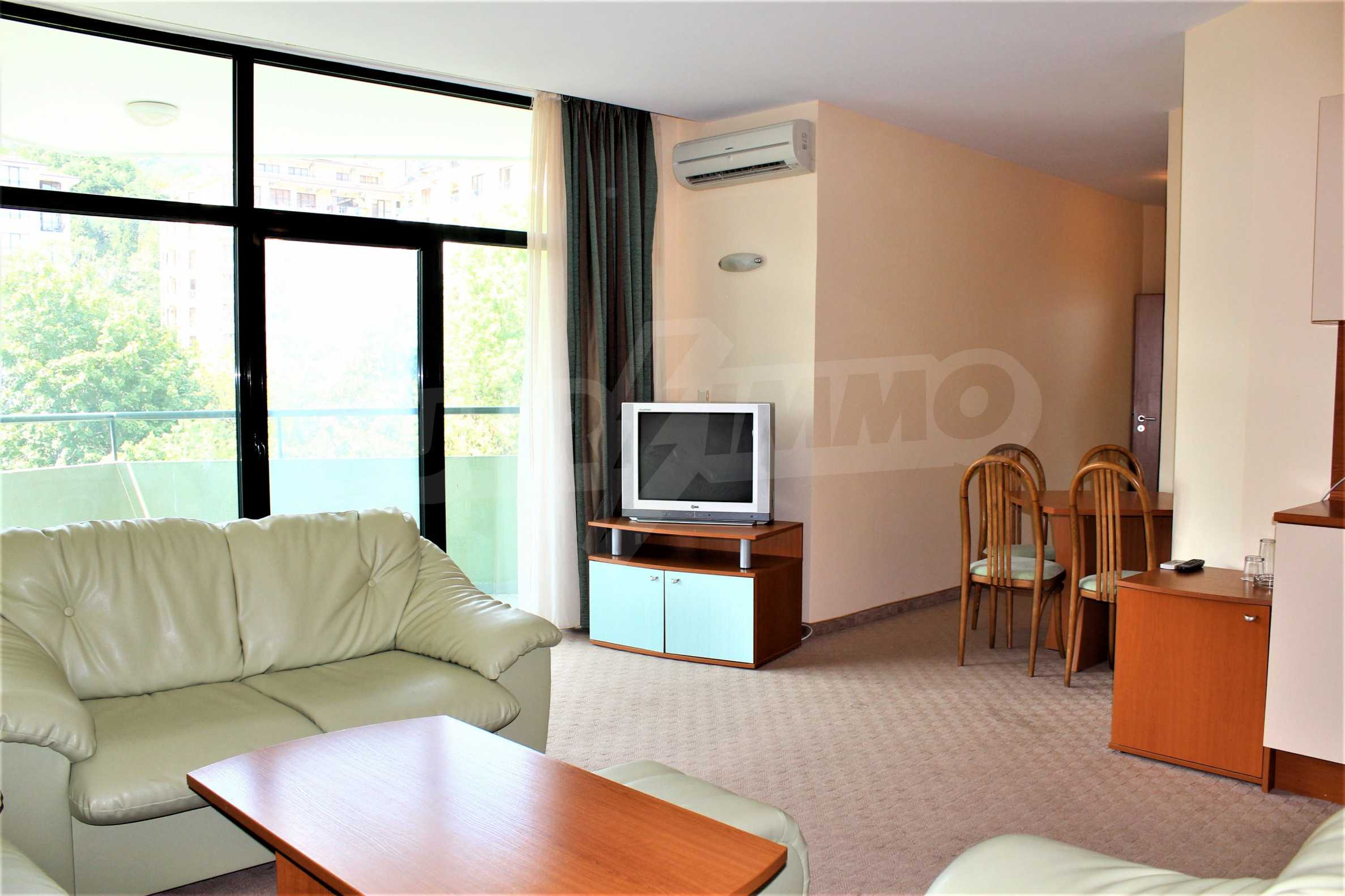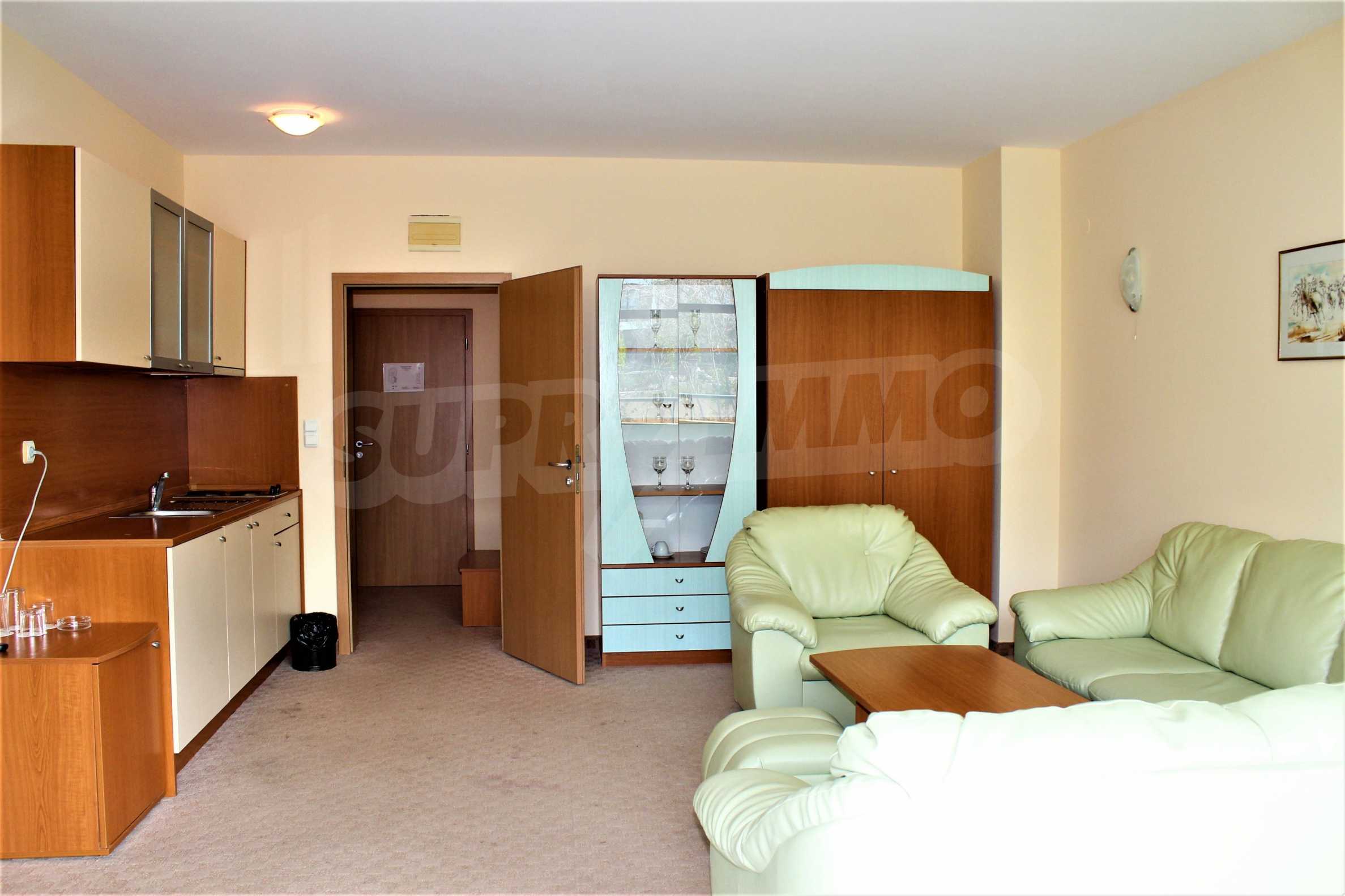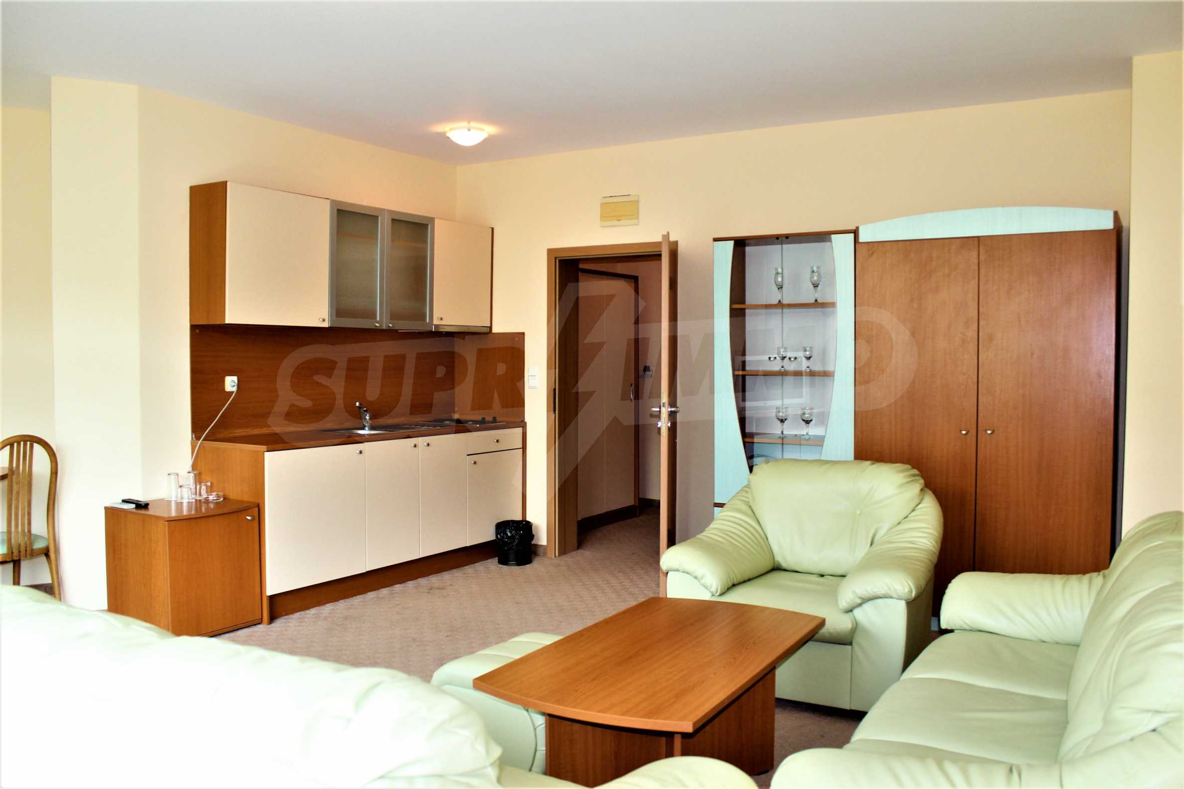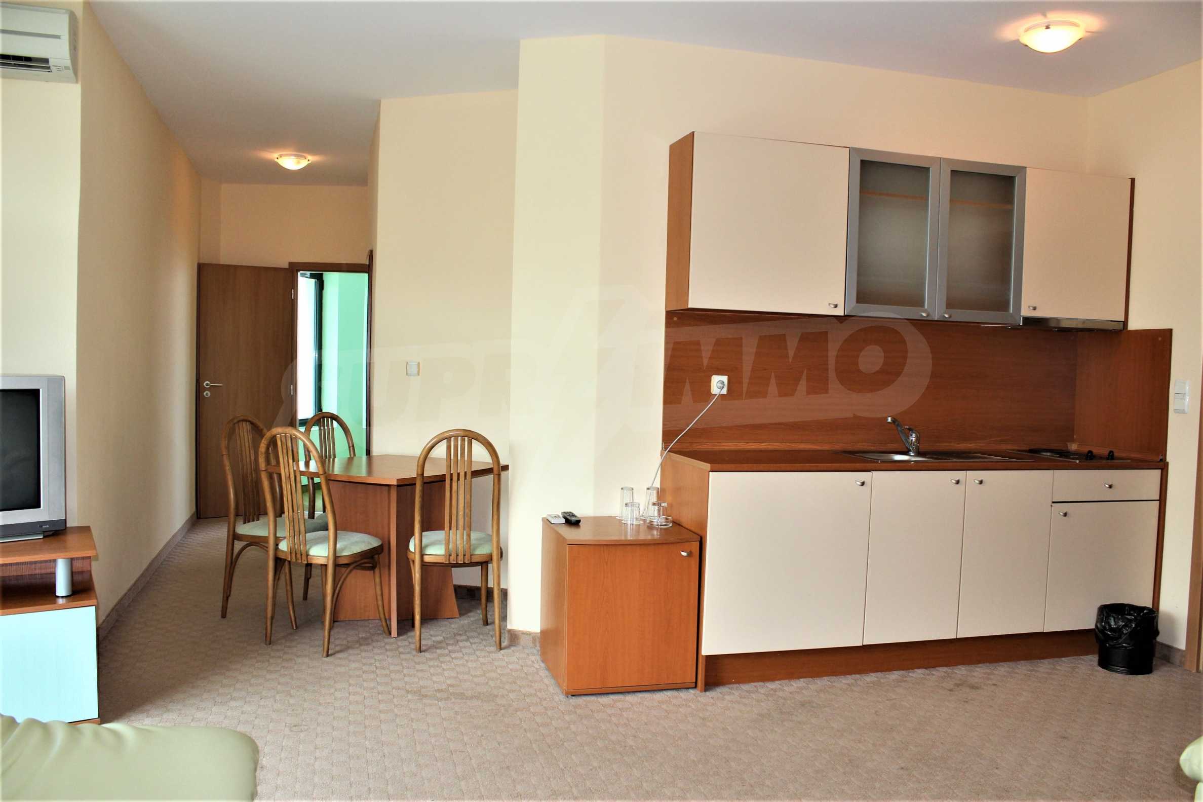 We present to you a one-bedroom apartment from the Palm Beach Aparthotel, which is located on the first line, just 30 meters from the beach, in the most beautiful area of the Bulgarian Black Sea coast. Golden Sands. It is located 17 km from the city center and 25 km from Varna Airport.