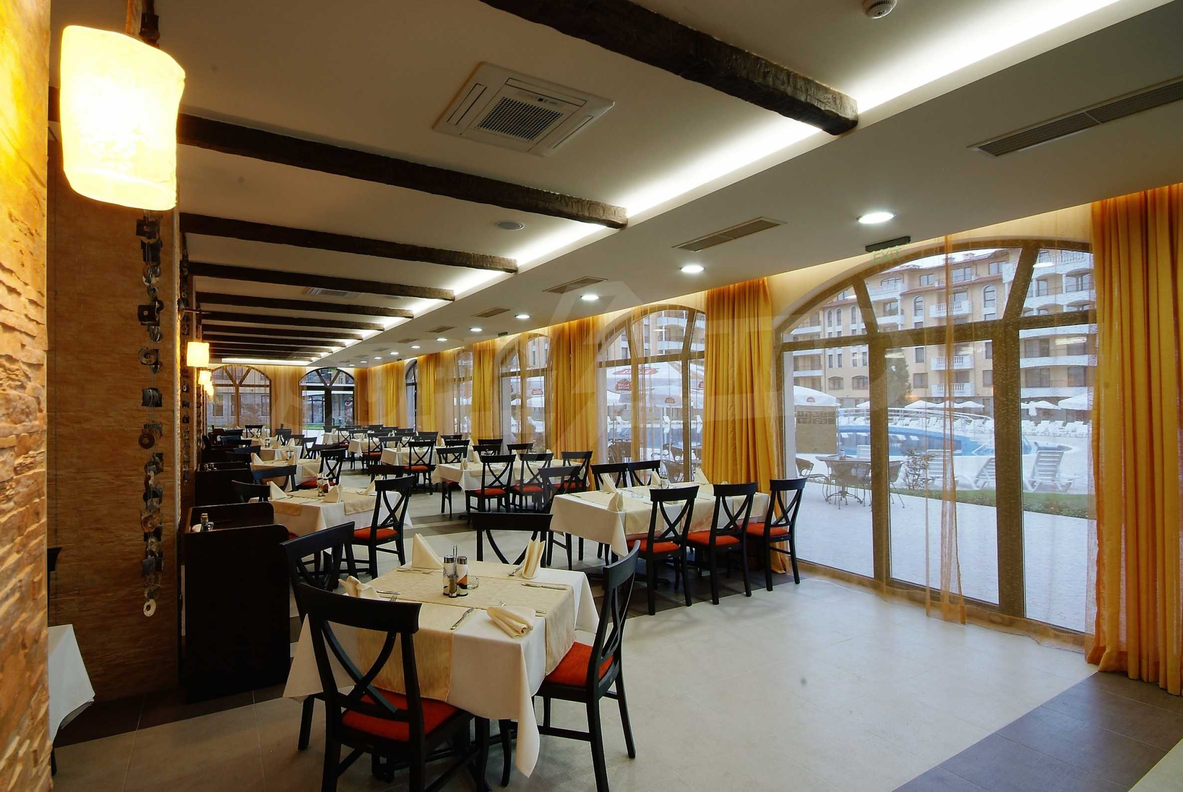 - The spacious restaurant is located next to the garden of the complex. The restaurant offers traditional Bulgarian dishes and European cuisine. Suitable for holiday occasions.
