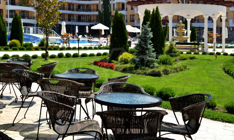 The complex is gated and is located in the center of Sunny Beach in a convenient and communicative place, next to the oldest shopping street, 350 meters from the sea. Nessebar is 5 km away and Burgas Airport is 35 km away. The buildings of the complex have a modern architectural vision, landscaping and extensive internal infrastructure. The park of the complex is 10 000 m2.