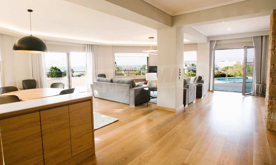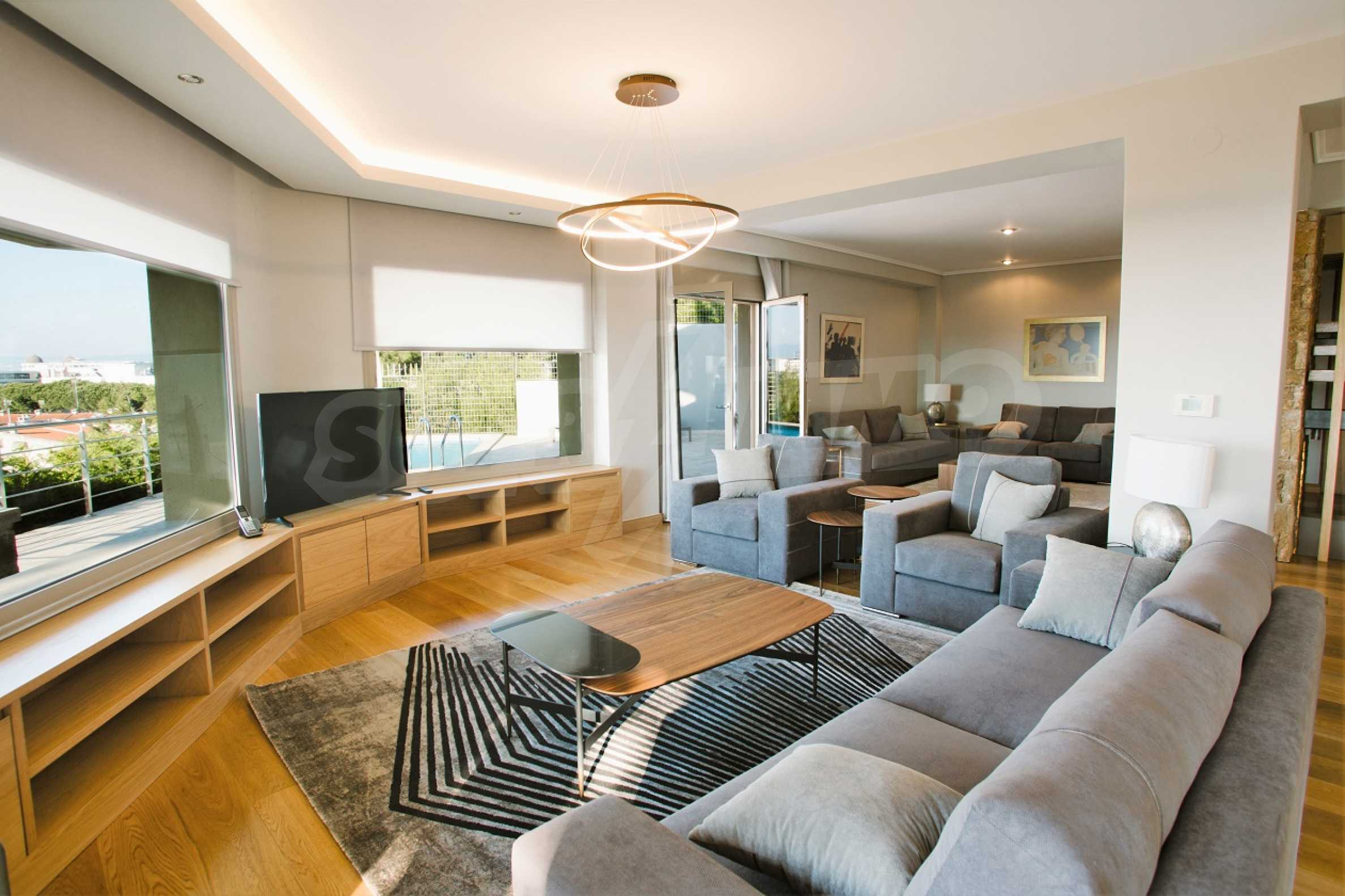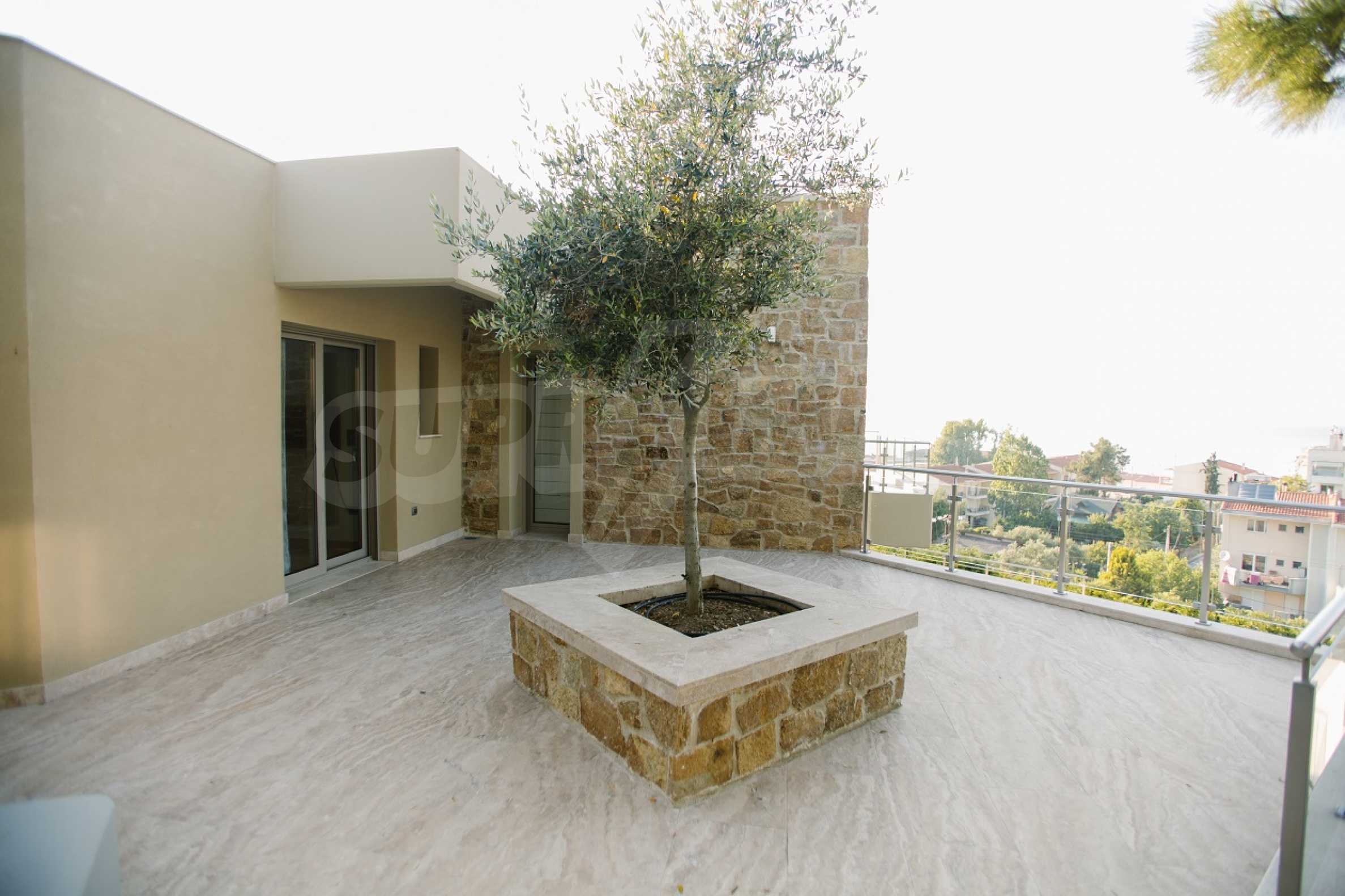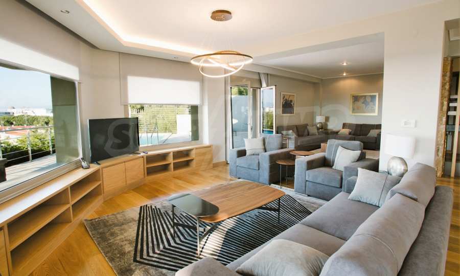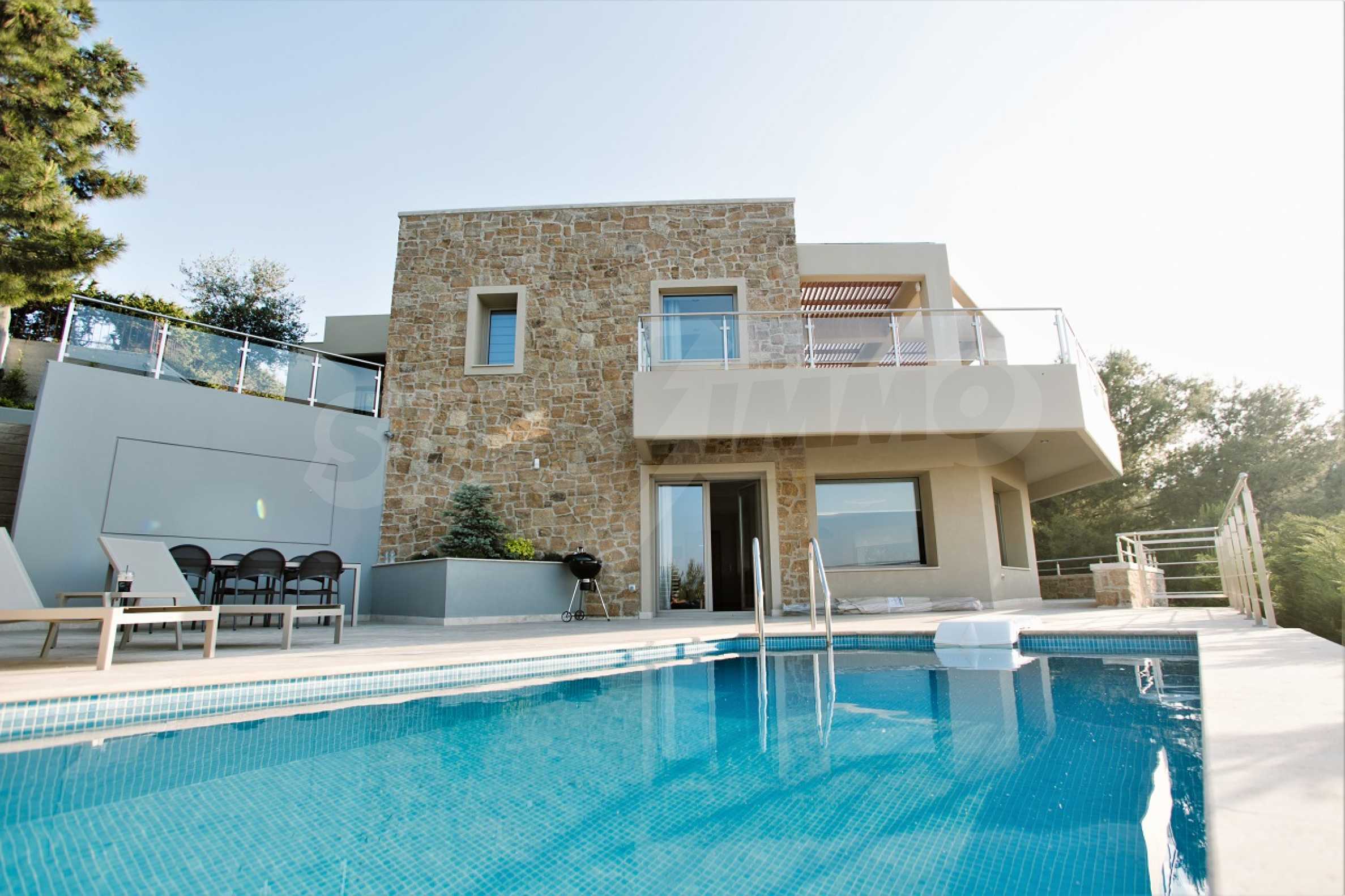 We present you this unique residence in the coastal outskirts of Thessaloniki. The villa is an uncompromising blend of high quality natural materials, style and functionality. Every detail inspires unobtrusive and subtle luxury, comfort and precision. The spacious terraces, revealing panoramic views from almost every corner of the property to the waters of the Aegean and Olympus, are flawless touches enhancing its grandeur.