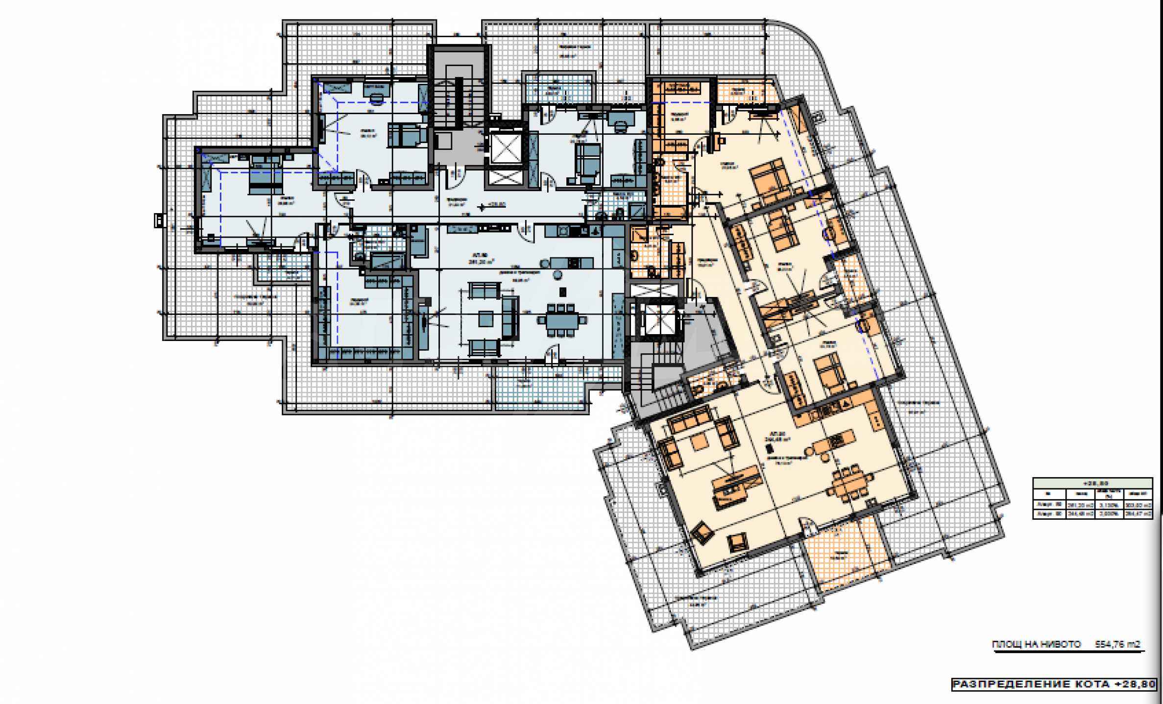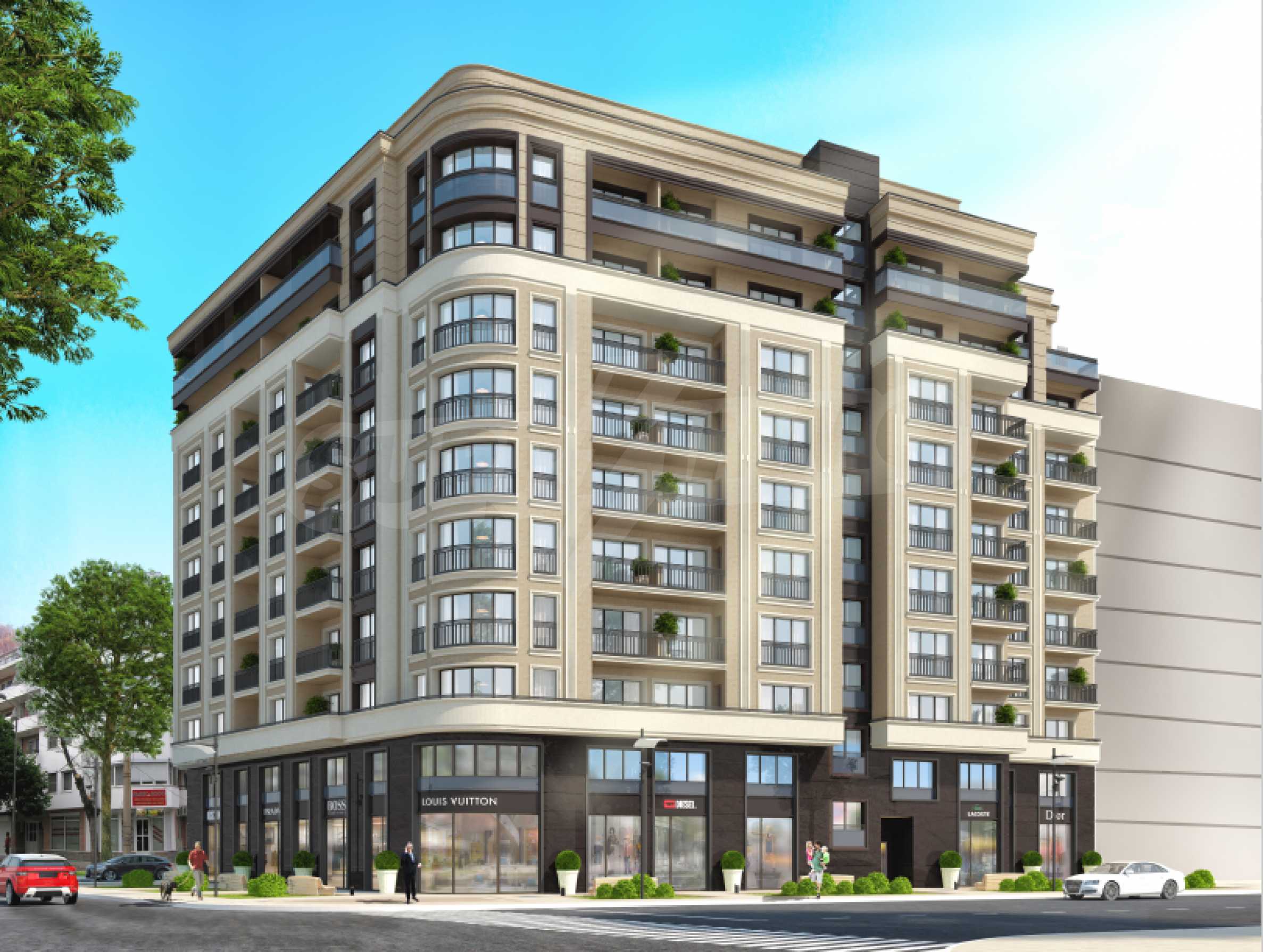 We present a three-bedroom apartment in a new luxury building. The apartment has an area of 303.92 m2. and consists of: three bedrooms, kitchenette, living room with dining area, two bathrooms with WC and dressing room. The apartment has 92 m2. terrace, which is not included in the square footage of the apartment, is not included in the price, is provided for free. The apartment is located on the ninth floor of a nine-storey luxury building, part of a new residential complex with retail space and a clinic in Mladost Hill in Plovdiv.