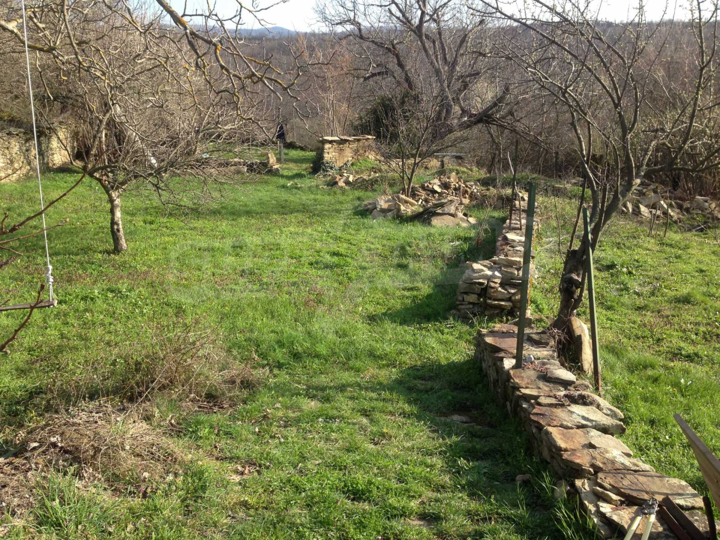 We are pleased to present for sale a lovely yard, clean and maintained perfectly. On all sides, it is surrounded by dry stone walls, one of them - the one facing the street, is supported and completely rearranged. There are many stones in the yard of an old barn with an area of 60 square meters, which is demolished. The foundations are being dug up and repurposed and are currently ready for reconstruction or construction. There is a large septic tank with dry stone masonry and water in the property. There is no electricity yet, the electrical pole is at the limit. The terrain is almost flat, with many trees - two large walnuts, two small cherries, apricot, hazelnuts, plums, three apples, figs, peach, quince, several pears.