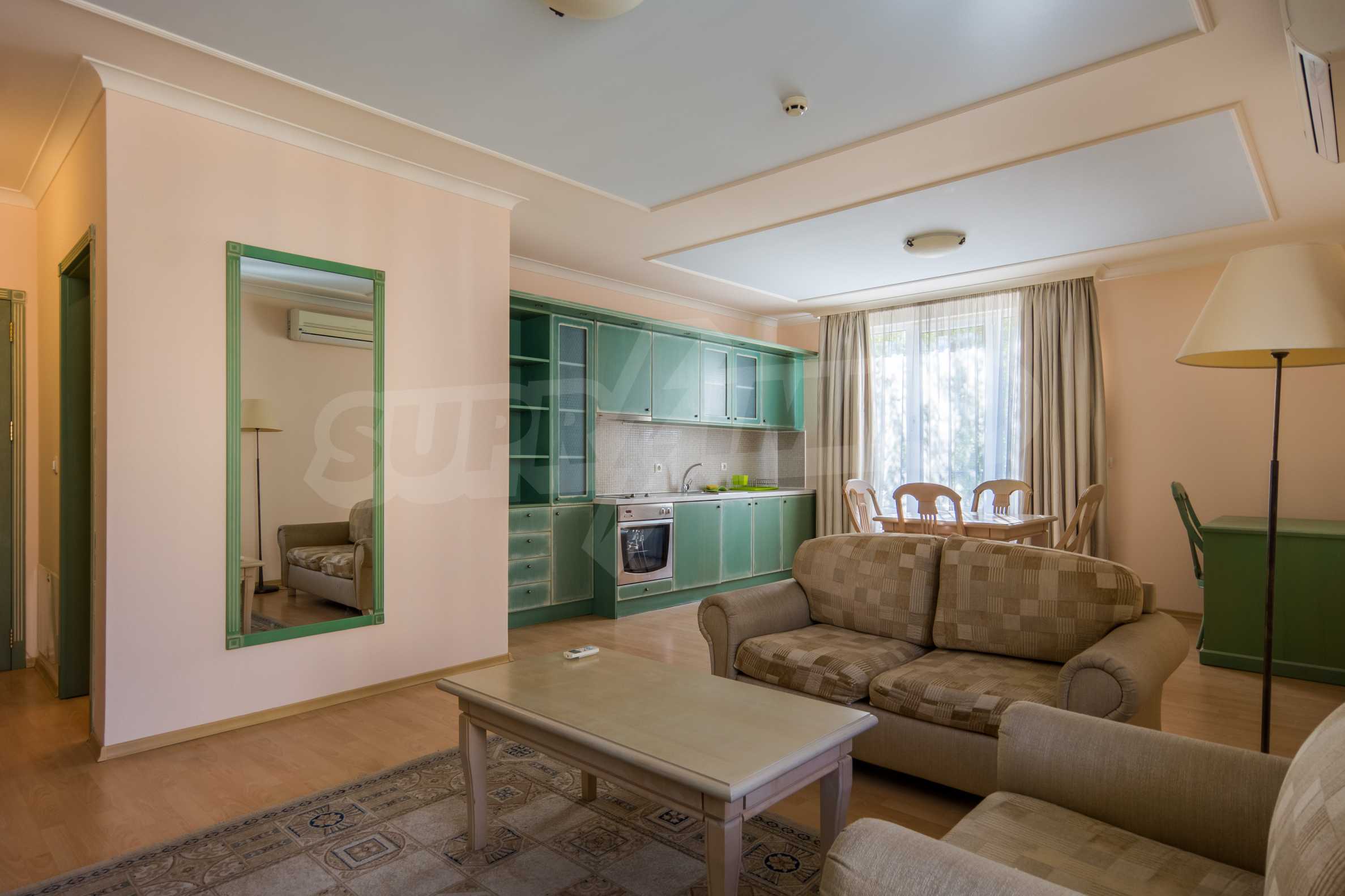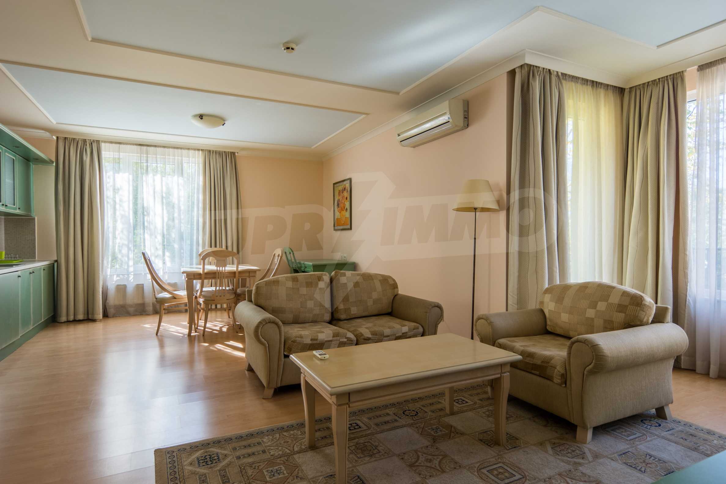 The complex is located in the pleasant atmosphere of a flower garden that brings you a sense of comfort and tranquility. You can take advantage of the facilities of the complex, which offers a spa, gym and restaurant. The apartment is located on the second floor of a four storey boutique building in 90 m2 and has the following layout: Entrance hall, spacious living room with kitchenette and dining area, terrace, bedroom, bathroom with toilet, toilet.